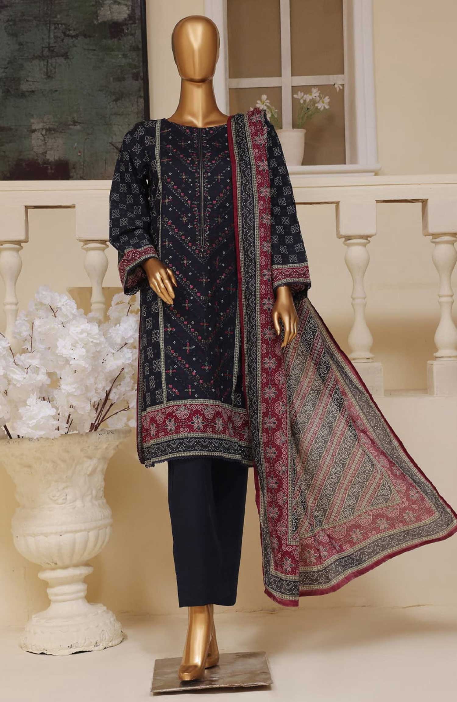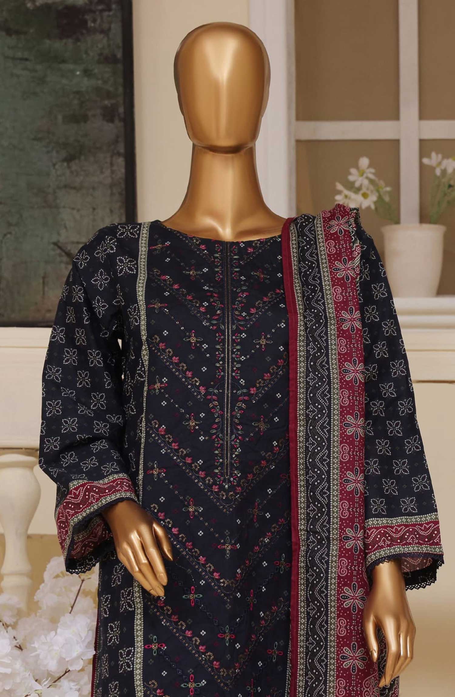 Home Bin Saeed Embroidered Lawn Stitched 3 Piece - SM 763 - BS25EL - Dark Blue - Summer Collection