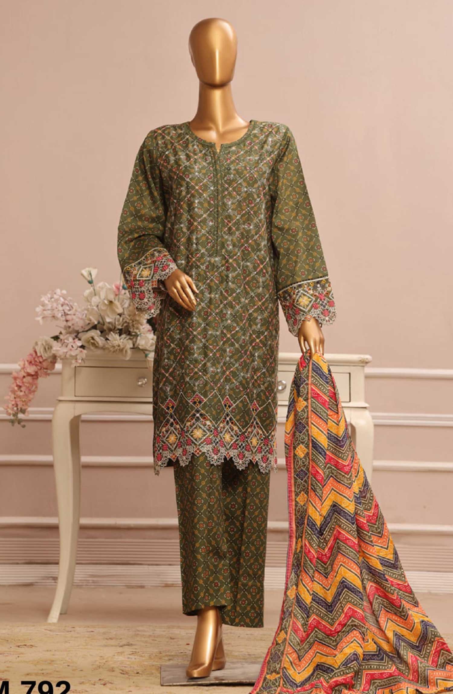 Home Bin Saeed Embroidered Lawn Stitched 3 Piece - SM 792 - BS25SM - Black - Summer Collection