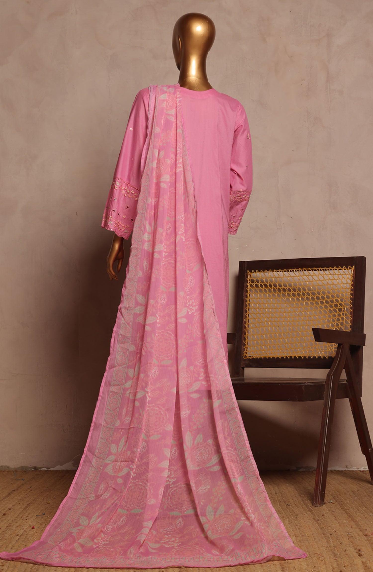 Bin Saeed Embroidered Lawn Stitched 3 Piece Suit - D-01 - BS25LPLV4 - Pink - Summer Collection