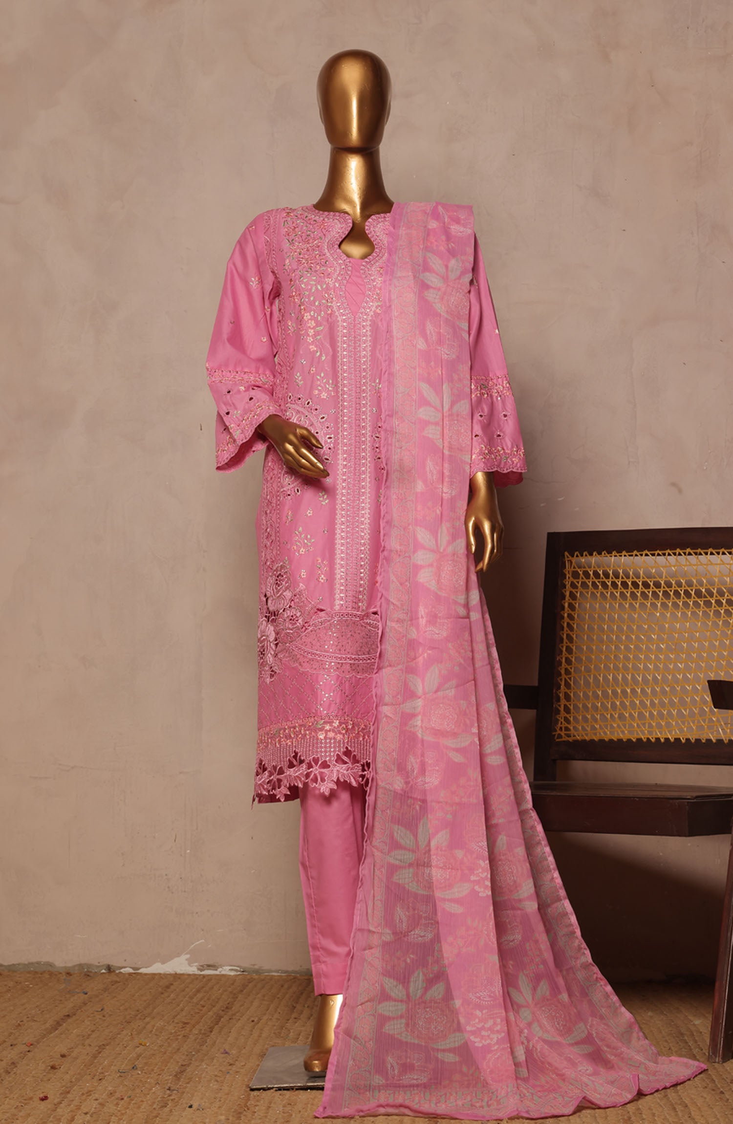 Home Bin Saeed Embroidered Lawn Stitched 3 Piece Suit - D-01 - BS25LPLV4 - Pink - Summer Collection