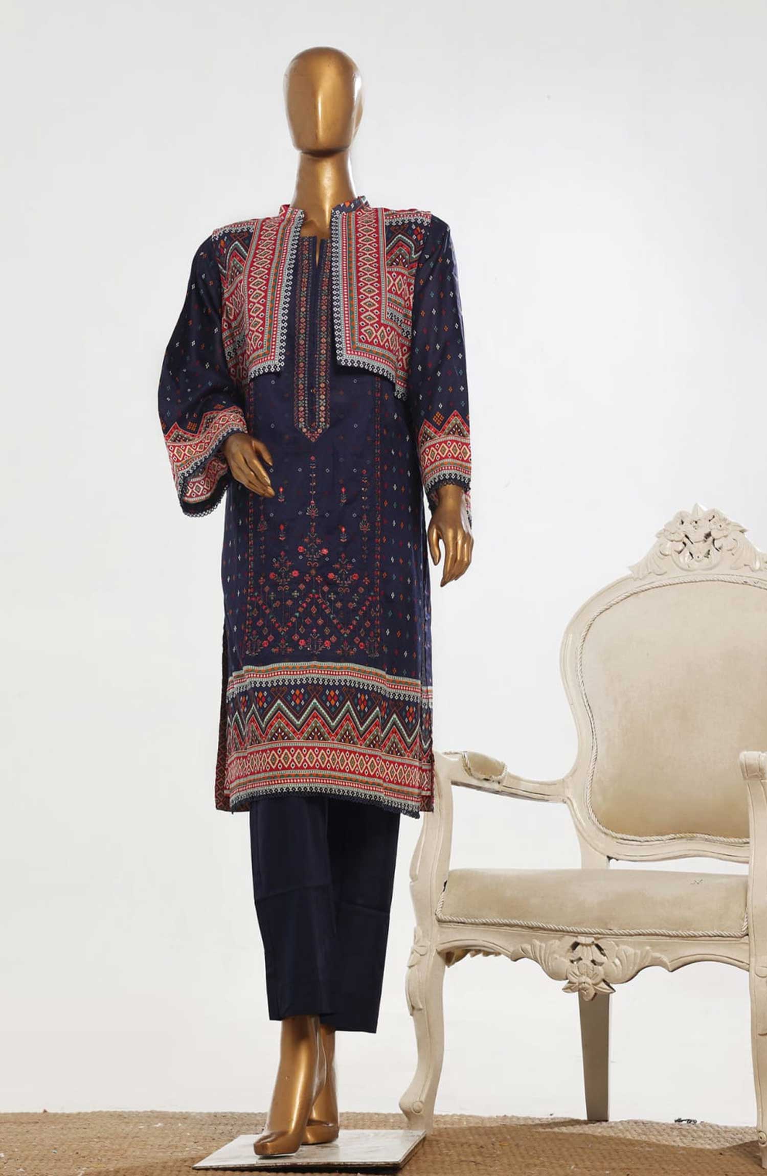Home Bin Saeed Embroidered Lawn Stitched 3 Piece Suit - D-03 - BS25ECL - Dark Blue - Summer Collection