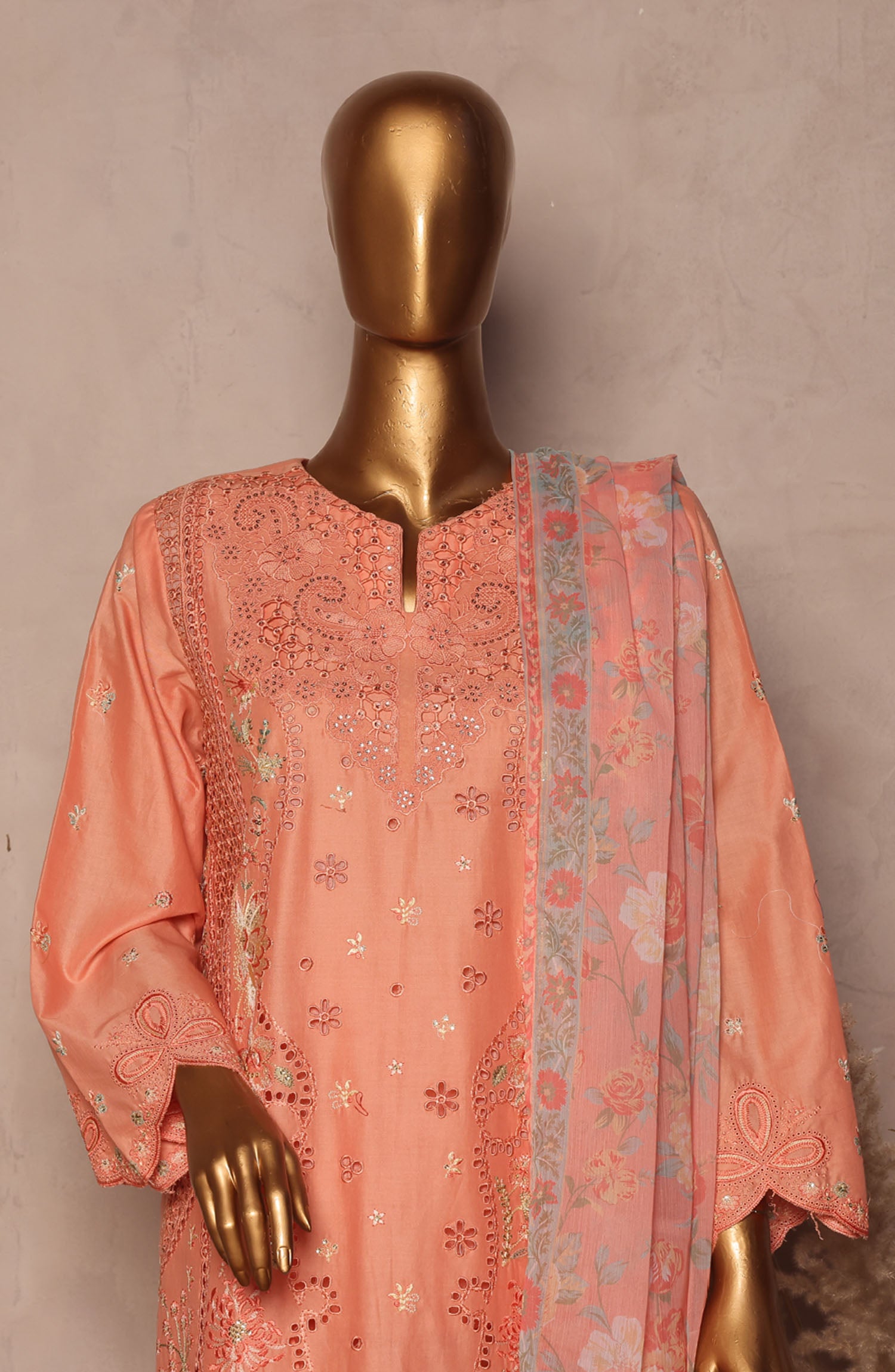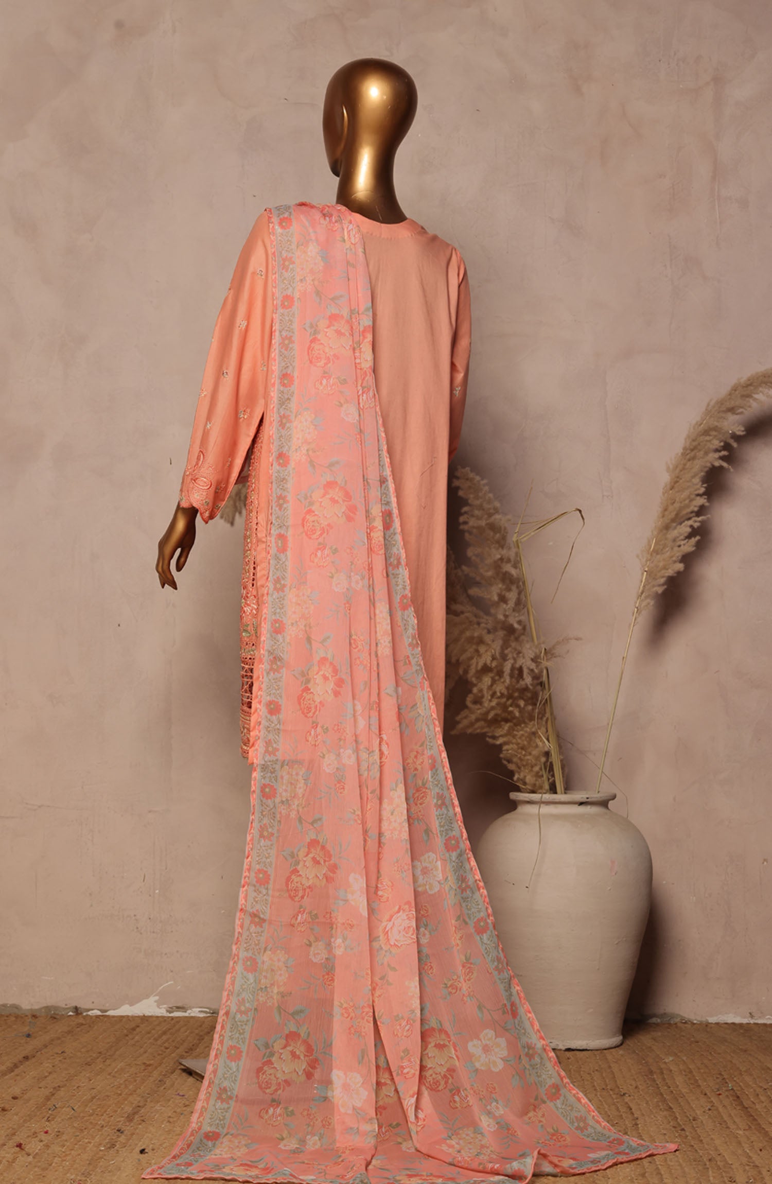 Home Bin Saeed Embroidered Lawn Stitched 3 Piece Suit - D-05 - BS25LPLV4 - Peach - Summer Collection
