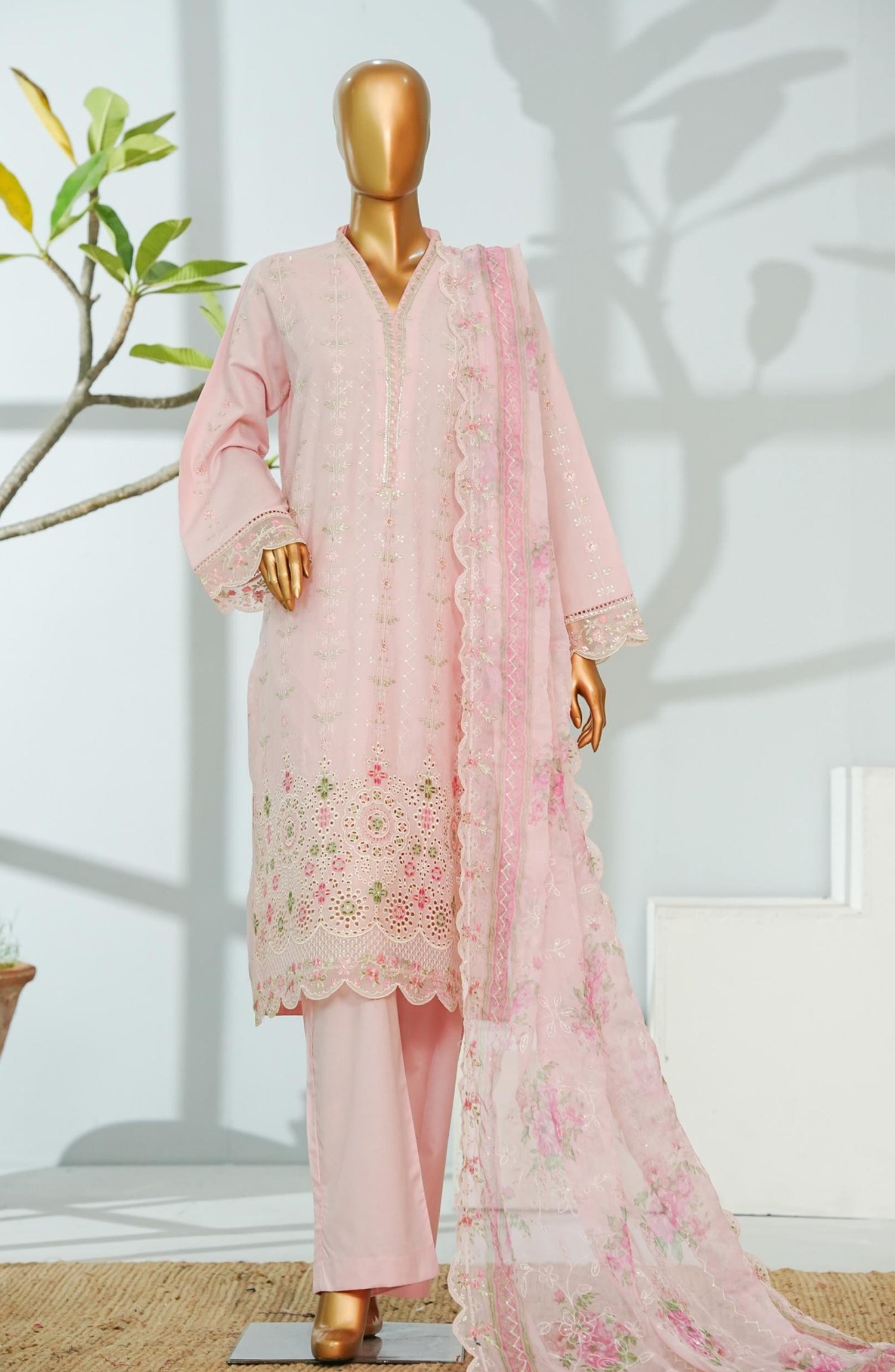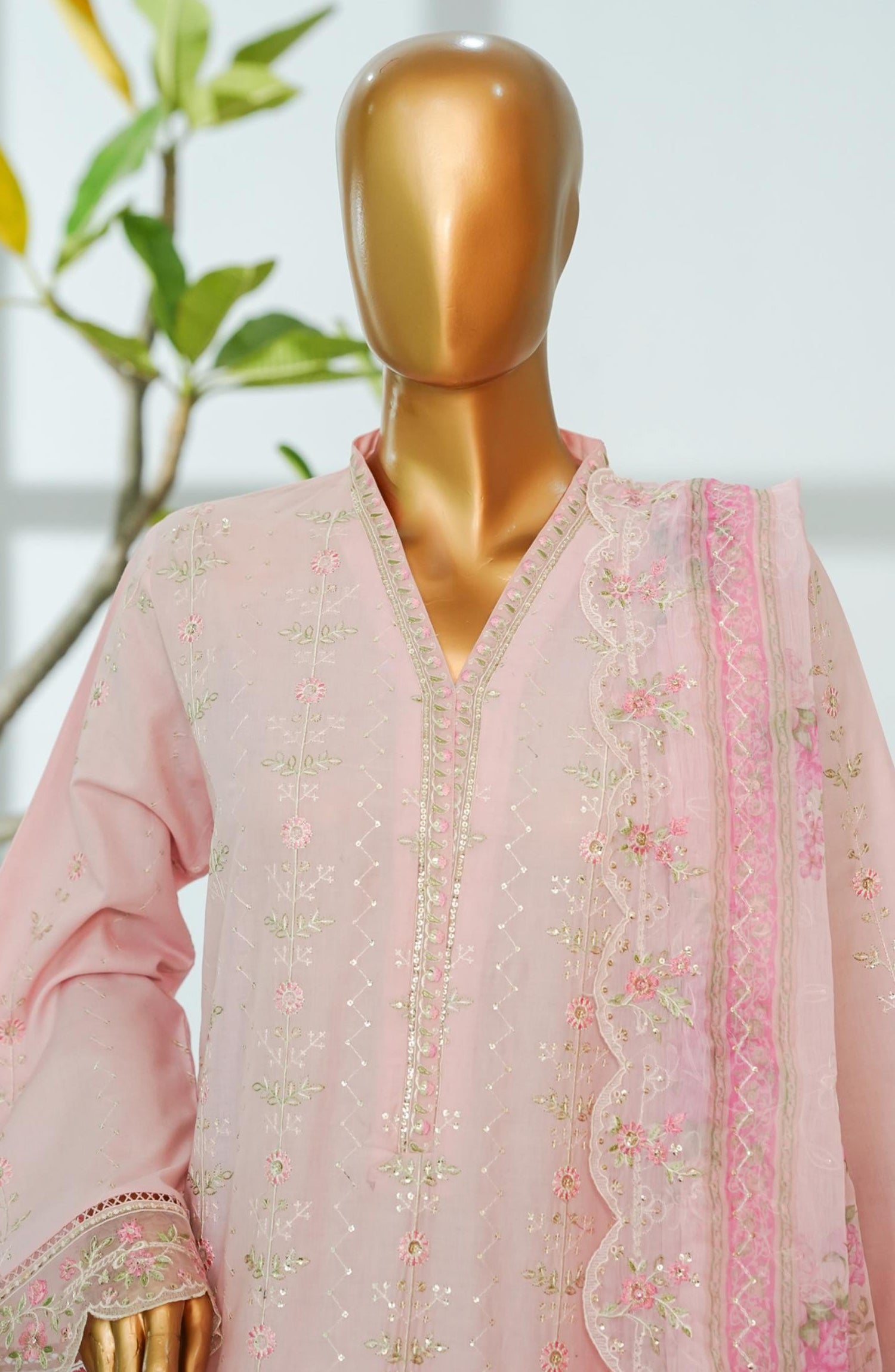 Luxury Embroidered Lawn Stitched 3 Piece Suit with Chiffon Dupatta