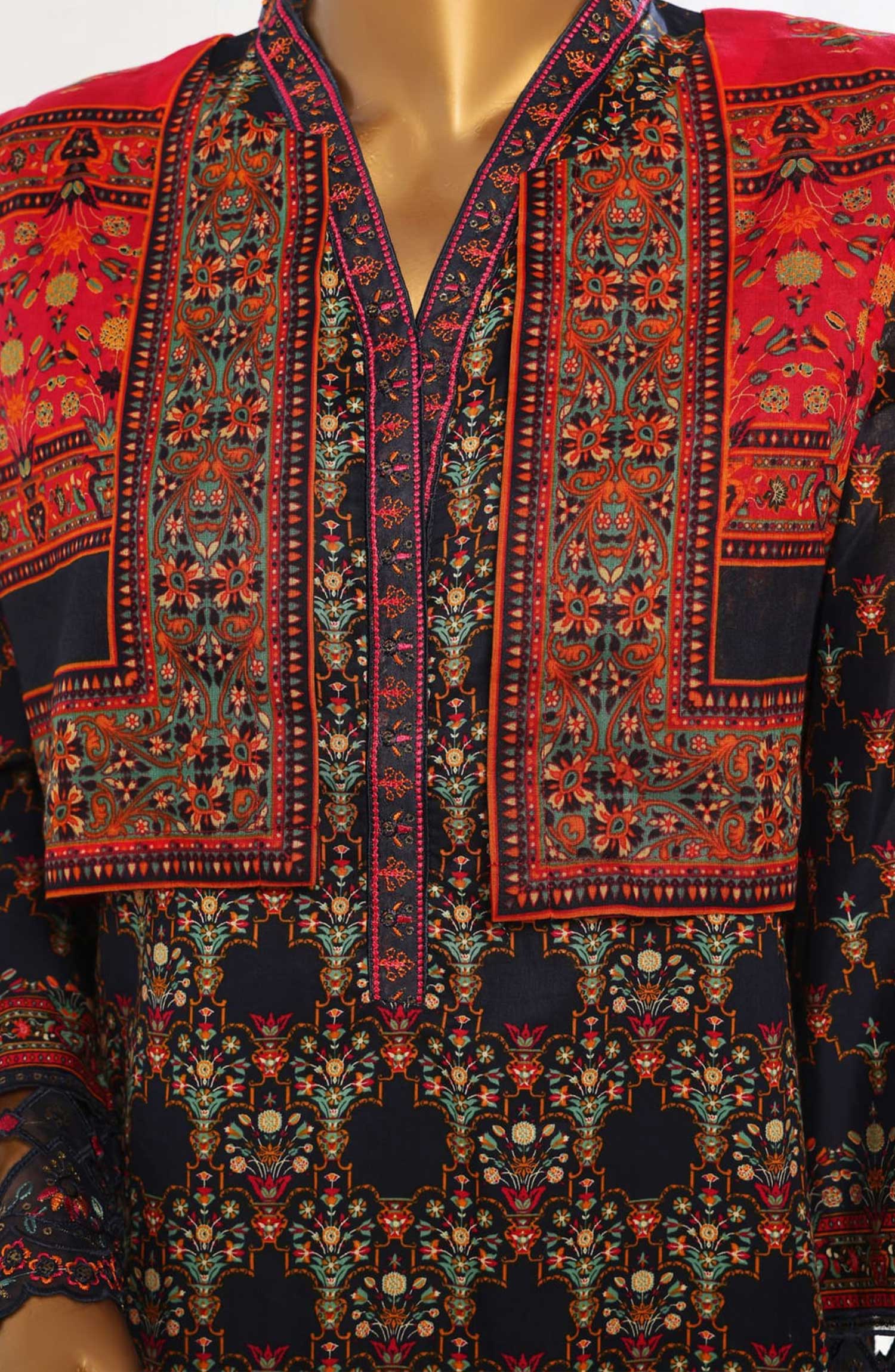 Modest Embroidered Khaddar Stitched 3 Piece Suit - 9990-Blk - MOD25WNT - Black - Winter Collection