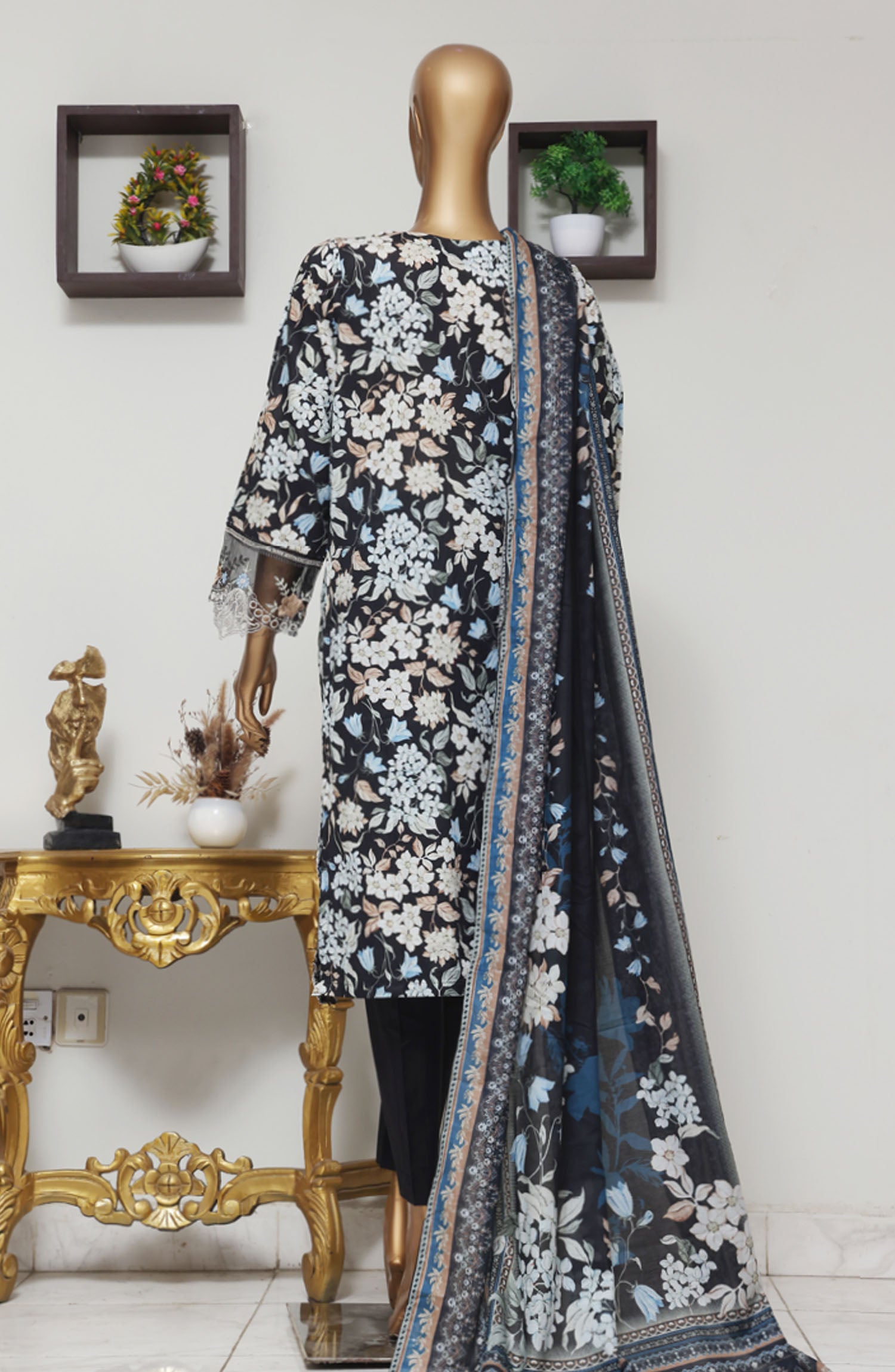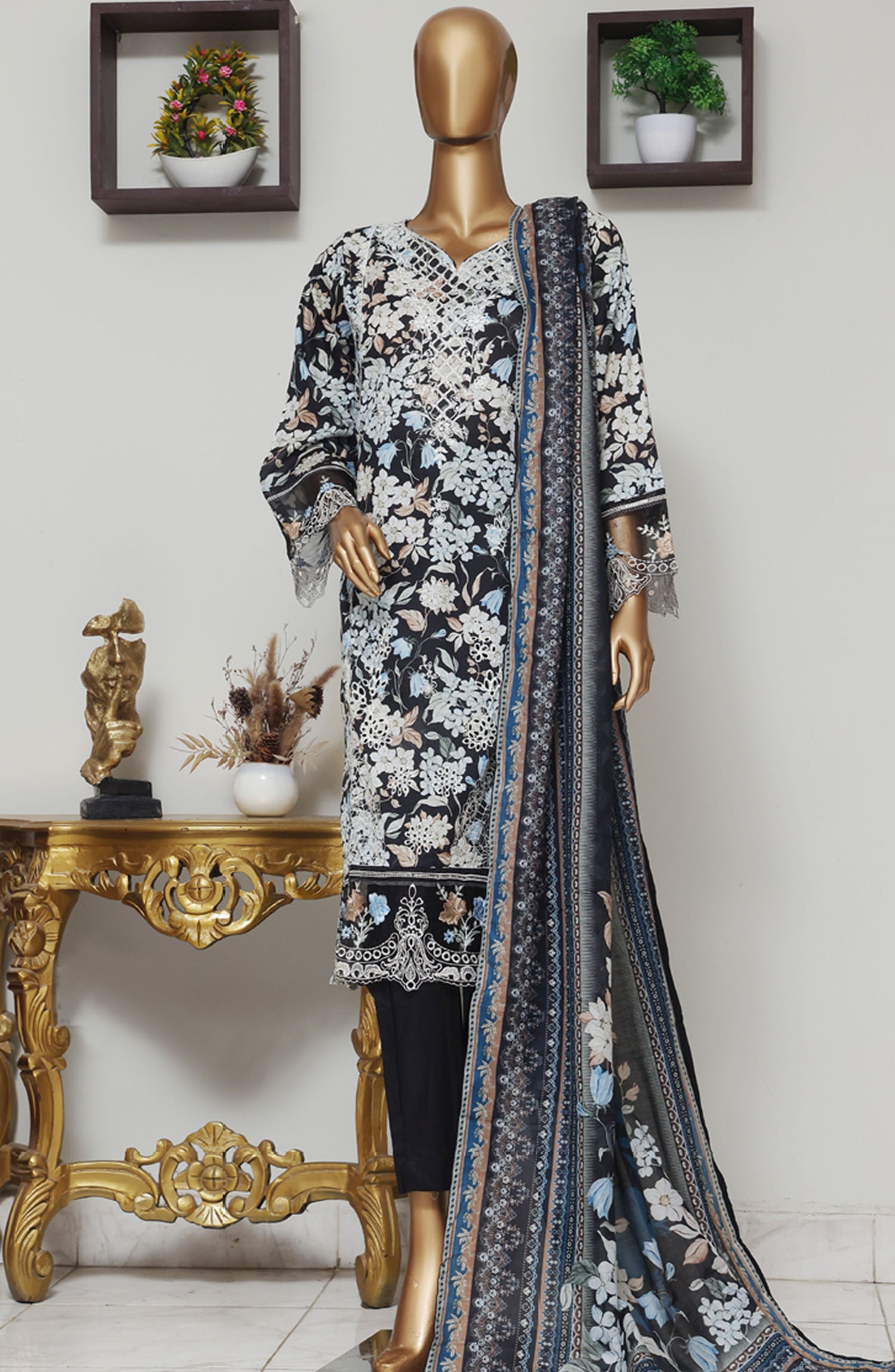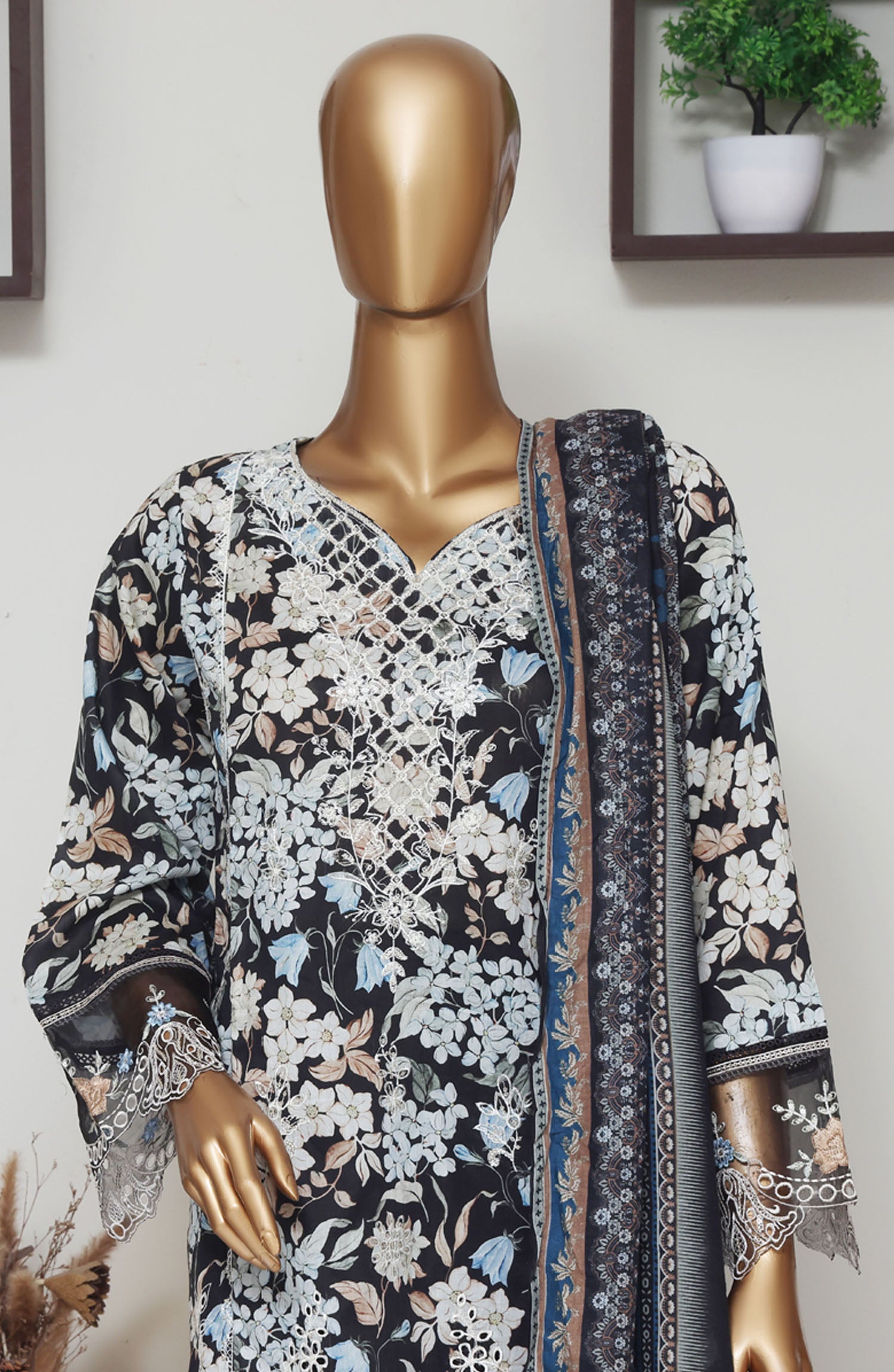 Home Bin Saeed Embroidered Lawn Stitched 3 Piece Suit - D-06 - BS25EELV9 - Black - Summer Collection