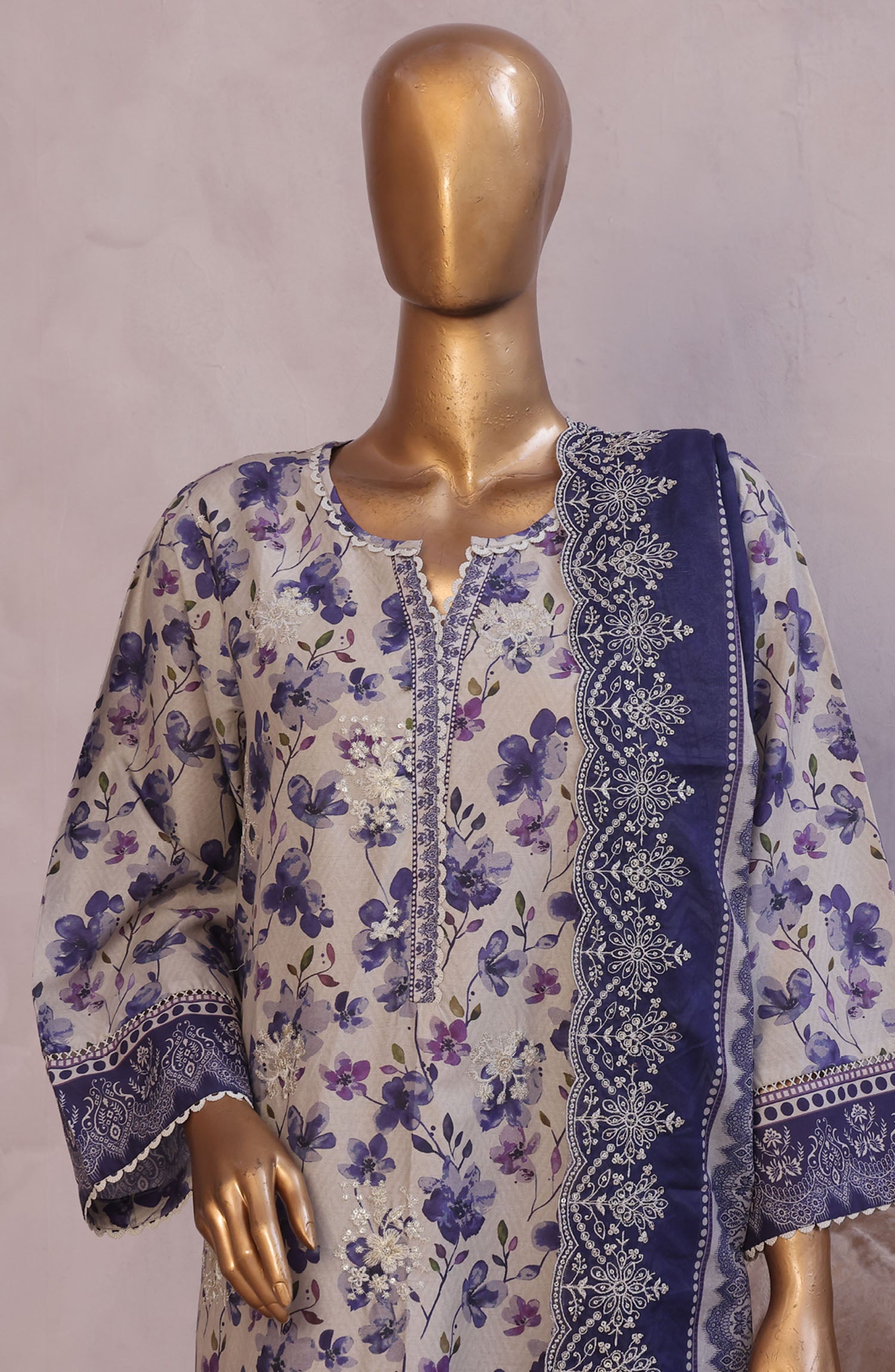 Home Bin Saeed Embroidered Lawn Stitched 3 Piece Suit - D-06 - BS25LELC - Grey - Summer Collection