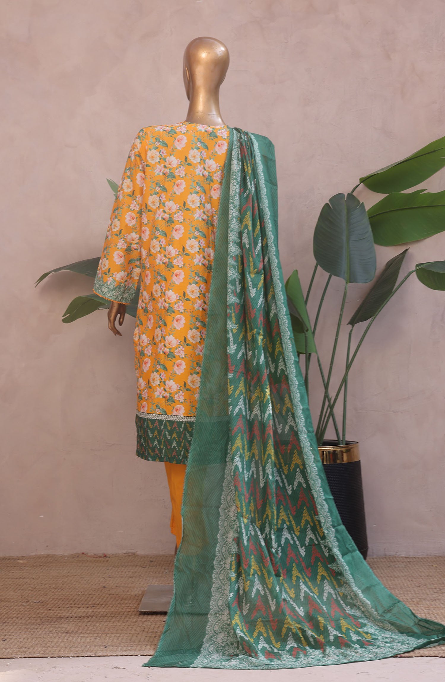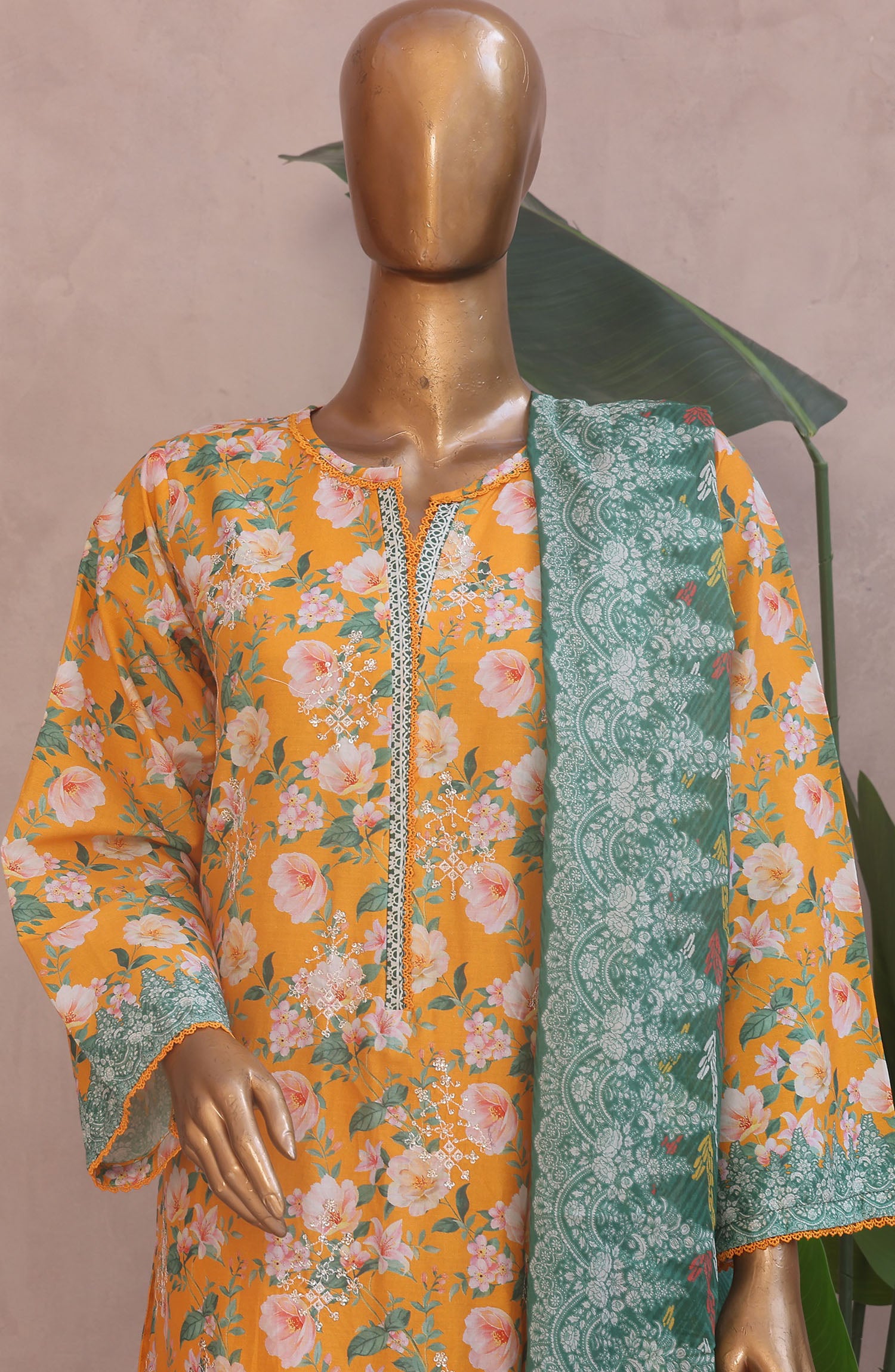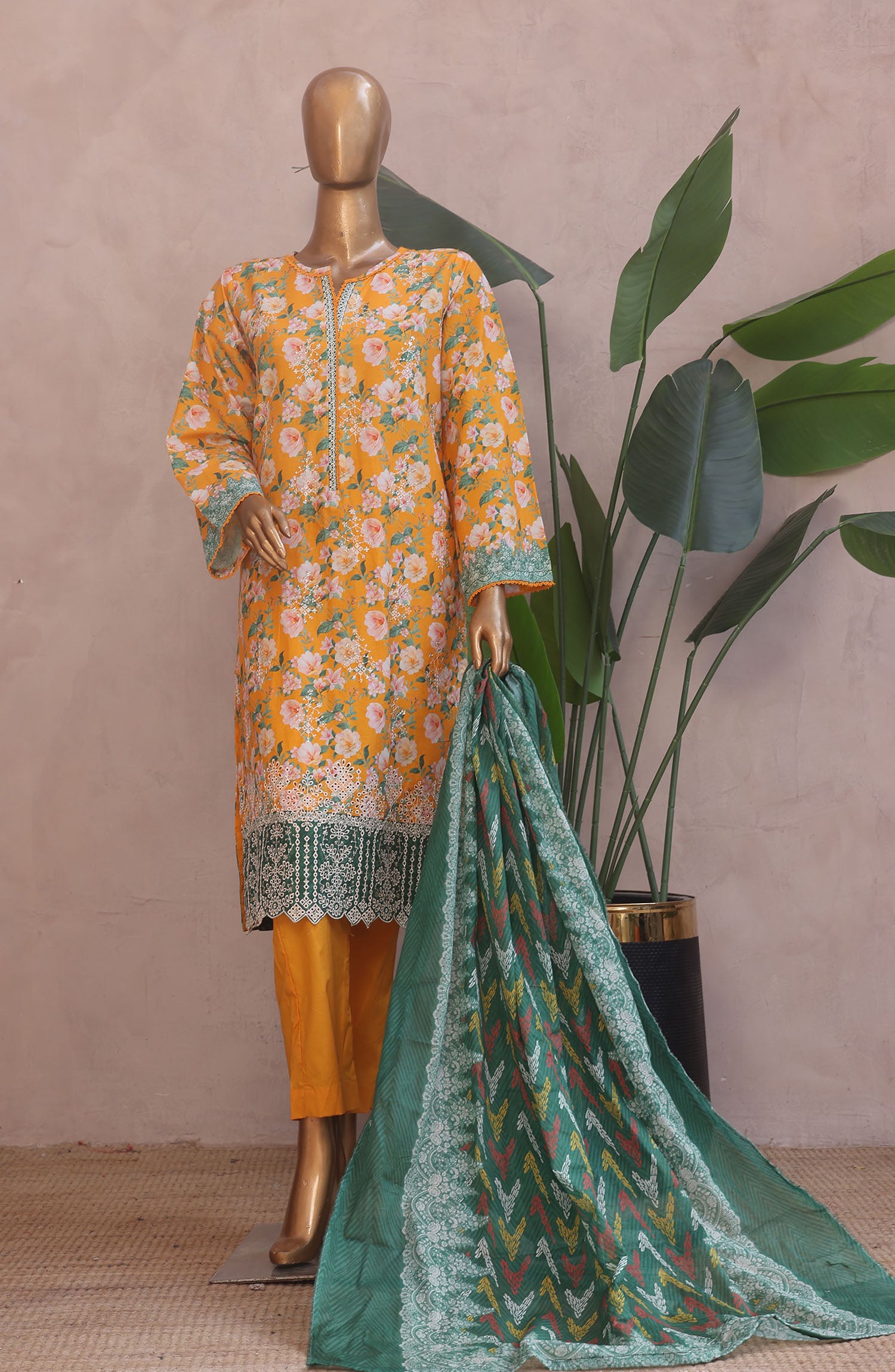 Home Bin Saeed Embroidered Lawn Stitched 3 Piece Suit - D-06 - BS25REL - Mustard - Summer Collection