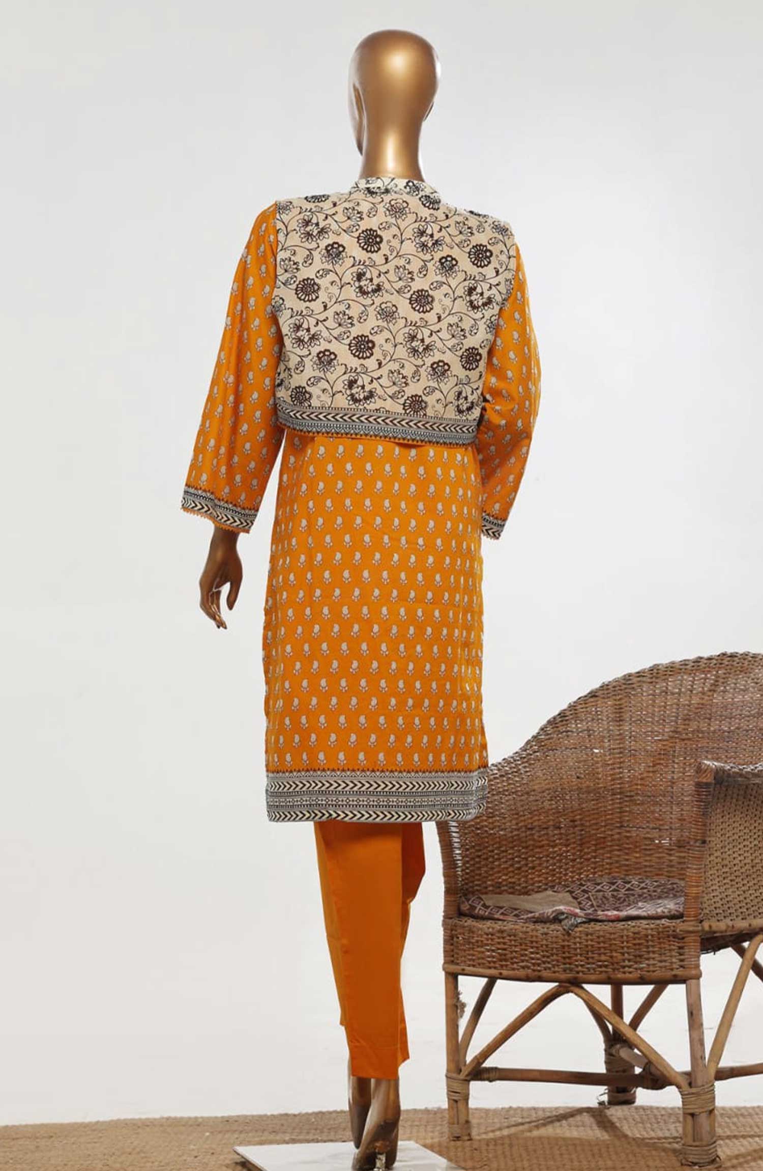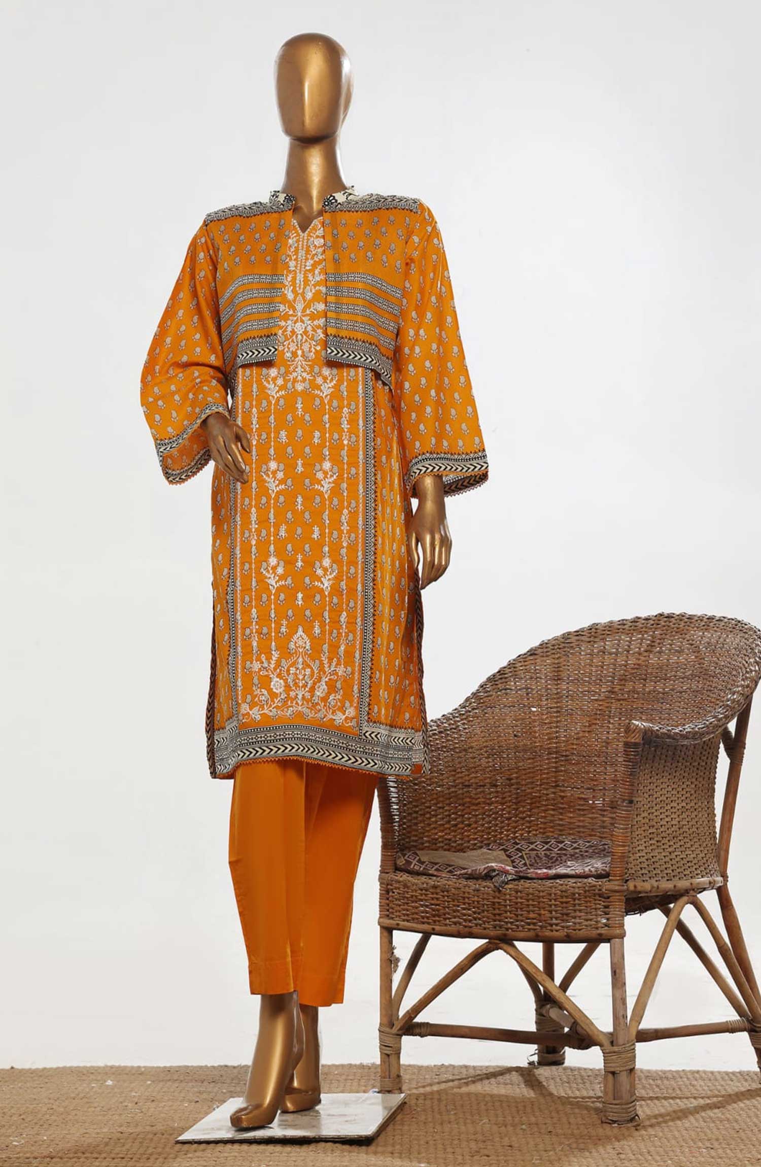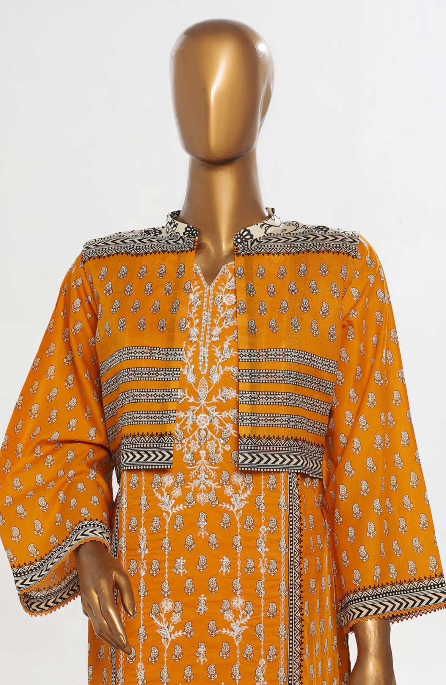 Home Bin Saeed Embroidered Lawn Stitched 3 Piece Suit - D-07 - BS25ECL - Orange - Summer Collection