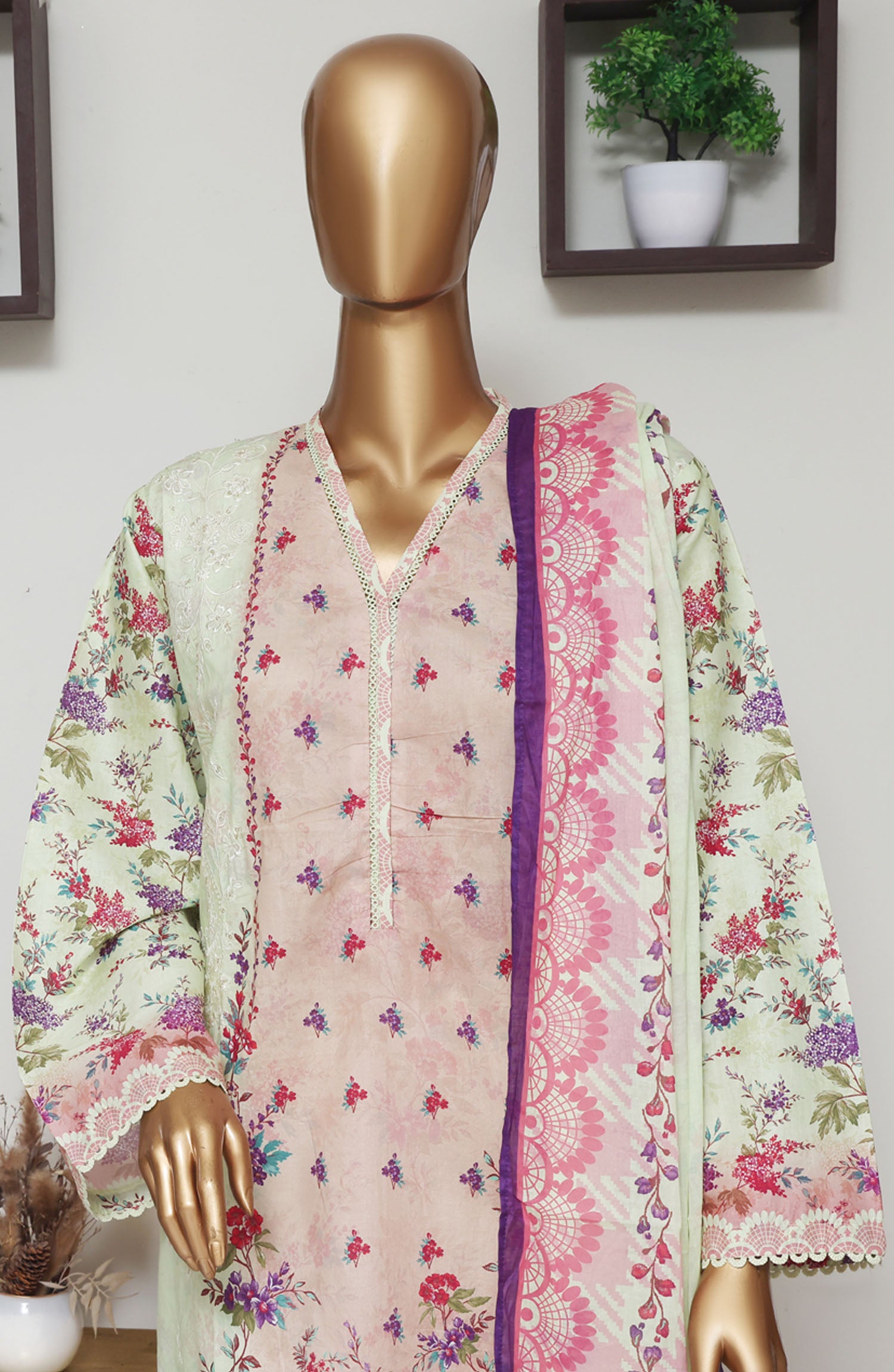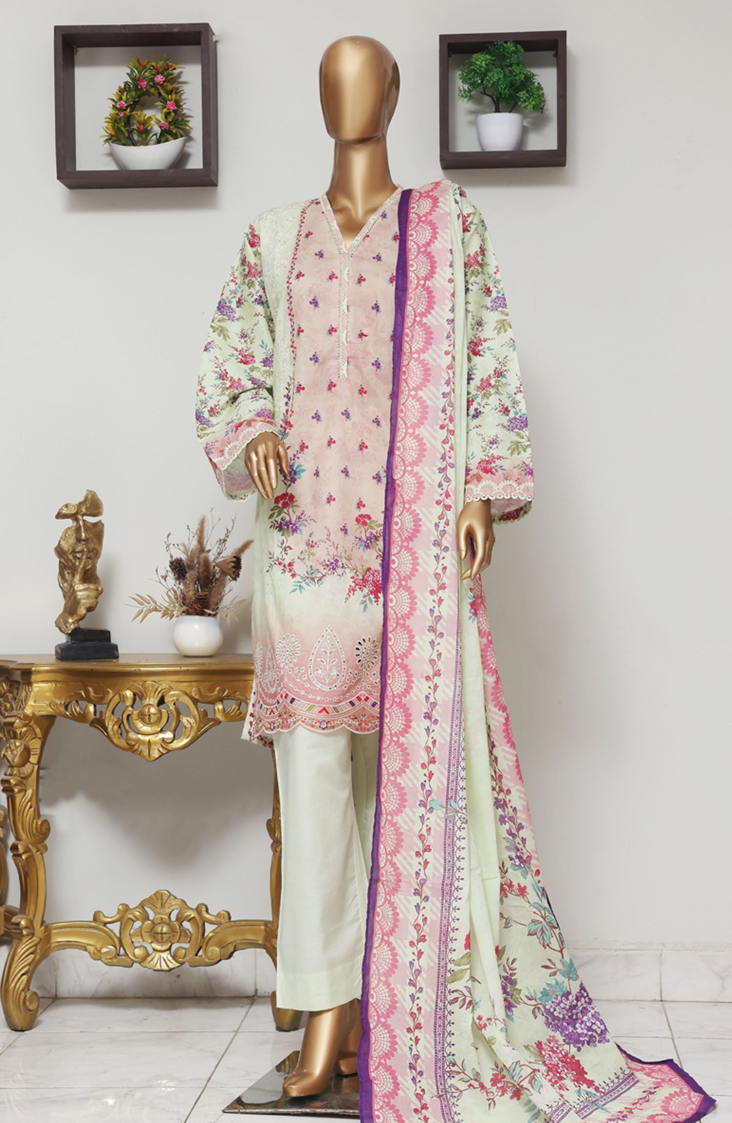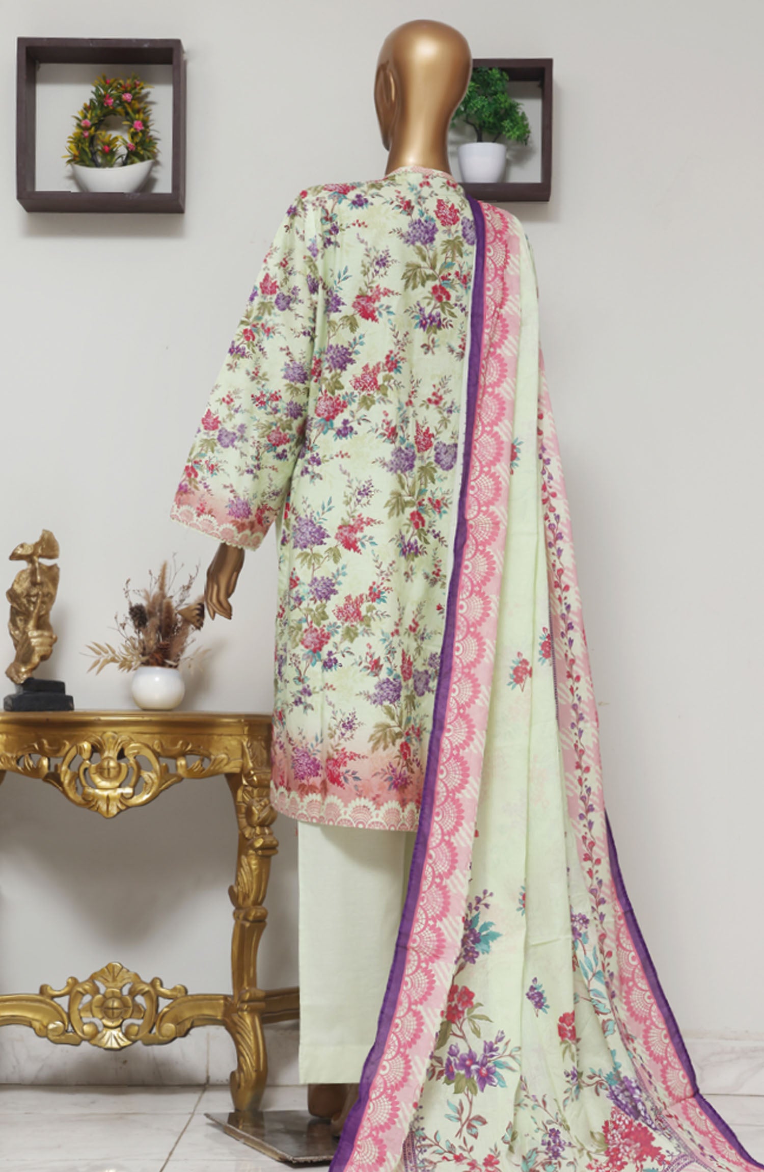 Home Bin Saeed Embroidered Lawn Stitched 3 Piece Suit - D-07 - BS25EELV9 - Green - Summer Collection