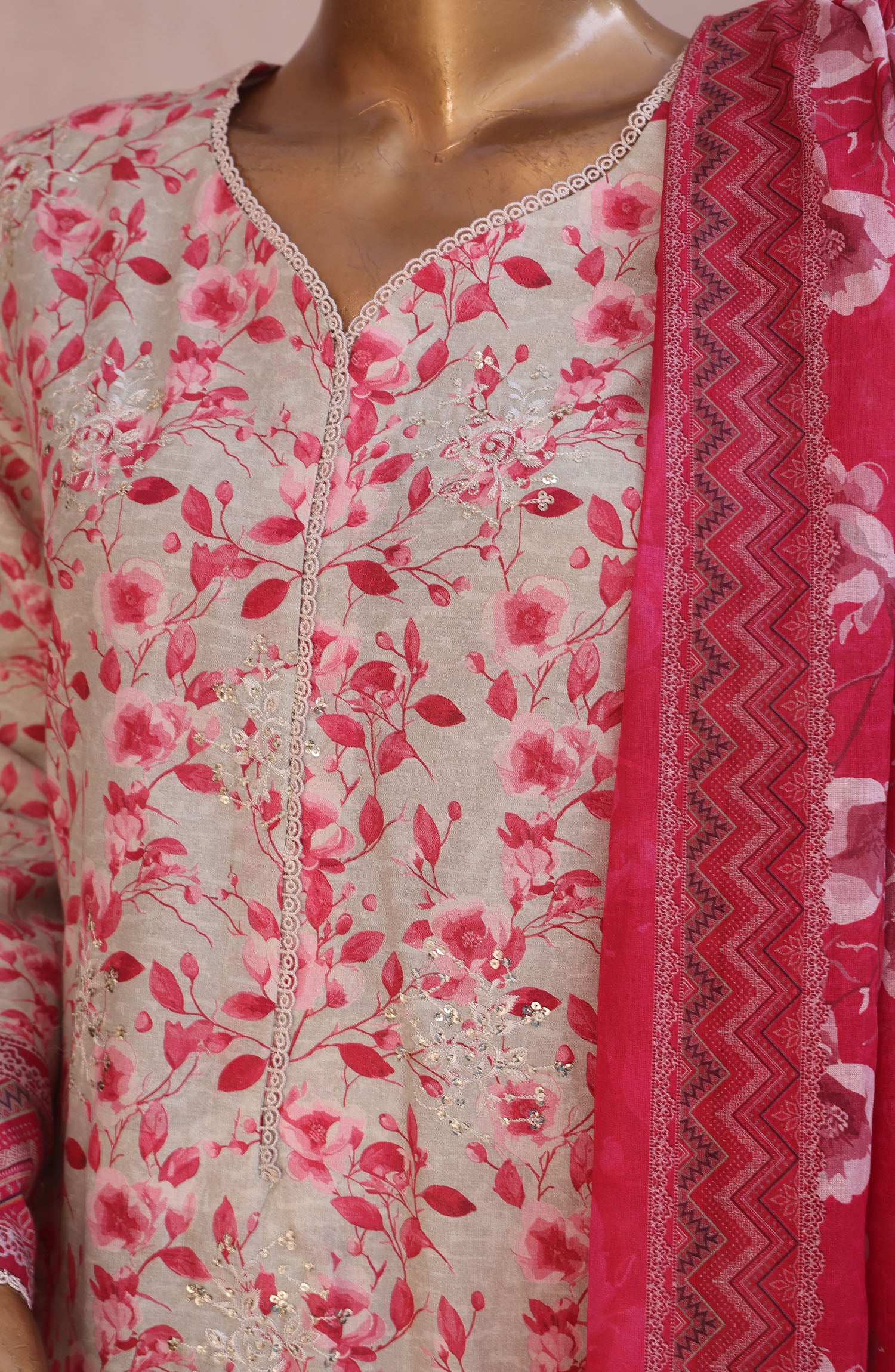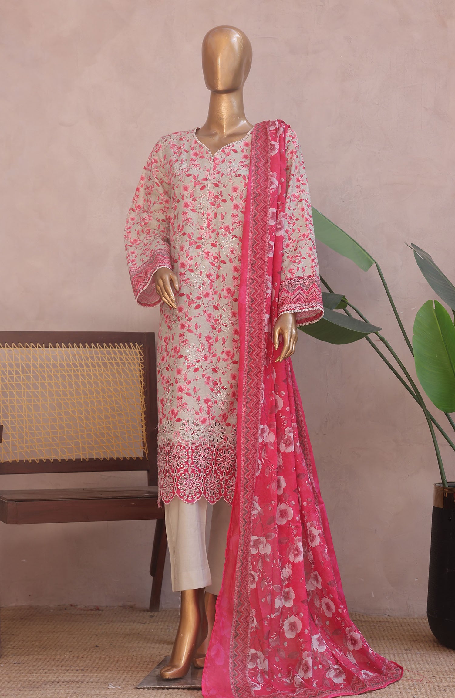 Home Bin Saeed Embroidered Lawn Stitched 3 Piece Suit - D-07 - BS25REL - Pink - Summer Collection