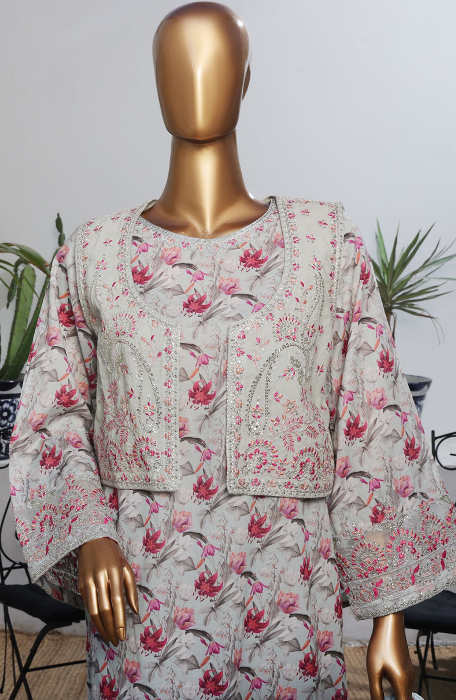 Home Bin Saeed Embroidered Lawn Stitched 3 Piece Suit - D-09 - BS25BEEC - Grey - Eid Collection