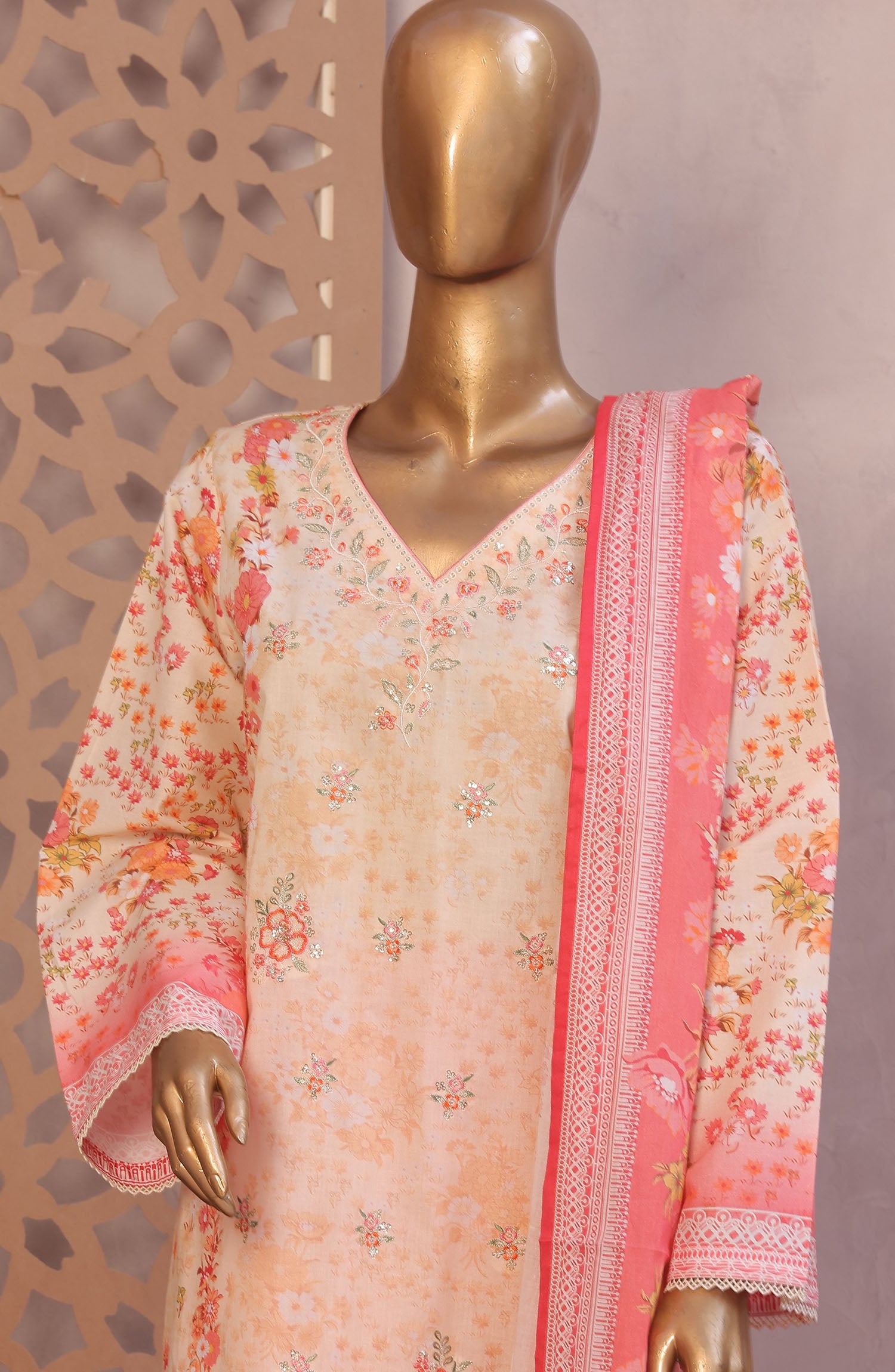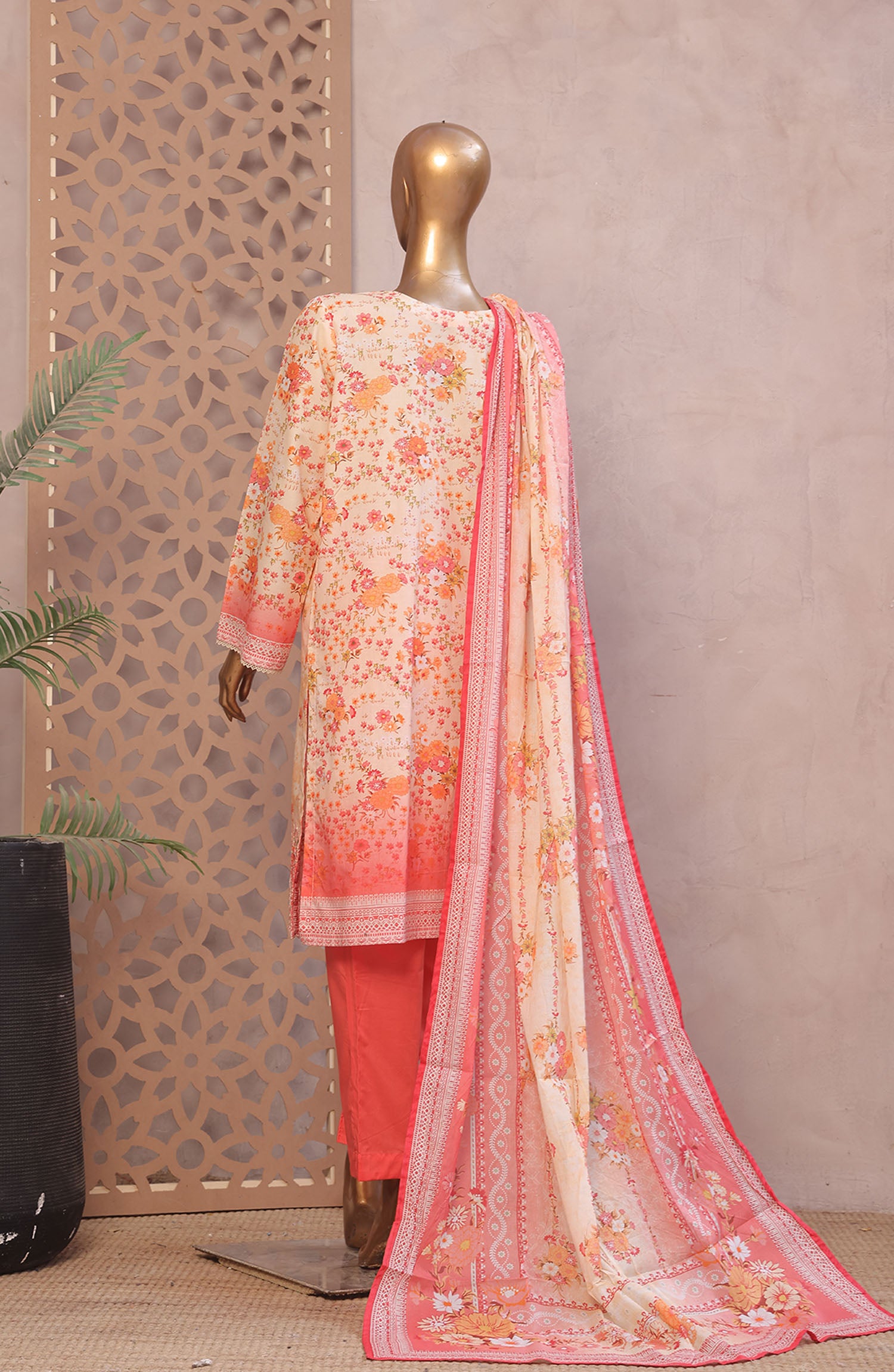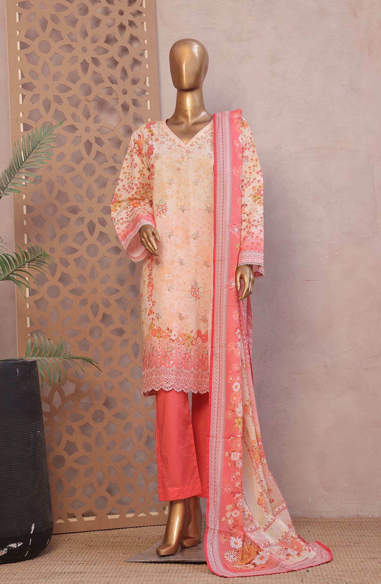 Home Bin Saeed Embroidered Lawn Stitched 3 Piece Suit - D-09 - BS25REL - Orange - Summer Collection