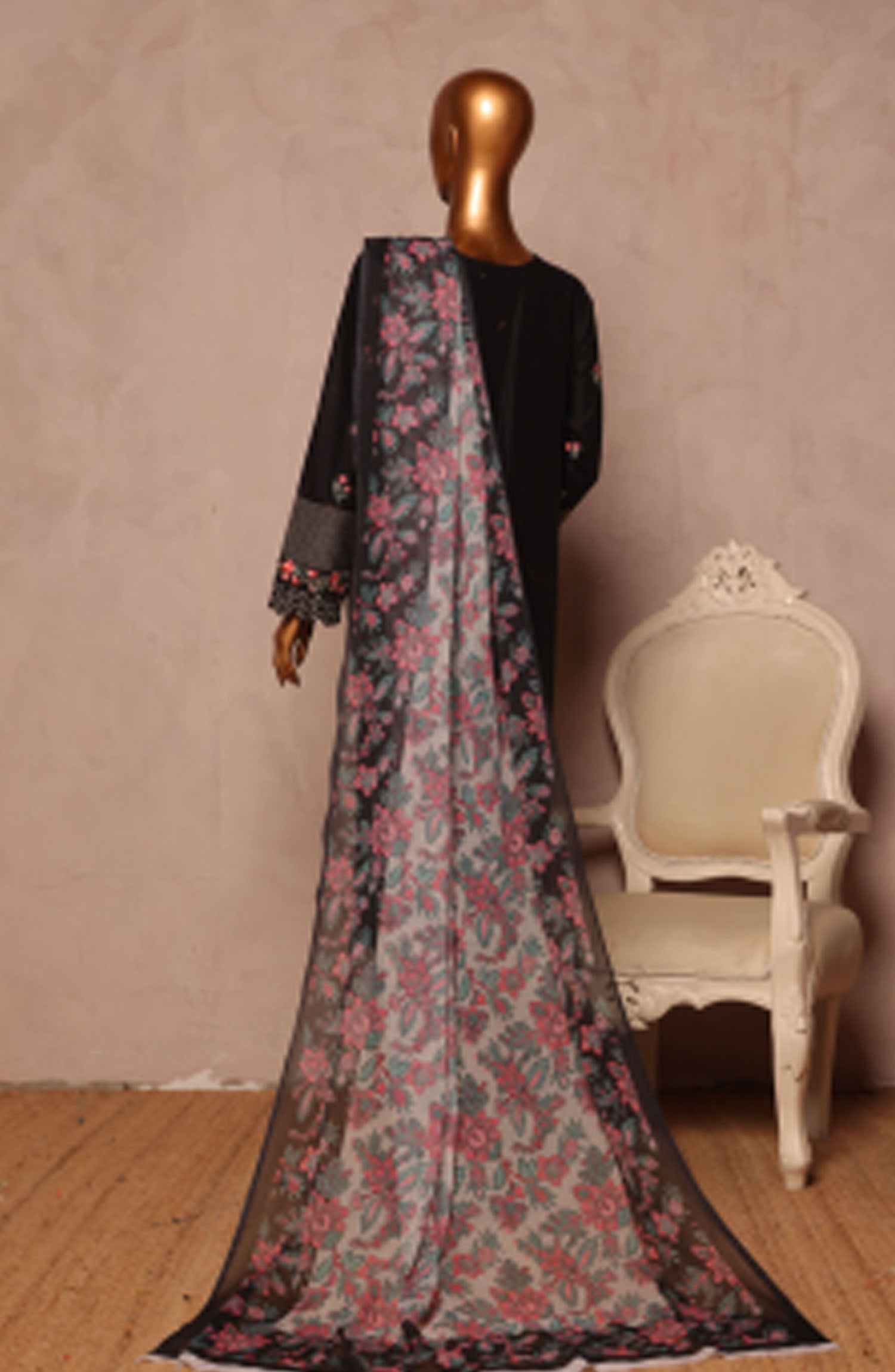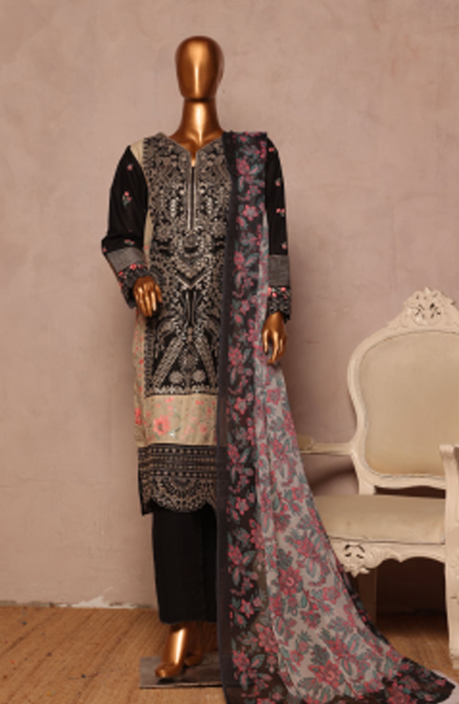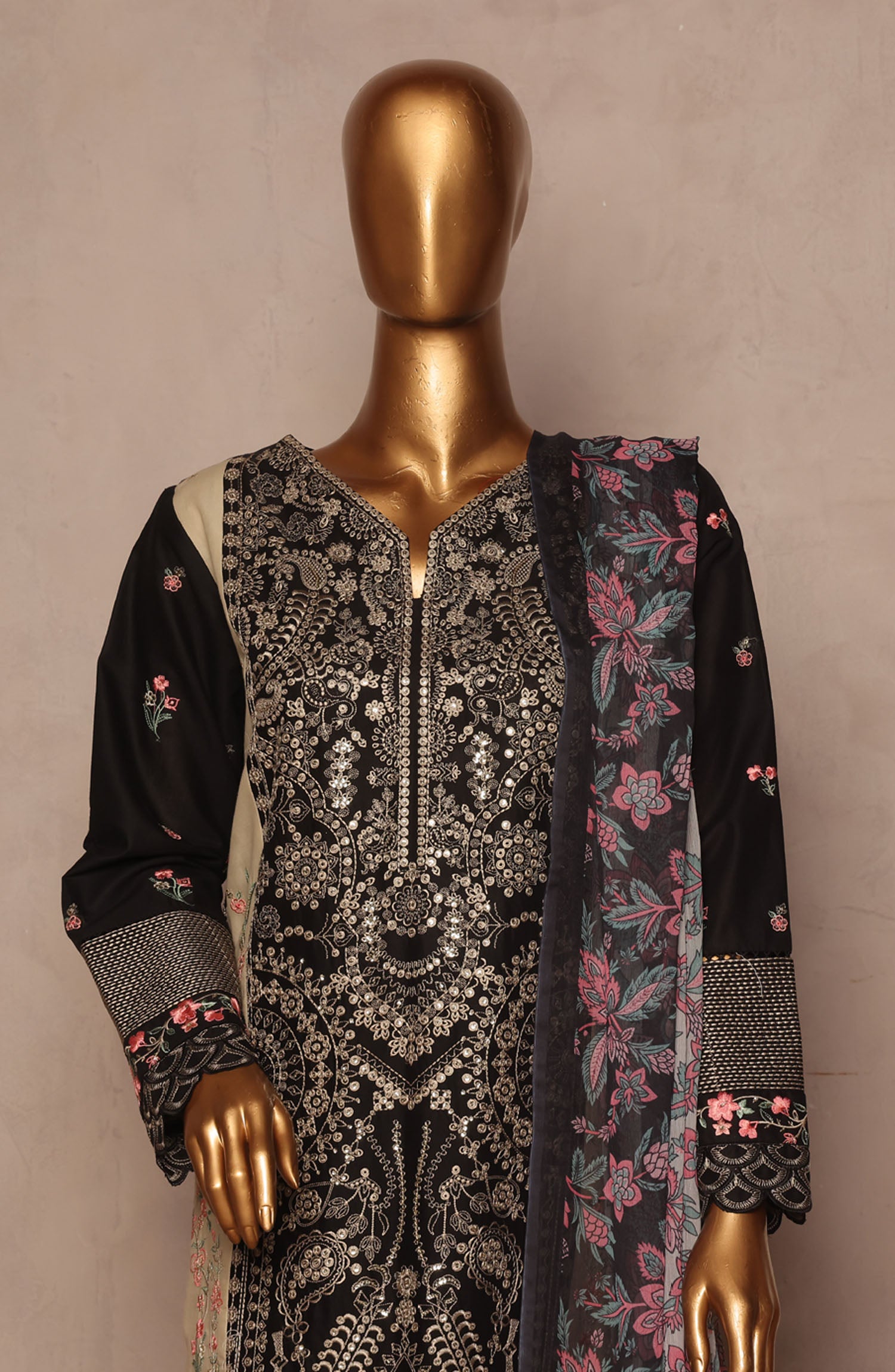 Home Bin Saeed Embroidered Lawn Stitched 3 Piece Suit - D-15 - BS25LPLV4 - Black - Summer Collection