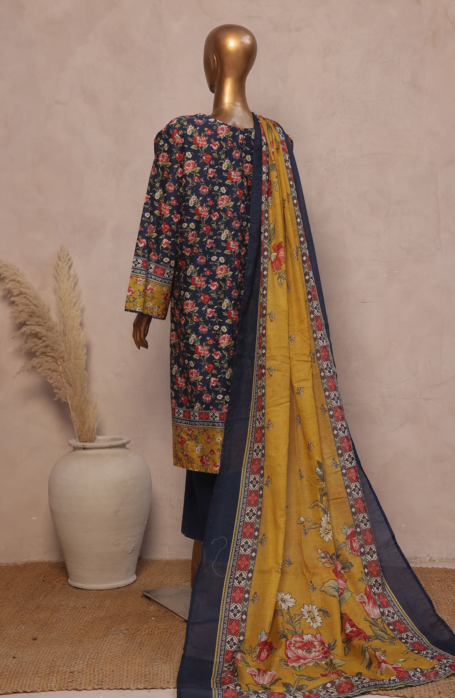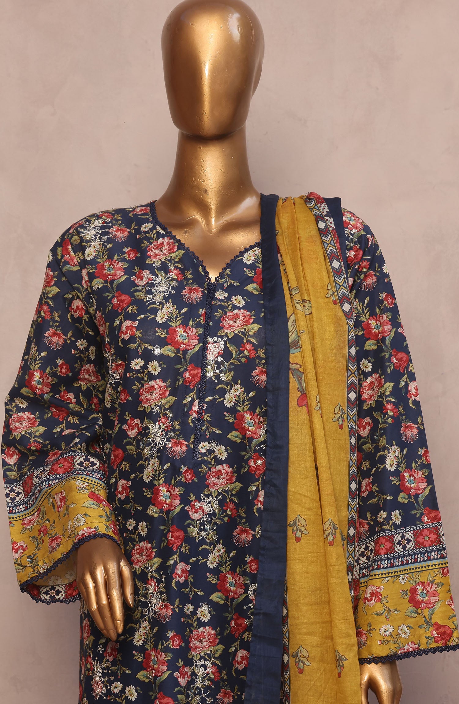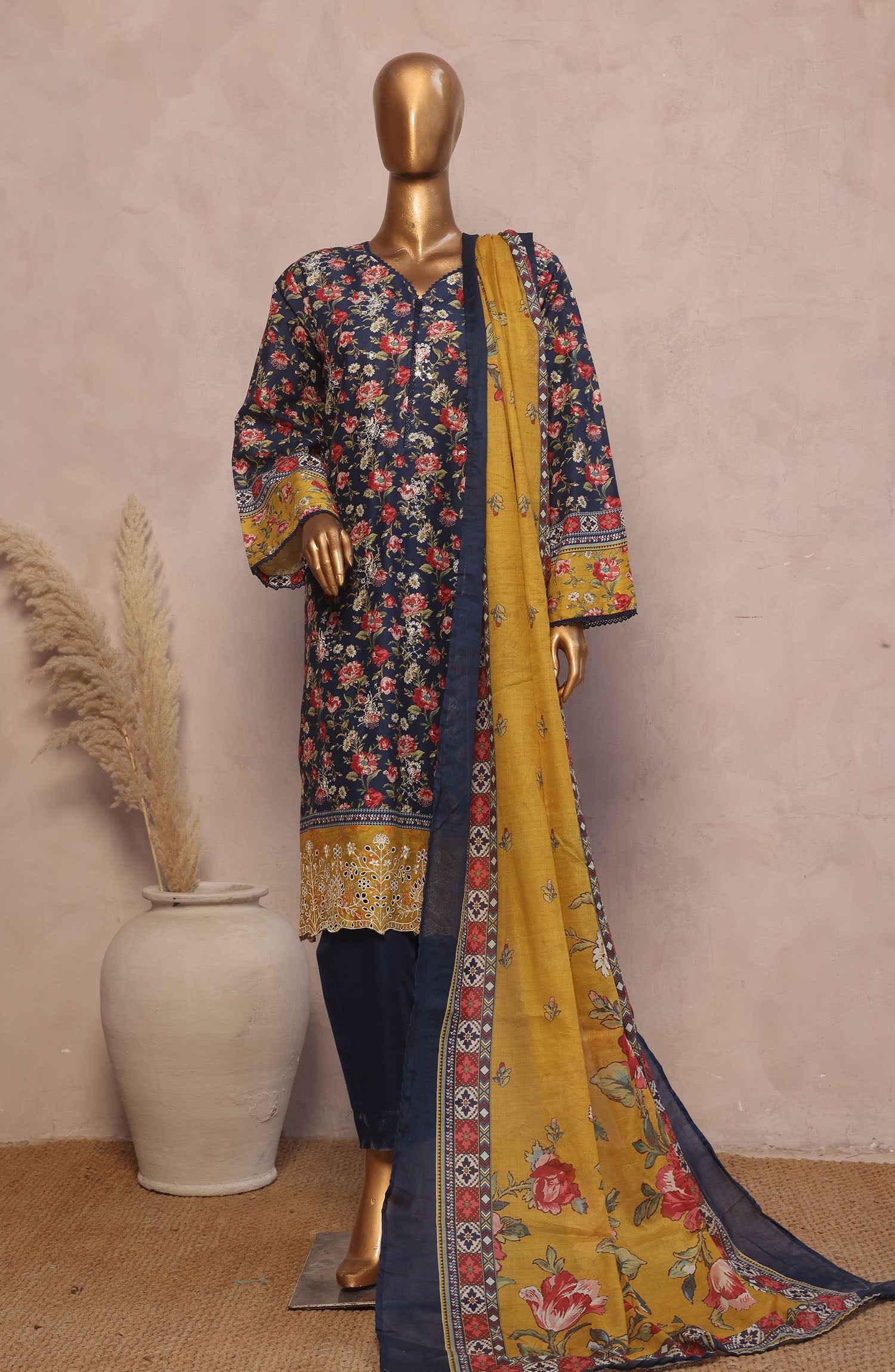 Home Bin Saeed Embroidered Lawn Stitched 3 Piece Suit - D-15 - BS25REL - Blue - Summer Collection