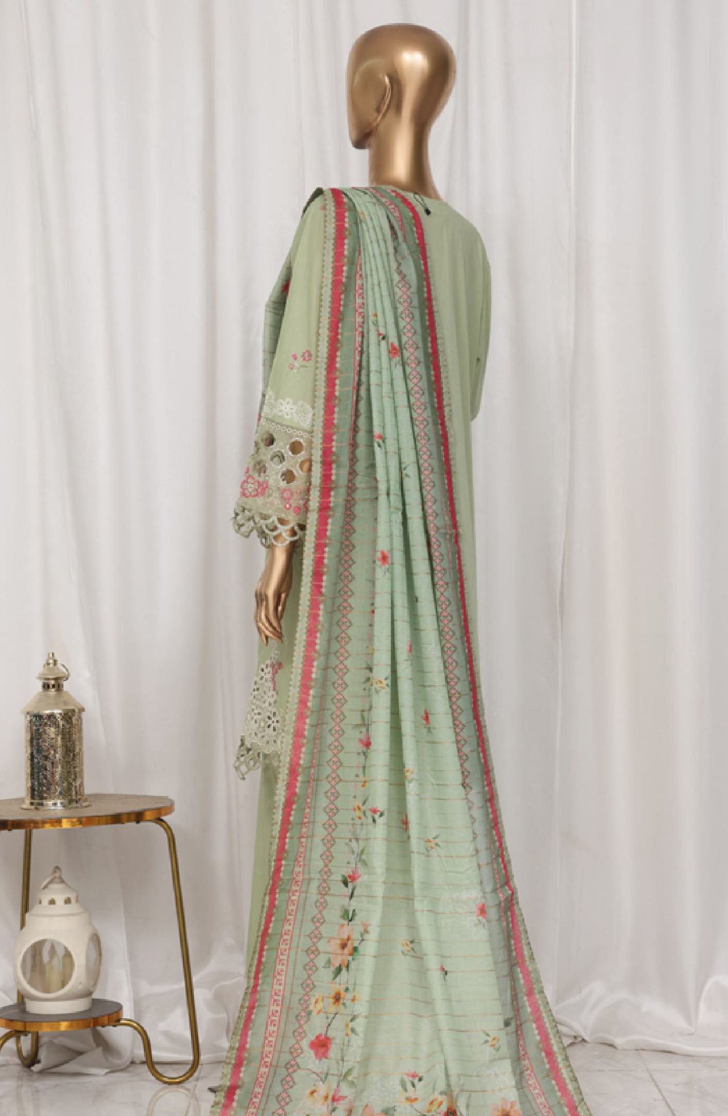 Home Bin Saeed Embroidered Lawn Stitched 3 Piece Suit - LF-133A - BS25LPCV3 - Green - Summer Collection