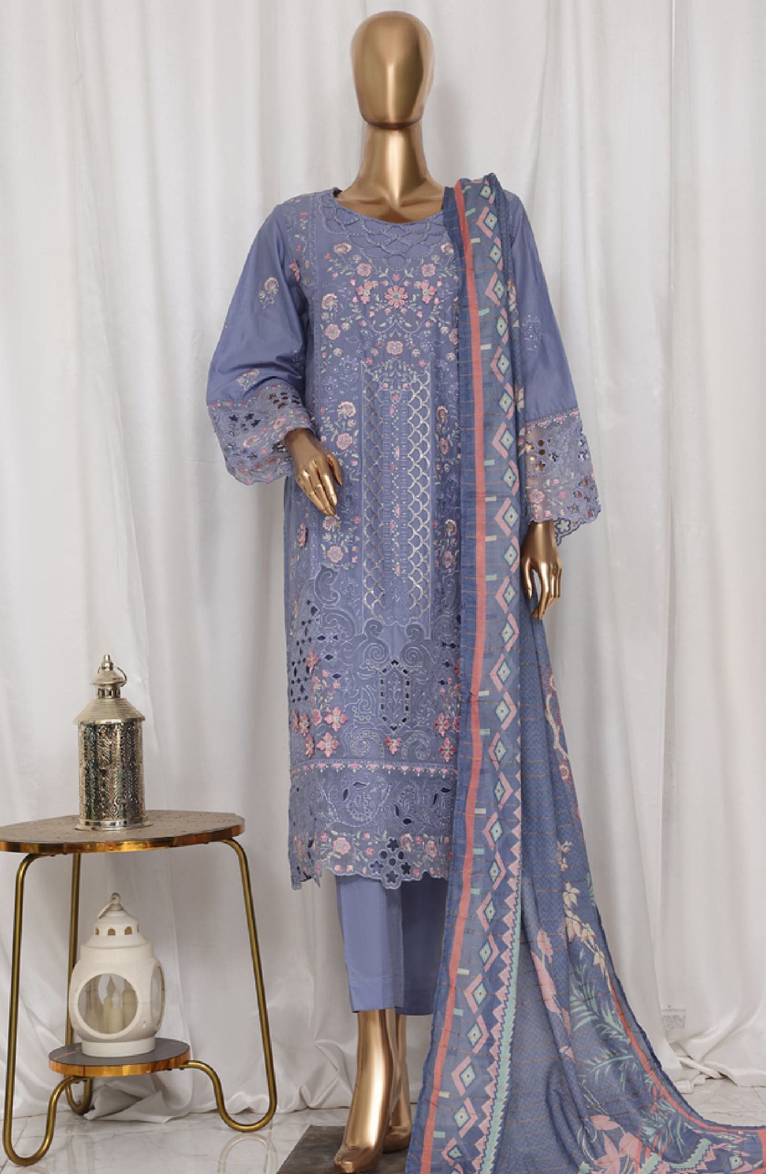 Home Bin Saeed Embroidered Lawn Stitched 3 Piece Suit - LF-143C - BS25LPCV3 - Blue - Summer Collection