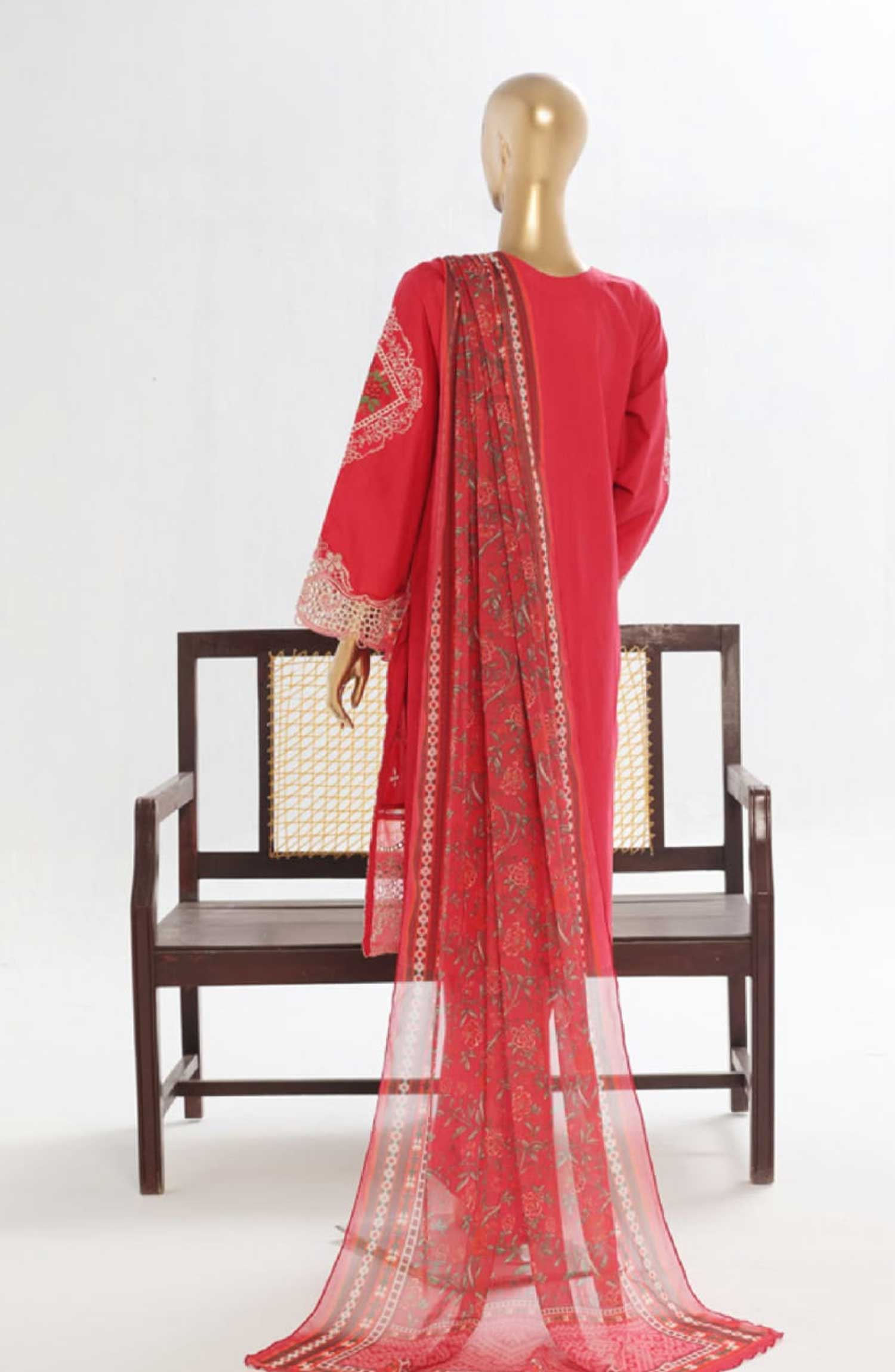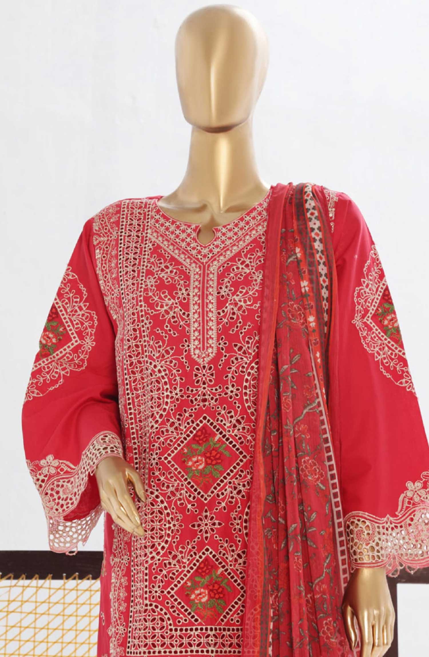 Home Bin Saeed Embroidered Lawn Stitched 3 Piece Suit - LF 144C - BS25LF - Red - Summer Collection