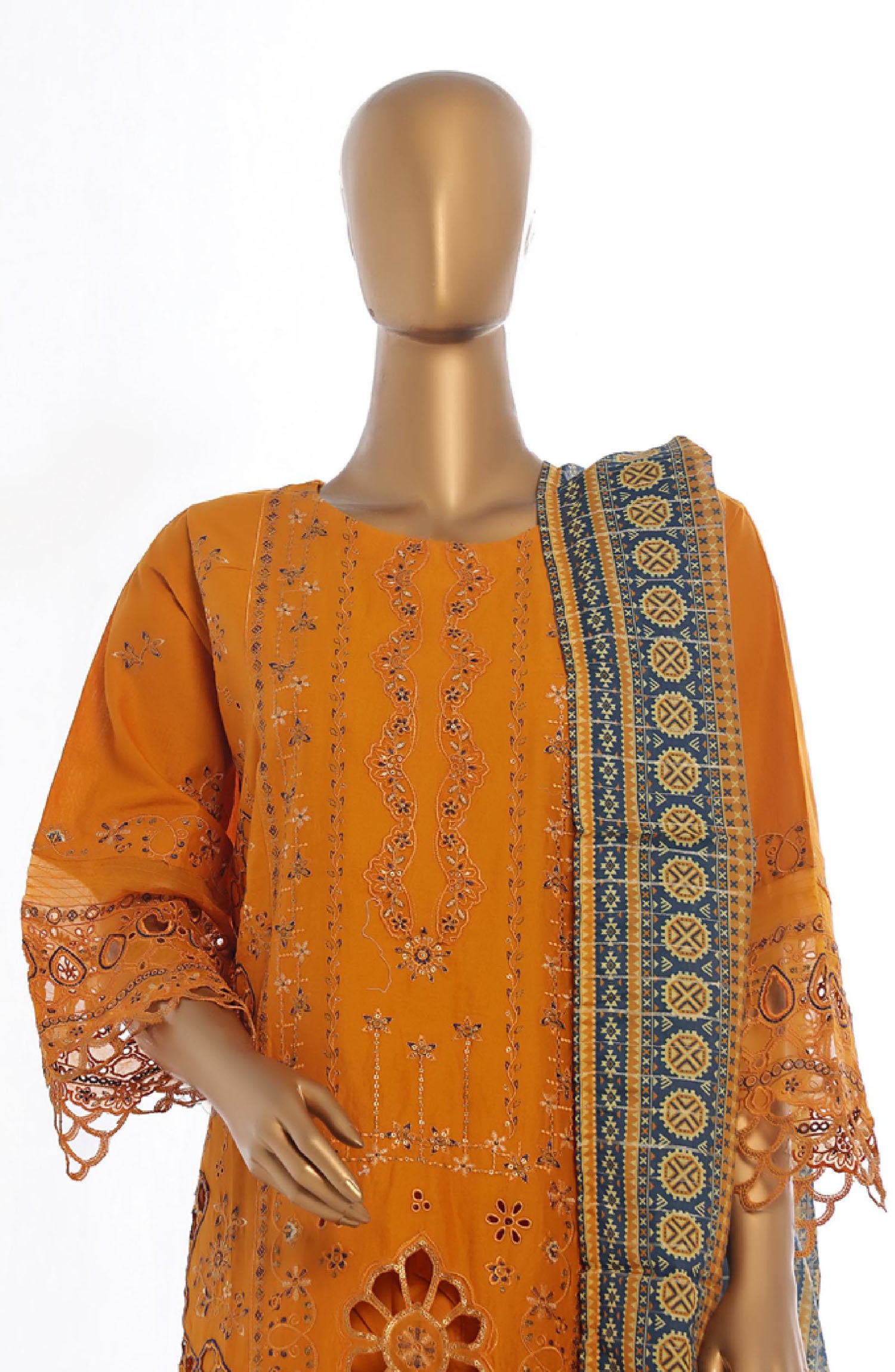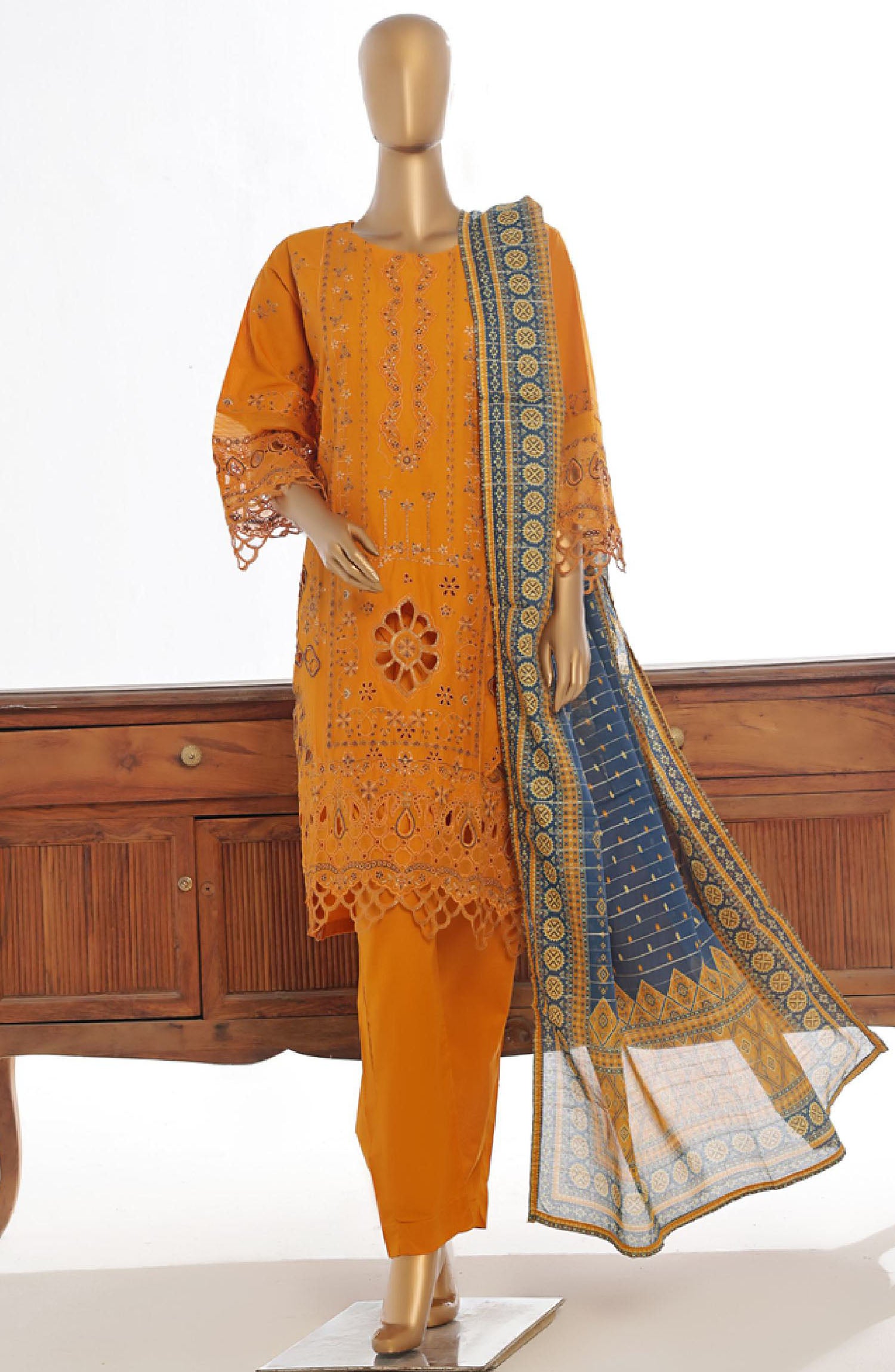 Home Bin Saeed Embroidered Lawn Stitched 3 Piece Suit - LF-145B - BS25LPCV3 - Mustard - Summer Collection
