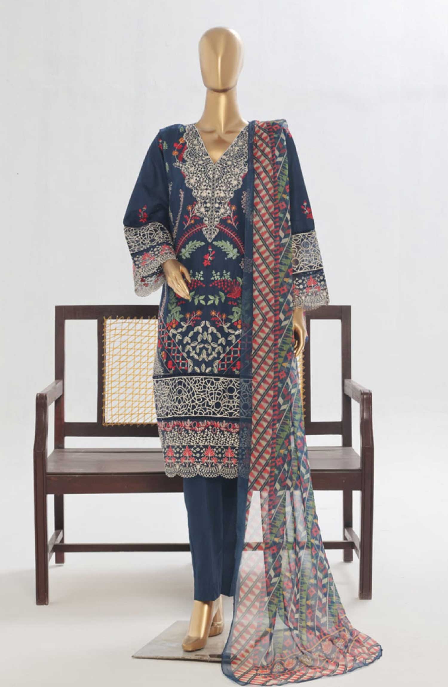 Exclusive Luxury Lawn 3Pc Suit with Chiffon Embroidered Dupatta.