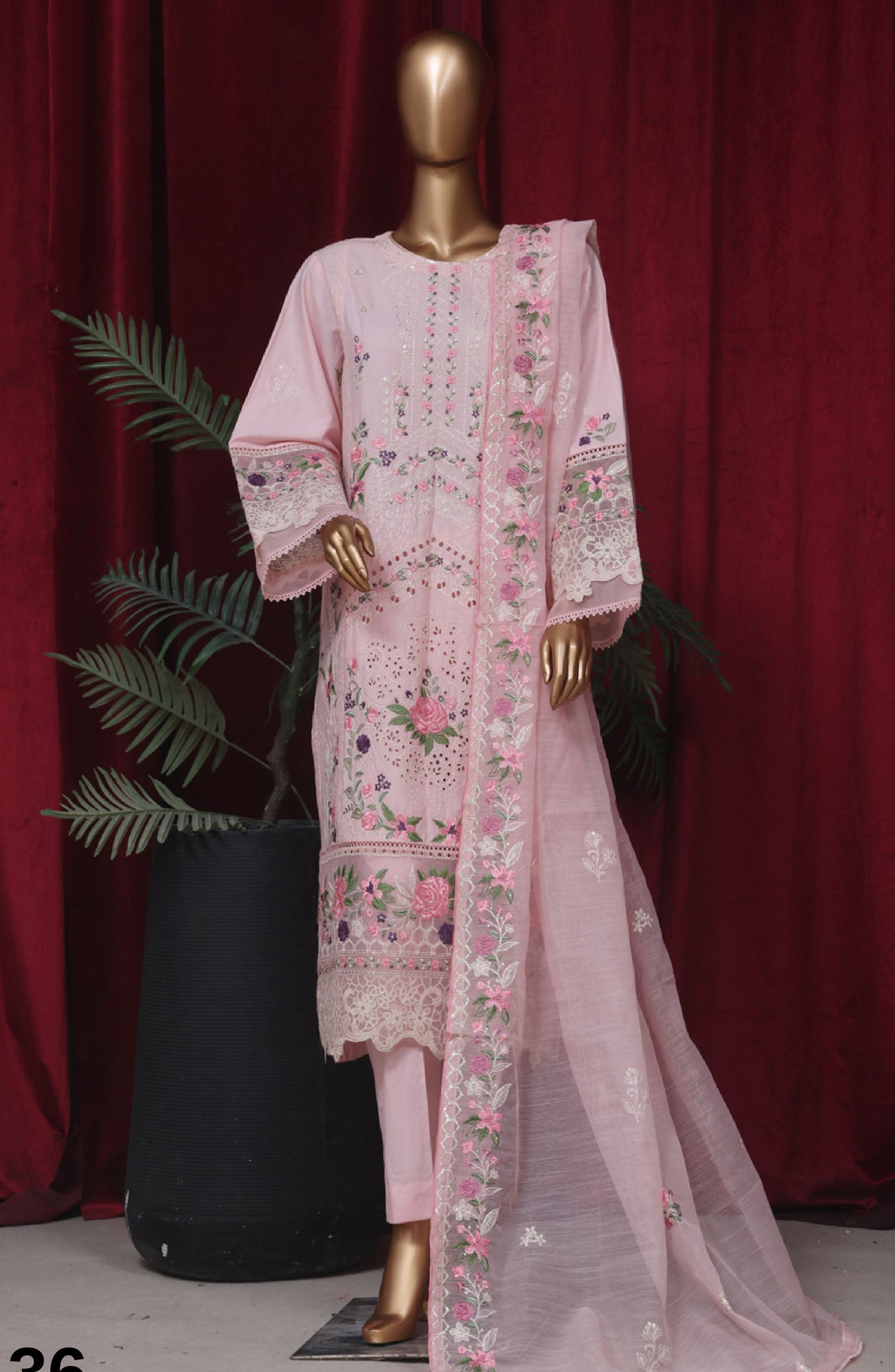 Bin Saeed Embroidered Lawn Stitched 3 Piece Suit - LF-43 - BS25LF - Pink - Summer Collection