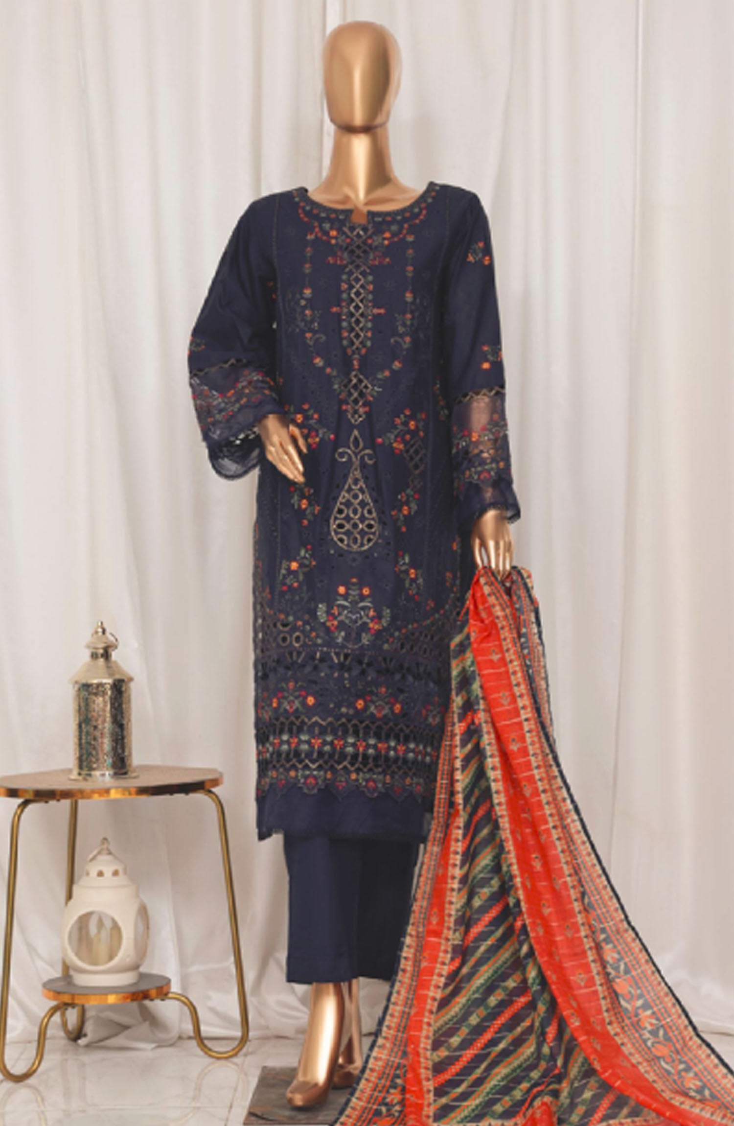 Home Bin Saeed Embroidered Lawn Stitched 3 Piece Suit - LF-46B - BS25LPCV3 - Blue - Summer Collection