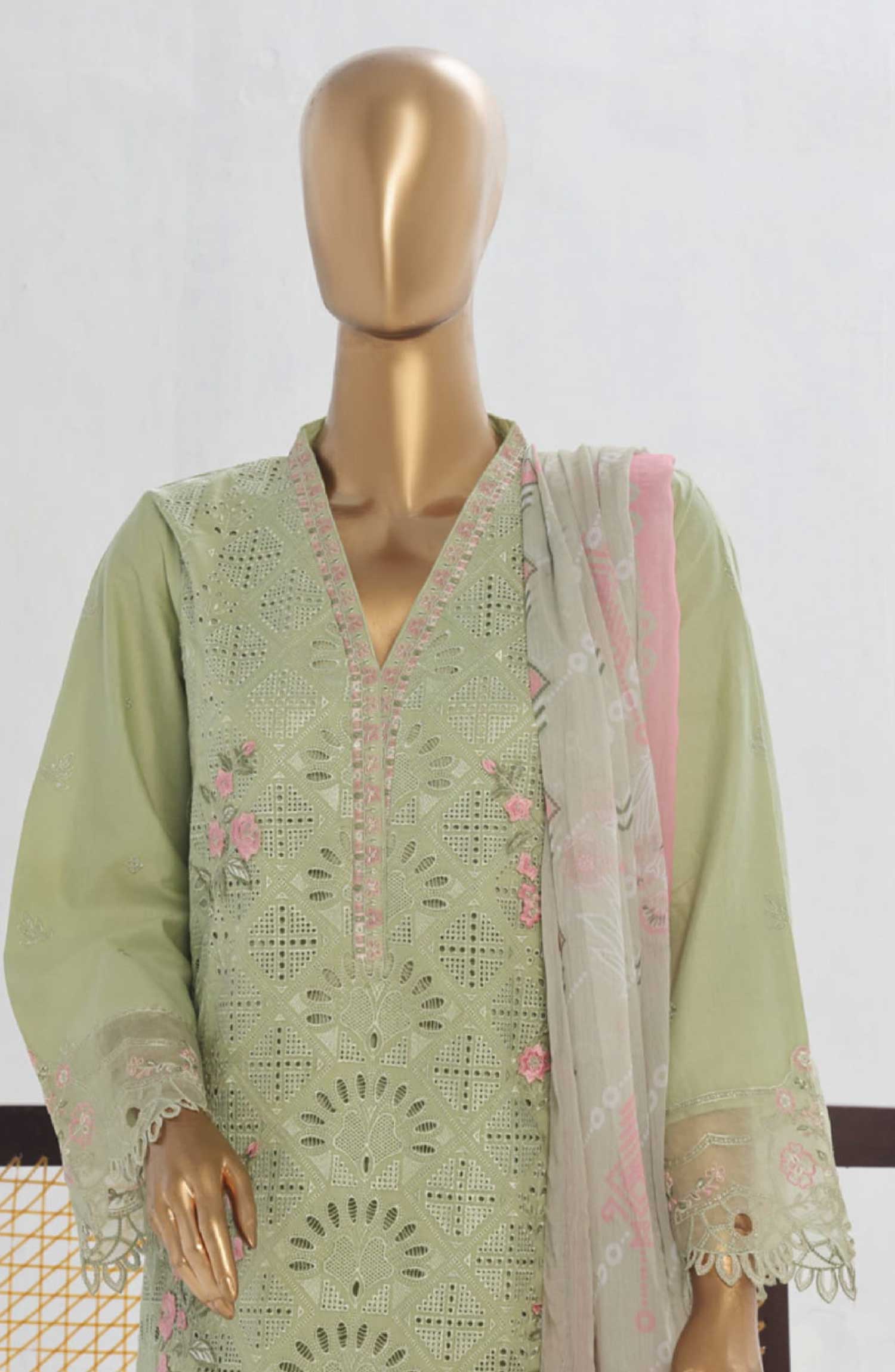 Home Bin Saeed Embroidered Lawn Stitched 3 Piece Suit - LF 93A - BS25LF - Green - Summer Collection