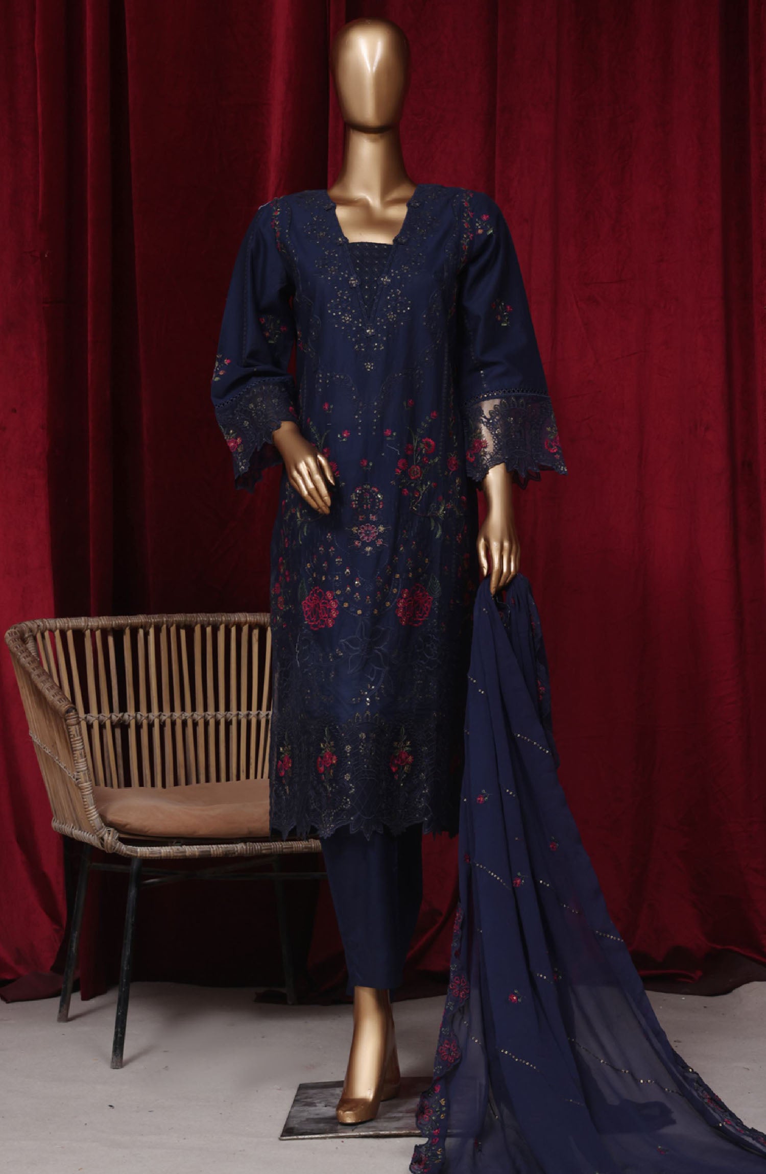 Home Bin Saeed Embroidered Lawn Stitched 3 Piece Suit - LF101 - BS25LF - Blue - Summer Collection