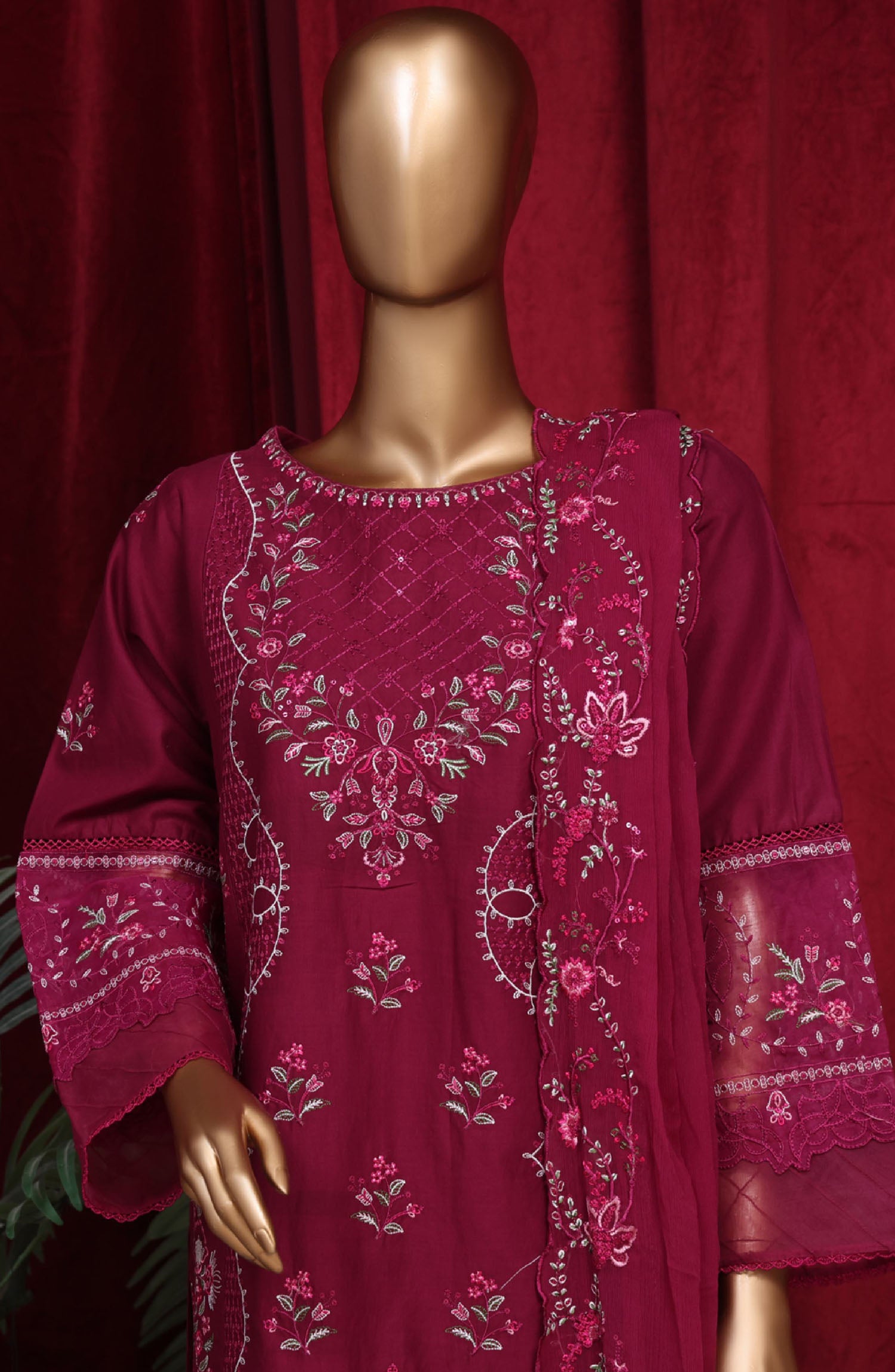 Modest Embroidered Khaddar Stitched 3 Piece Suit - 10040-Pnk - MOD25WNT - Pink - Winter Collection