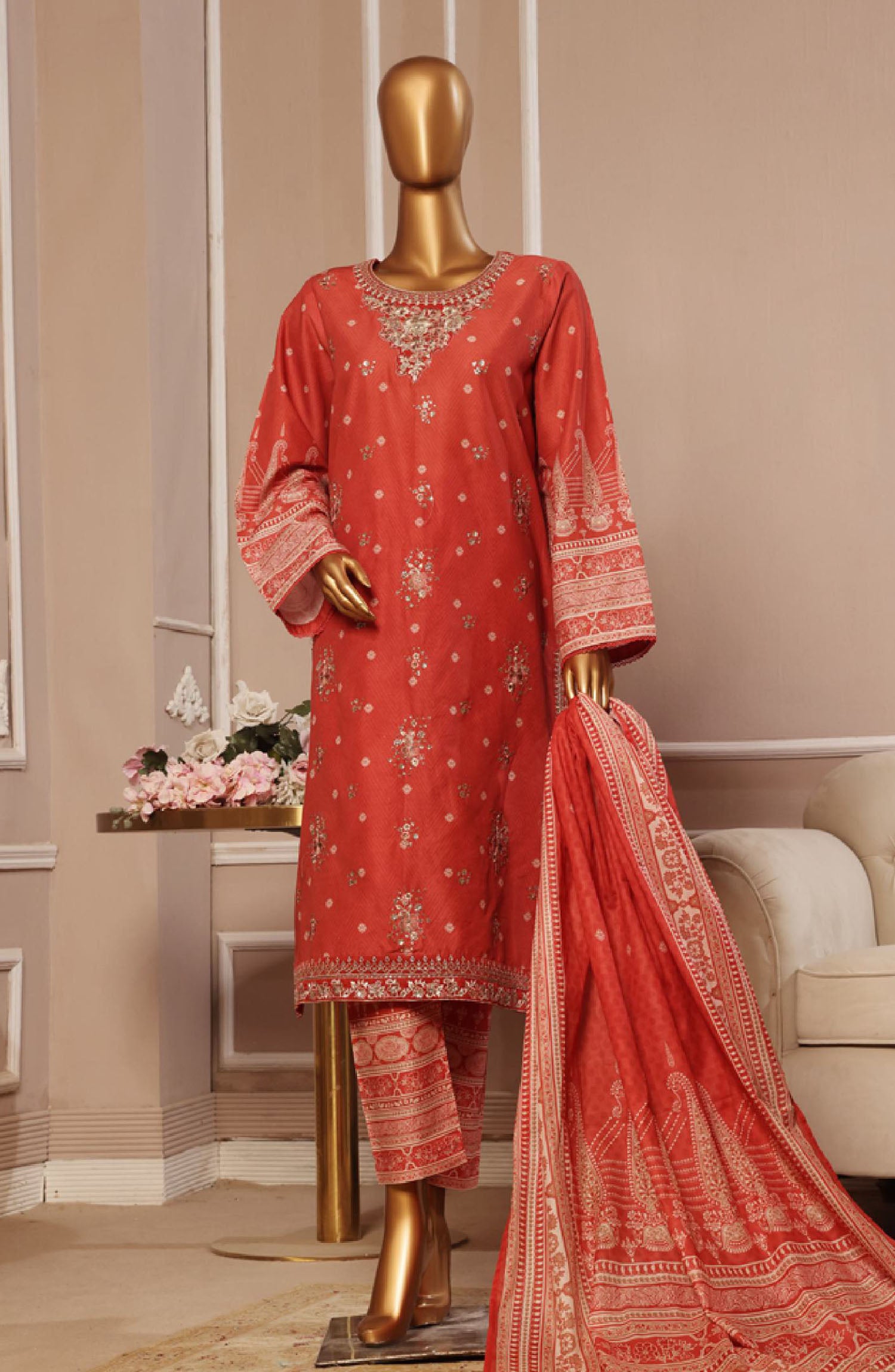 Home Bin Saeed Embroidered Lawn Stitched 3 Piece Suit - SM-032 - BS25EL3PCV5 - Pink - Summer Collection