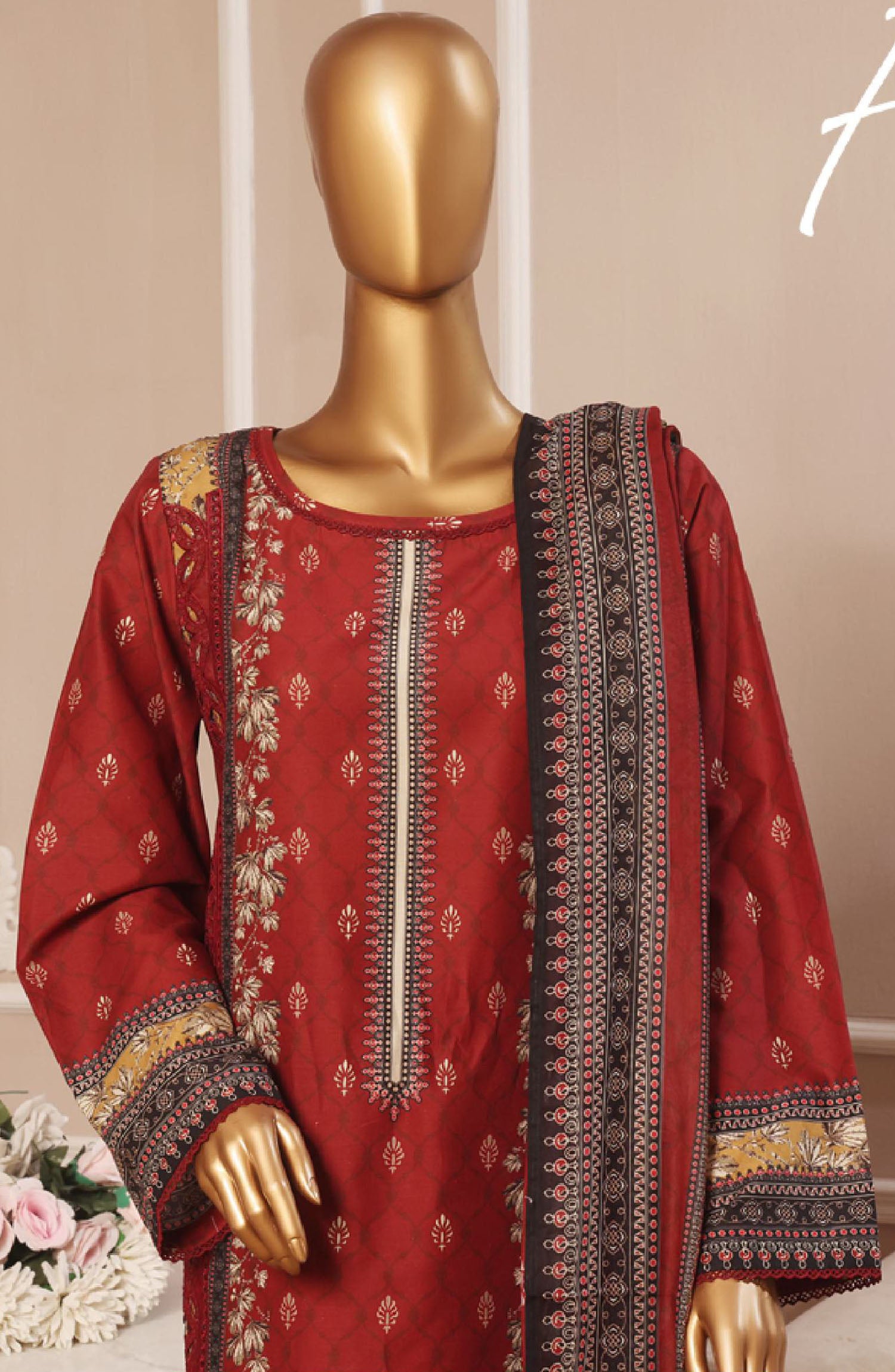 Home Bin Saeed Embroidered Lawn Stitched 3 Piece Suit - SM-046 - BS25ELCV4 - Red - Summer Collection