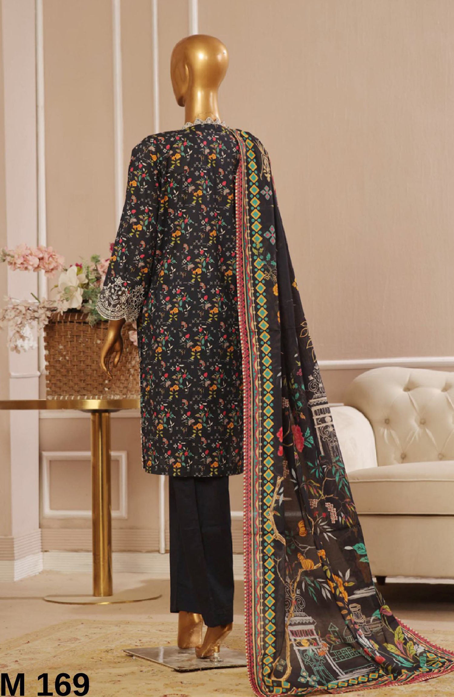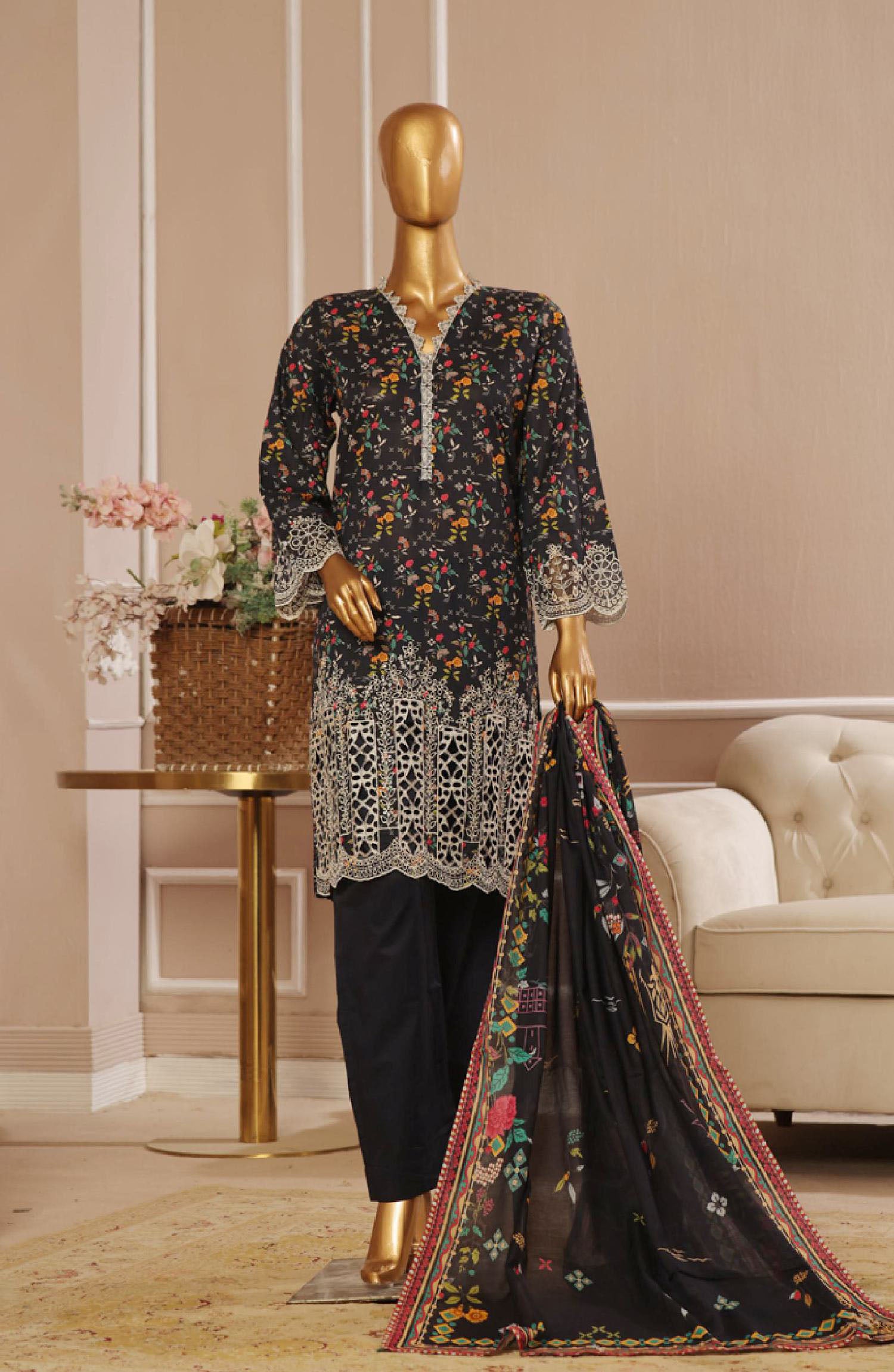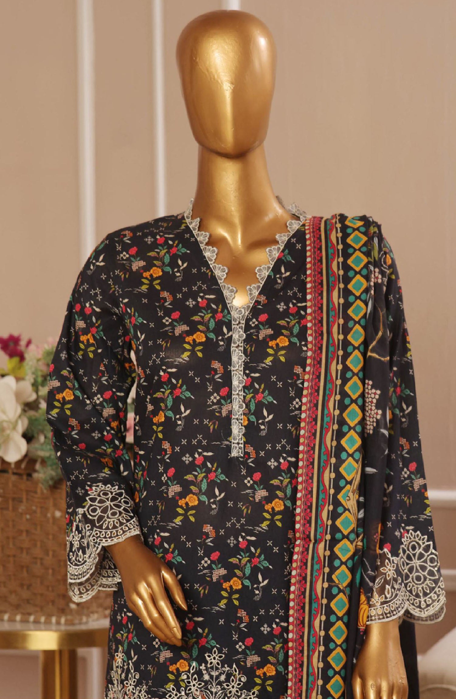 Home Bin Saeed Embroidered Lawn Stitched 3 Piece Suit - SM-169 - BS25EKR - Black - Summer Collection