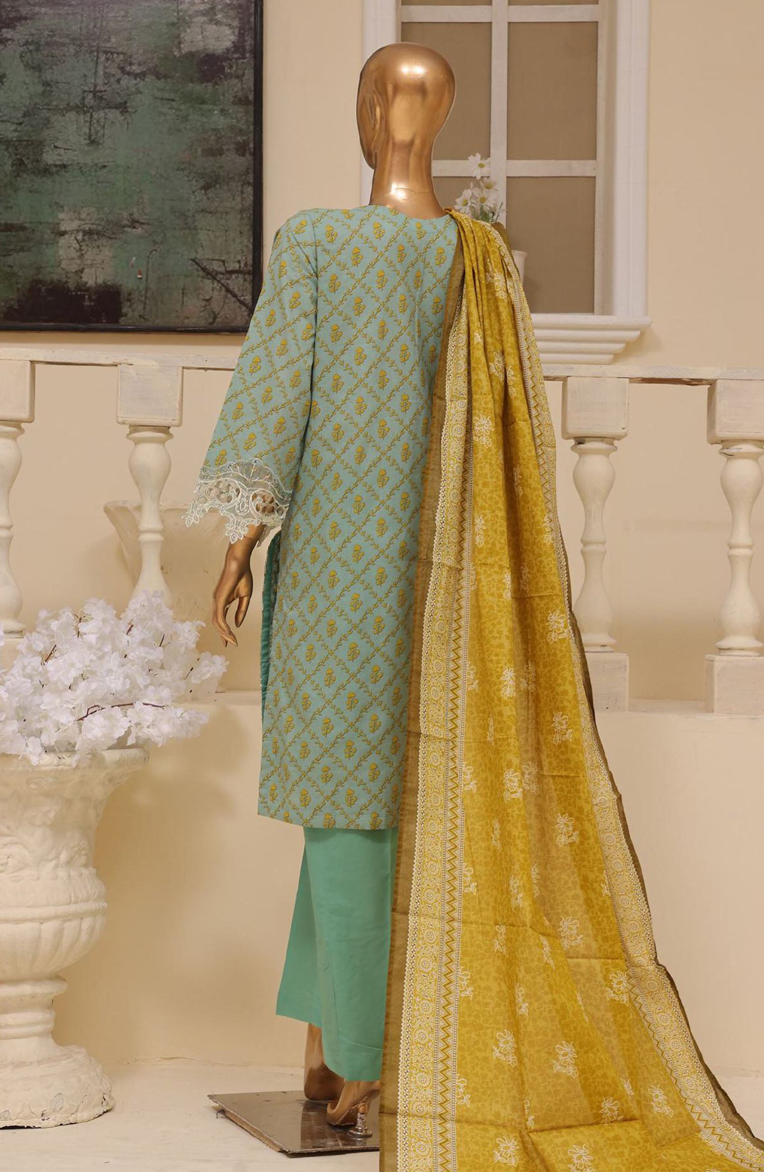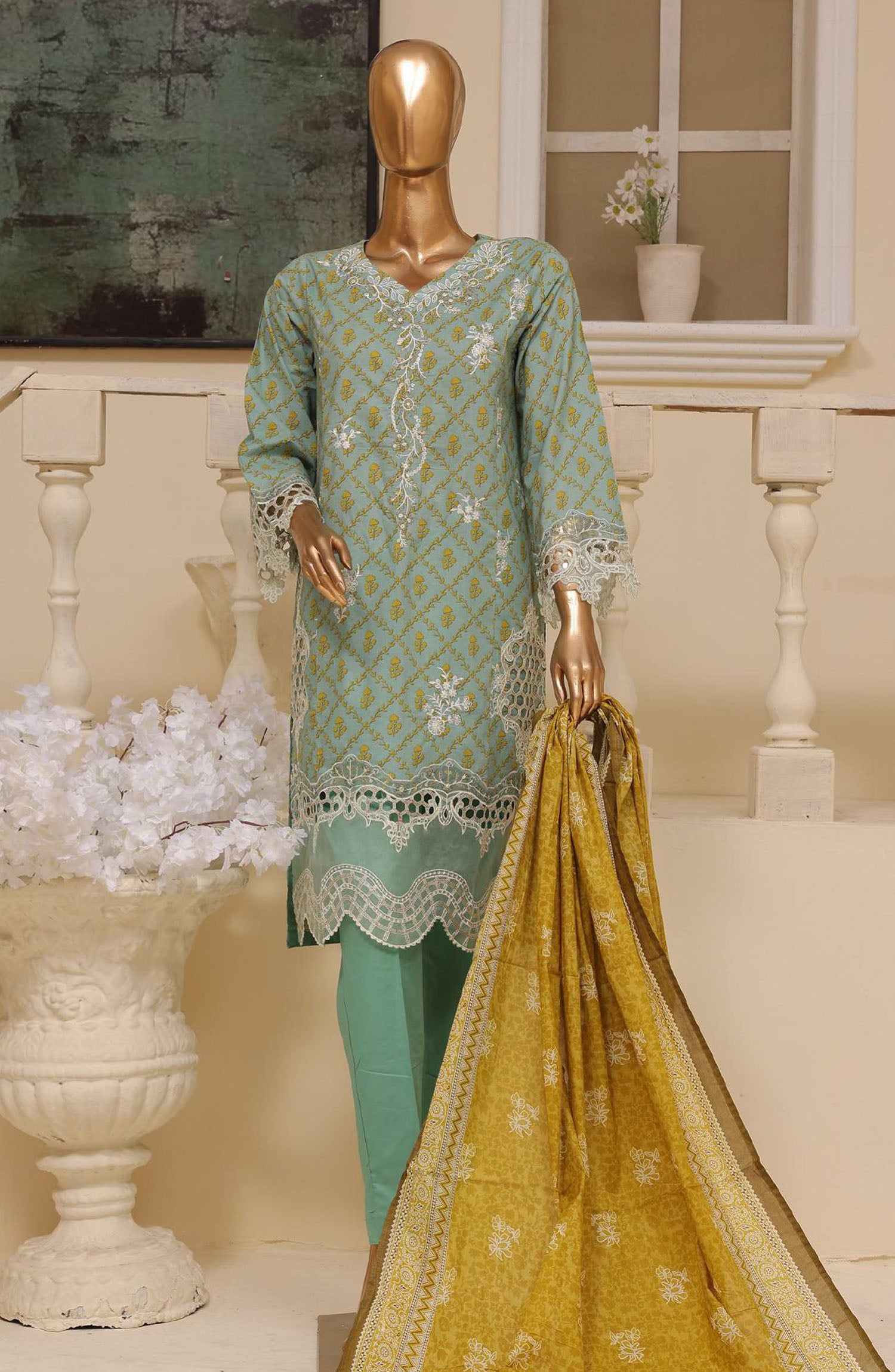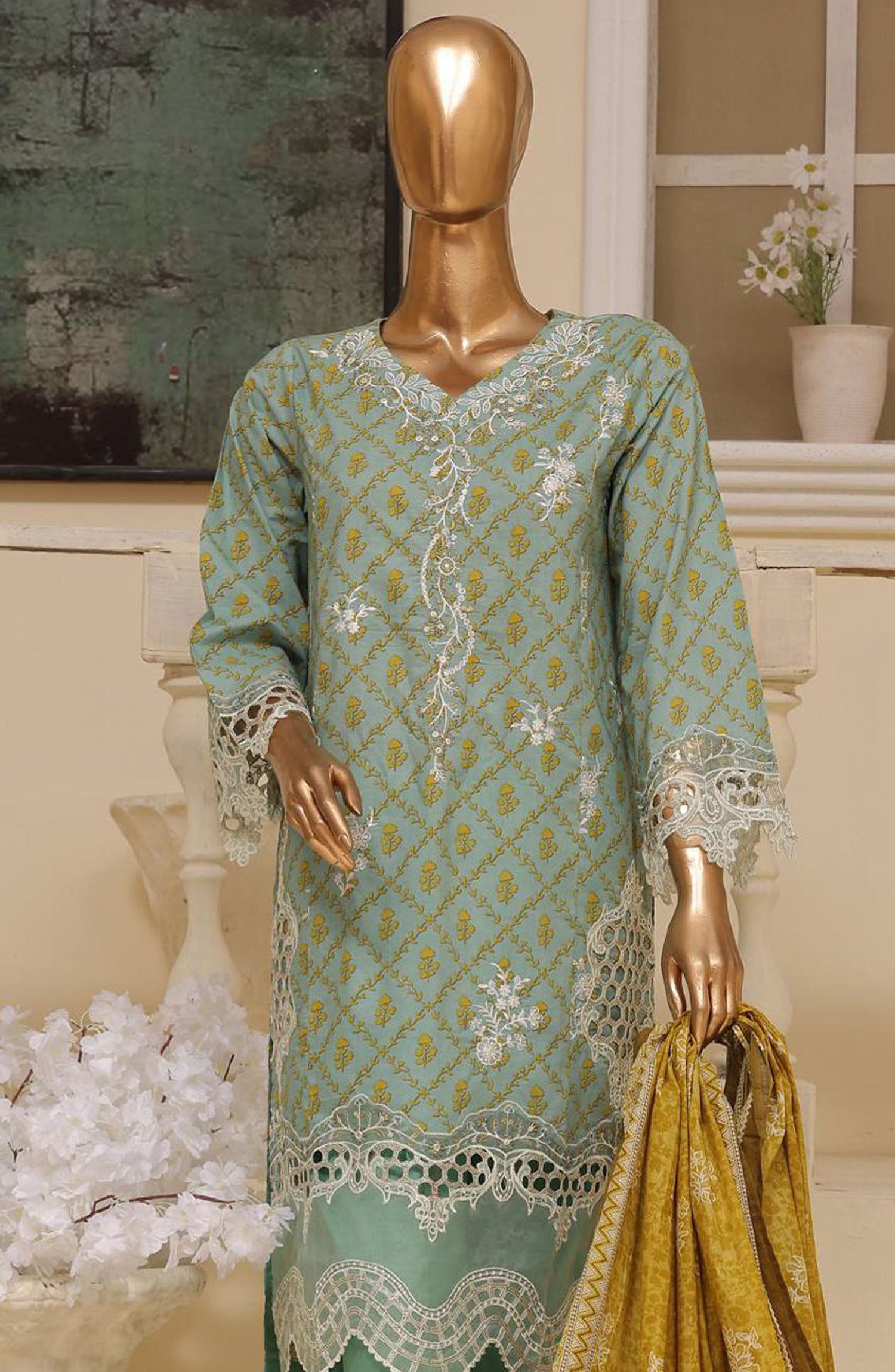 Home Bin Saeed Embroidered Lawn Stitched 3 Piece Suit - SM-597 - BS25ELCV4 - Green - Summer Collection