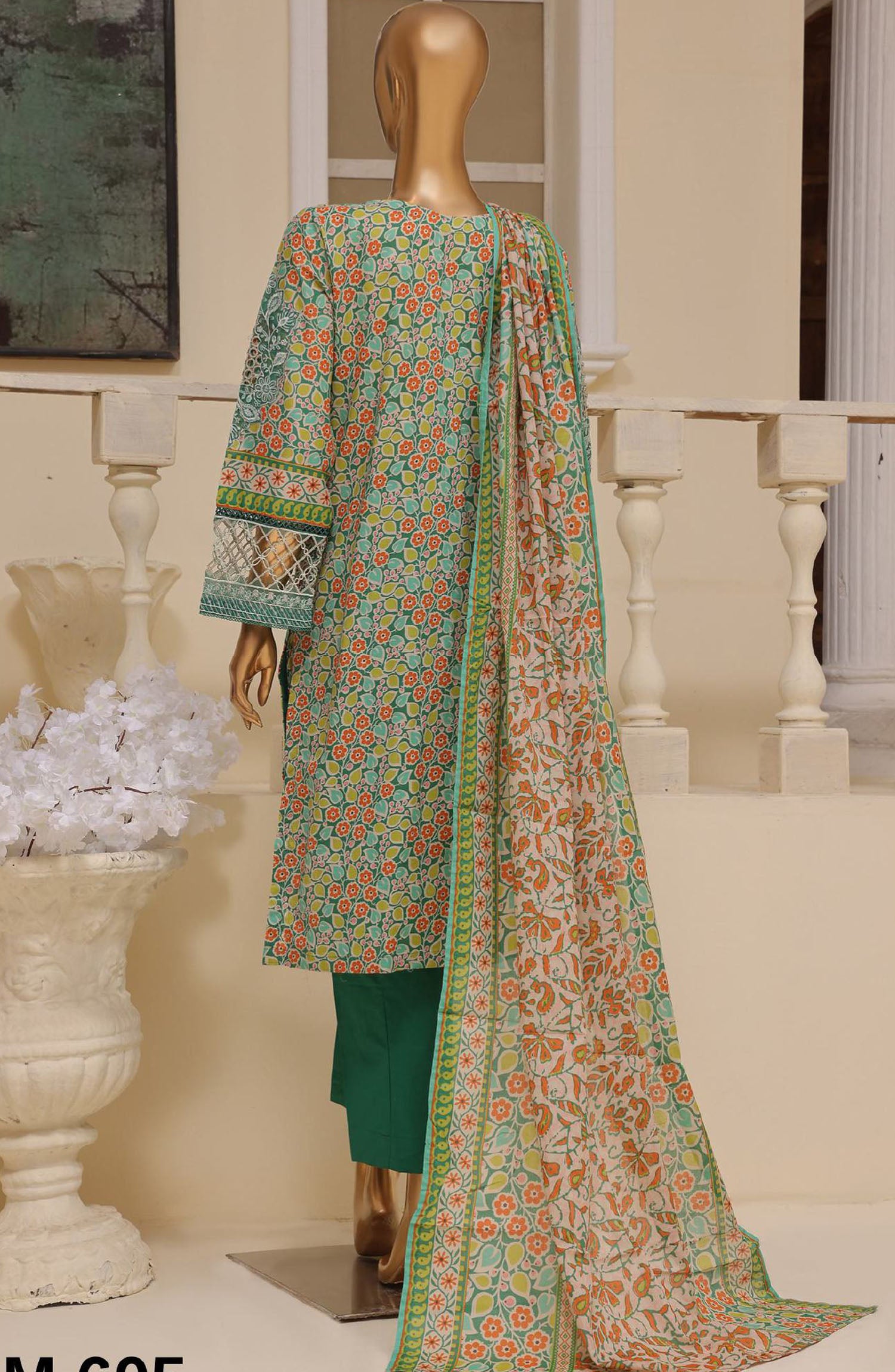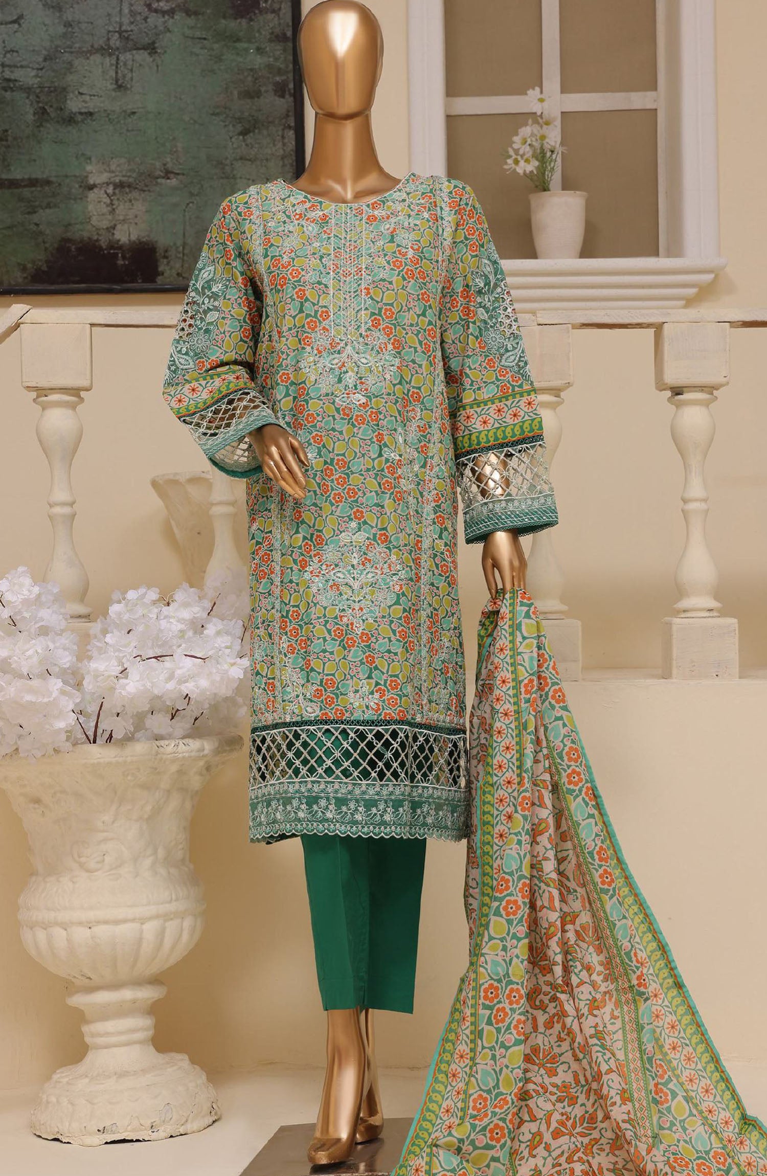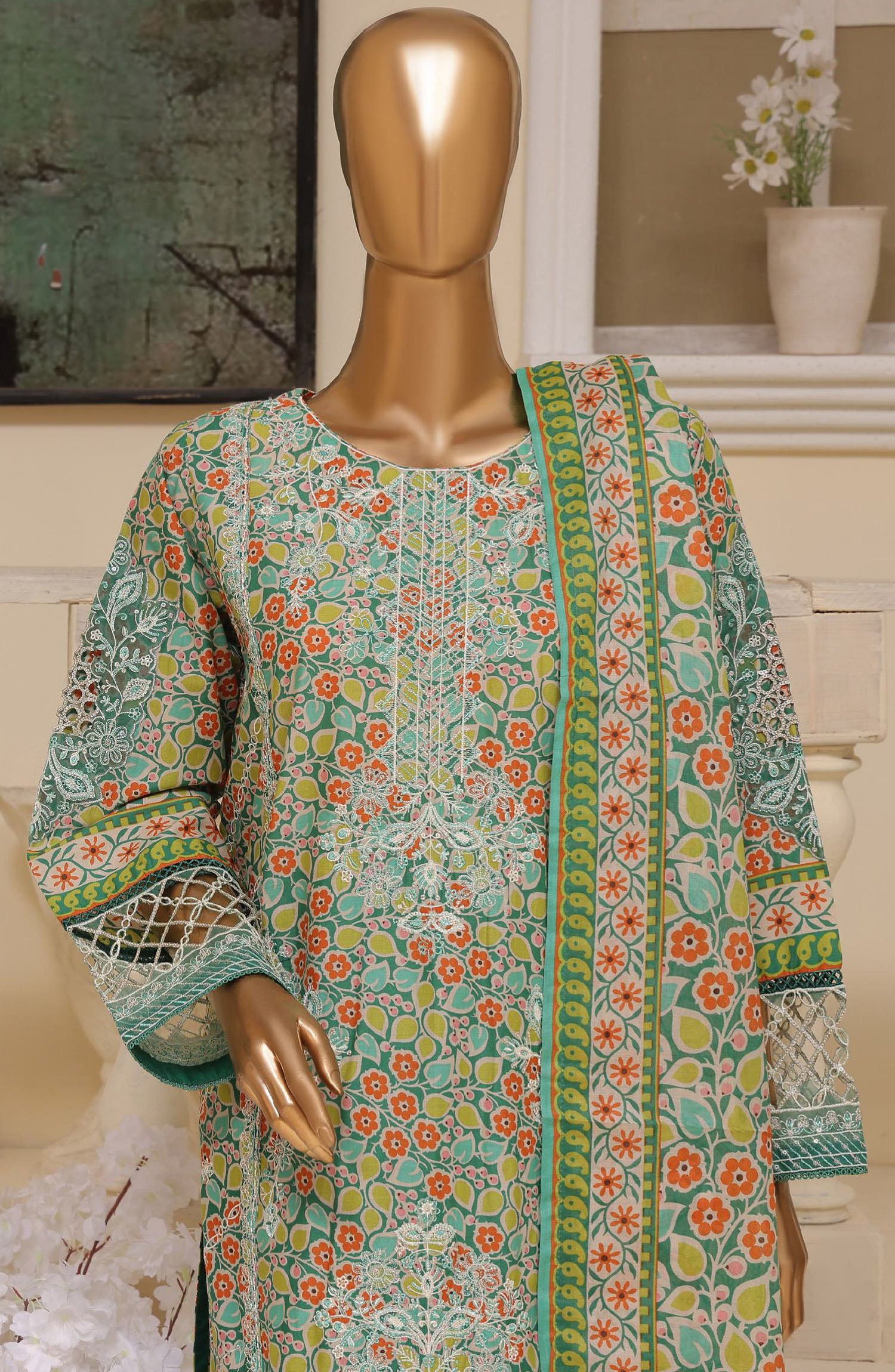 Home Bin Saeed Embroidered Lawn Stitched 3 Piece Suit - SM-605 - BS25EELV7 - Green - Summer Collection