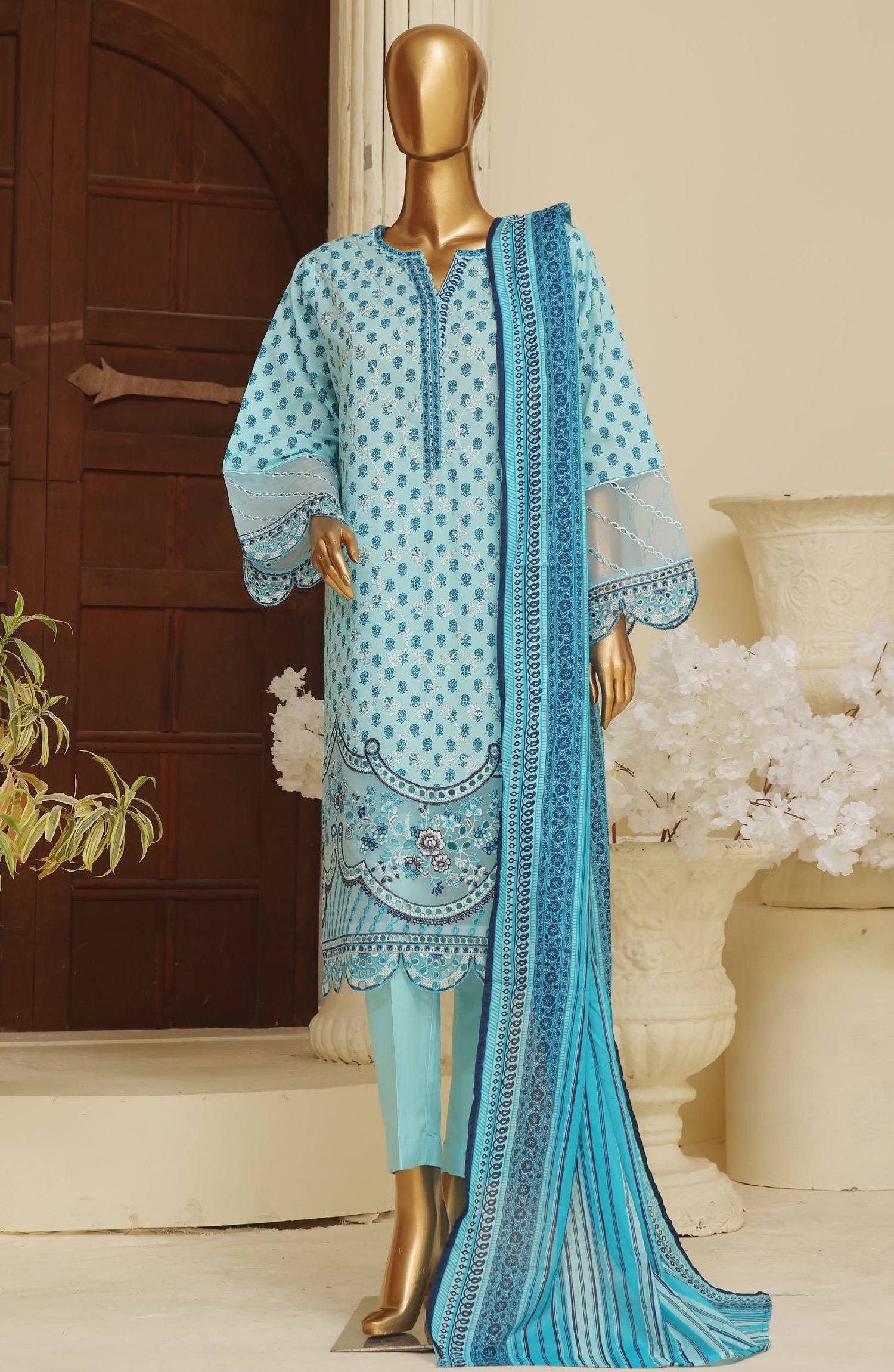 Home Bin Saeed Embroidered Lawn Stitched 3 Piece Suit - SM-610 - BS25EL3PCV5 - Blue - Summer Collection