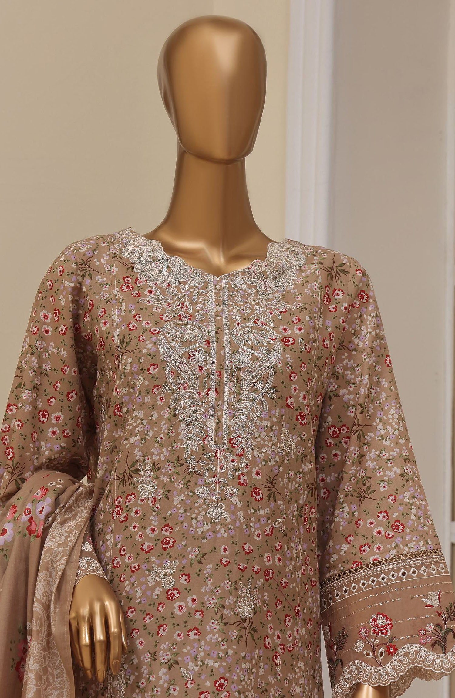 Home Bin Saeed Embroidered Lawn Stitched 3 Piece Suit - SM-615 - BS25EL3PCV5 - Brown - Summer Collection