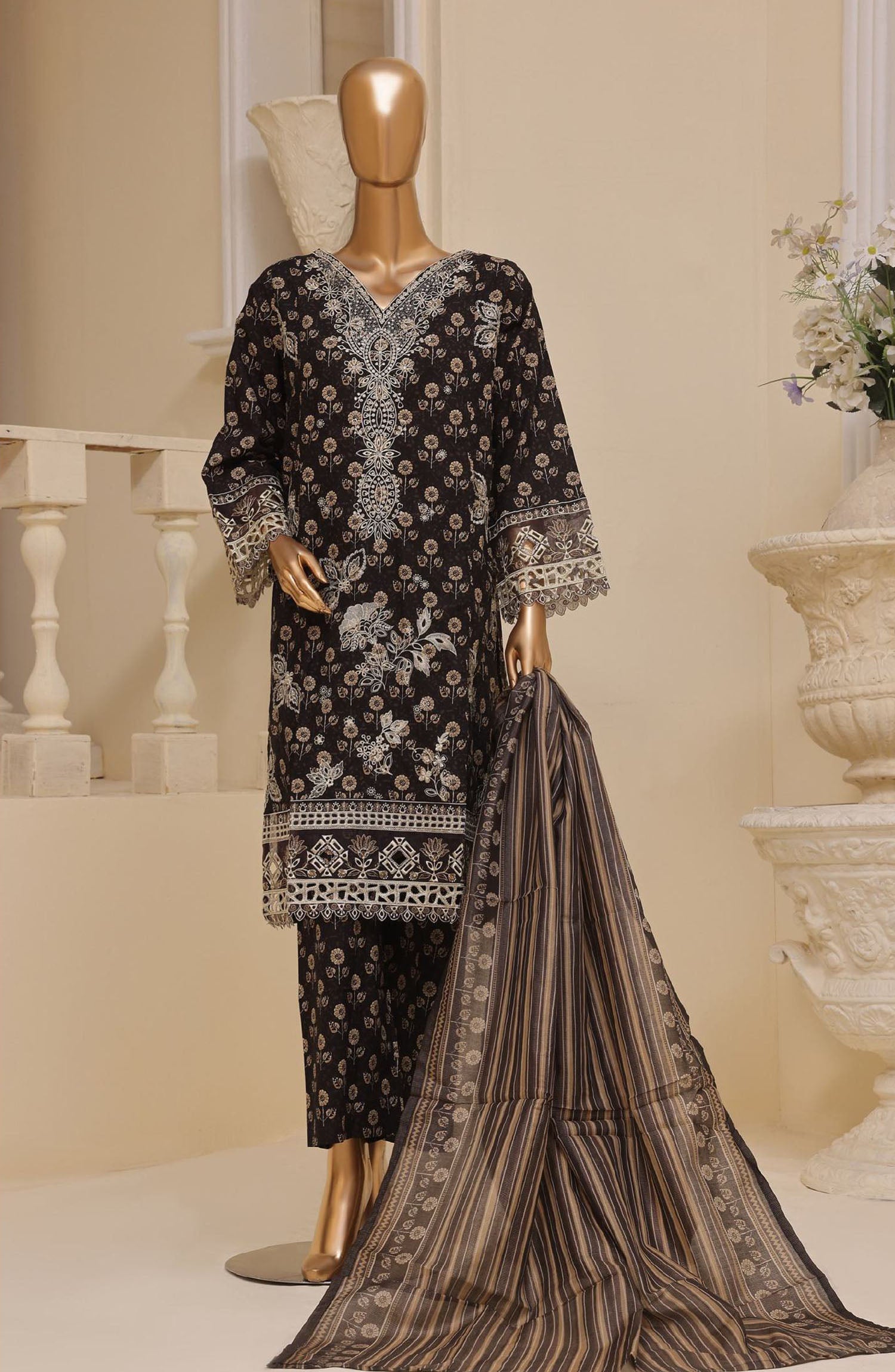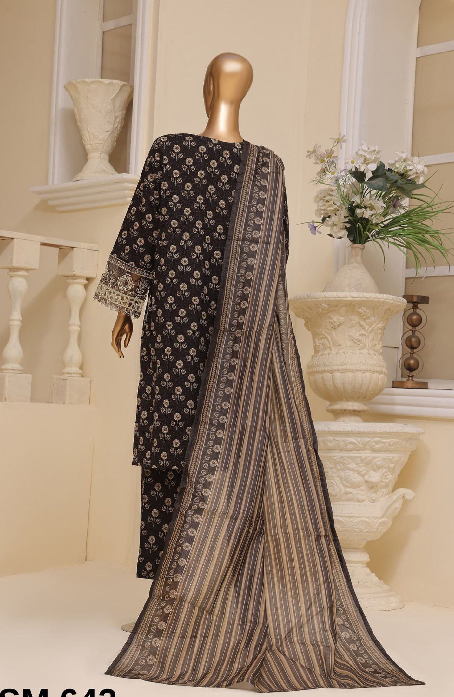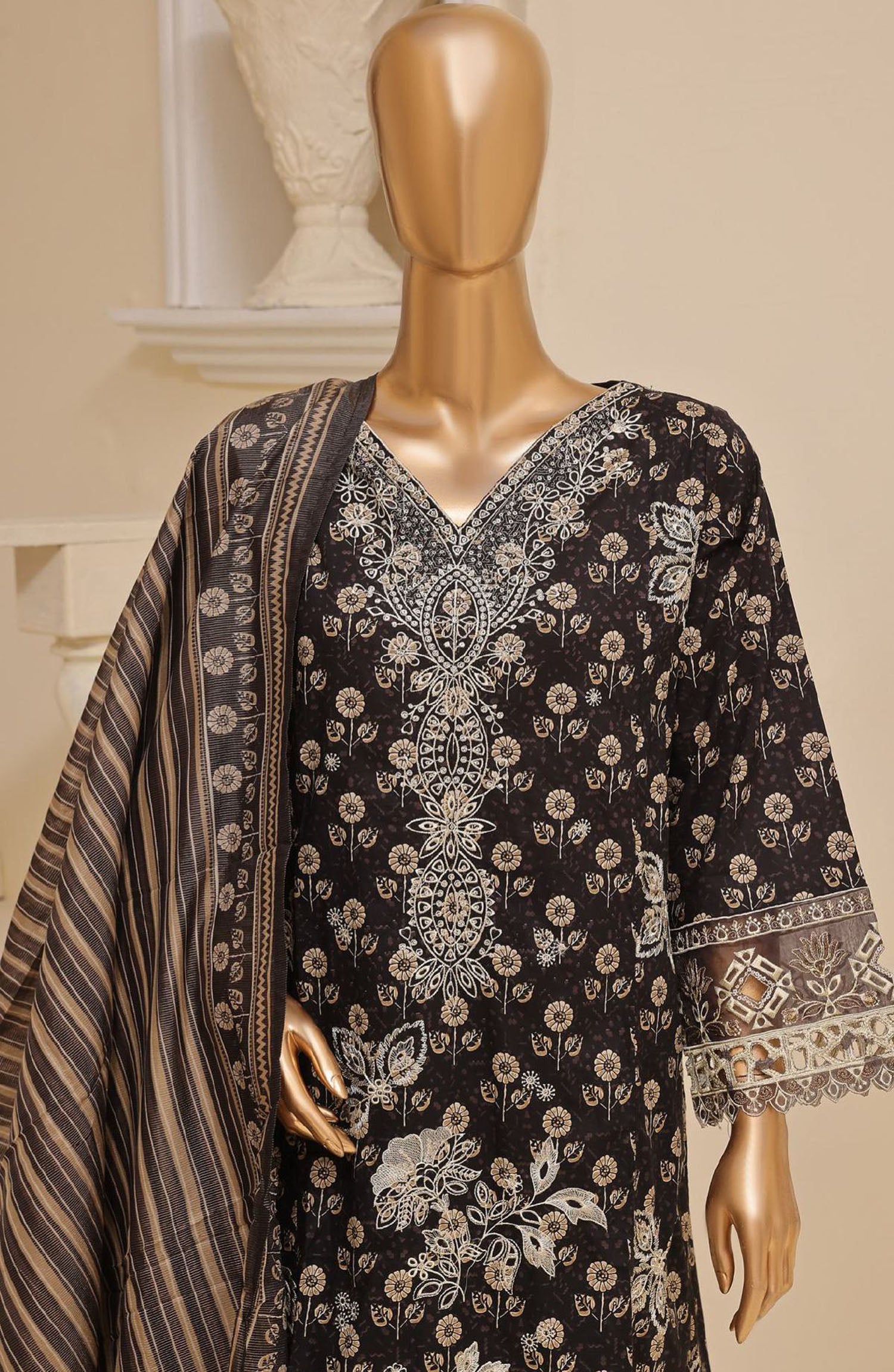 Home Bin Saeed Embroidered Lawn Stitched 3 Piece Suit - SM-643 - BS25EELV7 - Black - Summer Collection