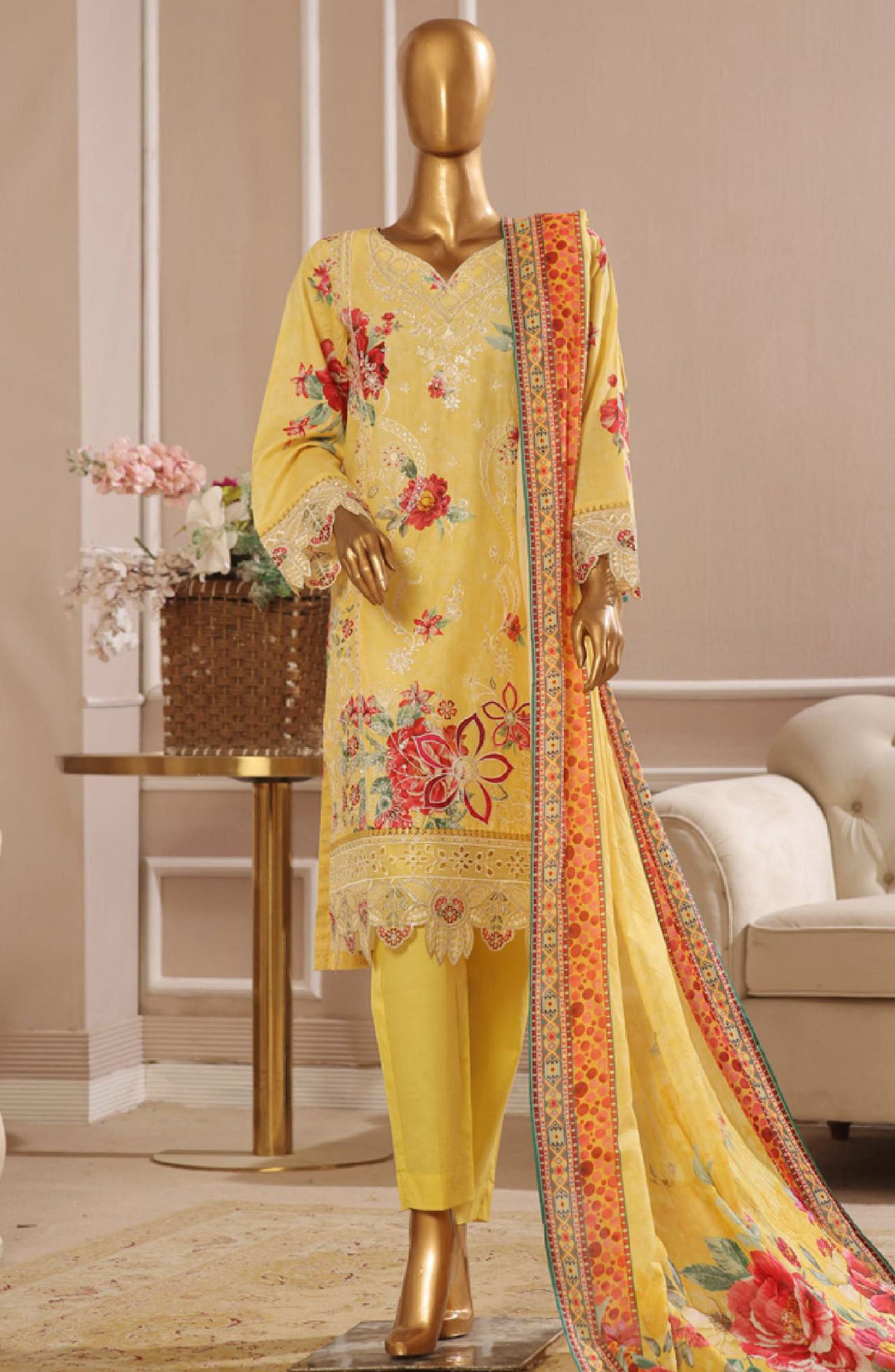 Home Bin Saeed Embroidered Lawn Stitched 3 Piece Suit - SM-741 - BS25EL3PCV5 - Yellow - Summer Collection