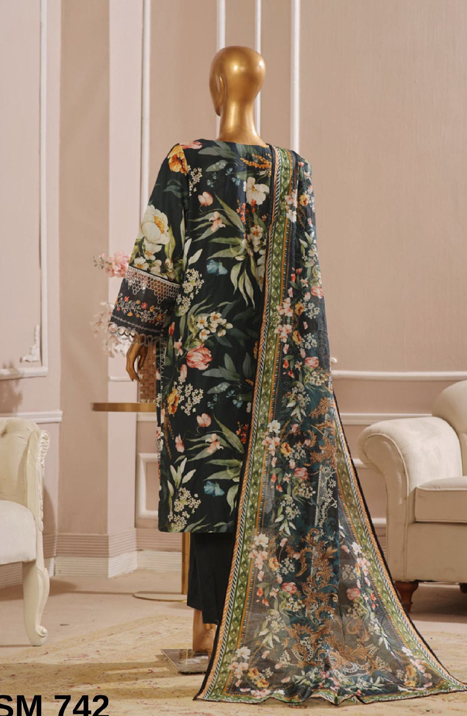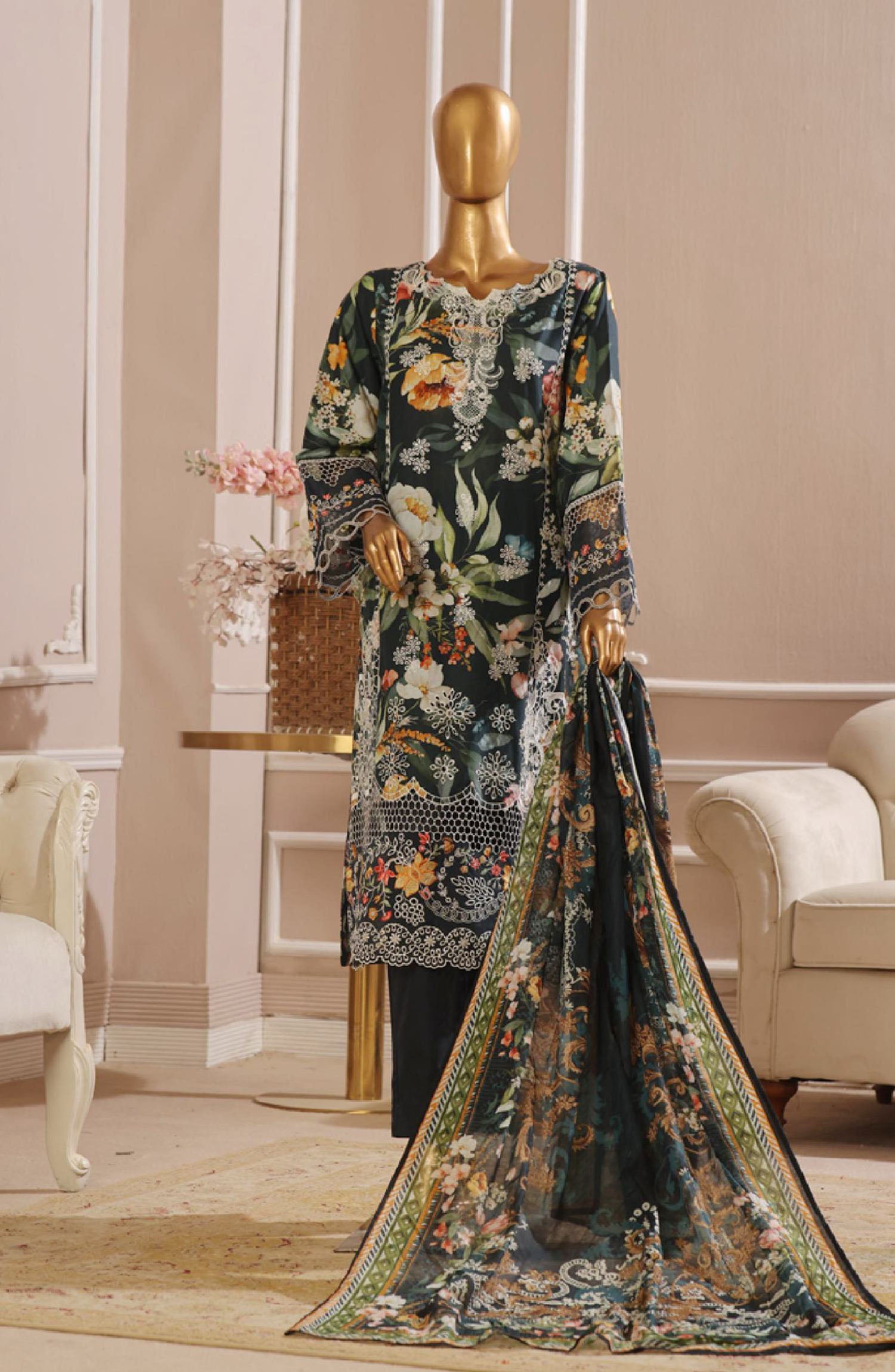 Home Bin Saeed Embroidered Lawn Stitched 3 Piece Suit - SM-742 - BS25EKR - Green - Summer Collection
