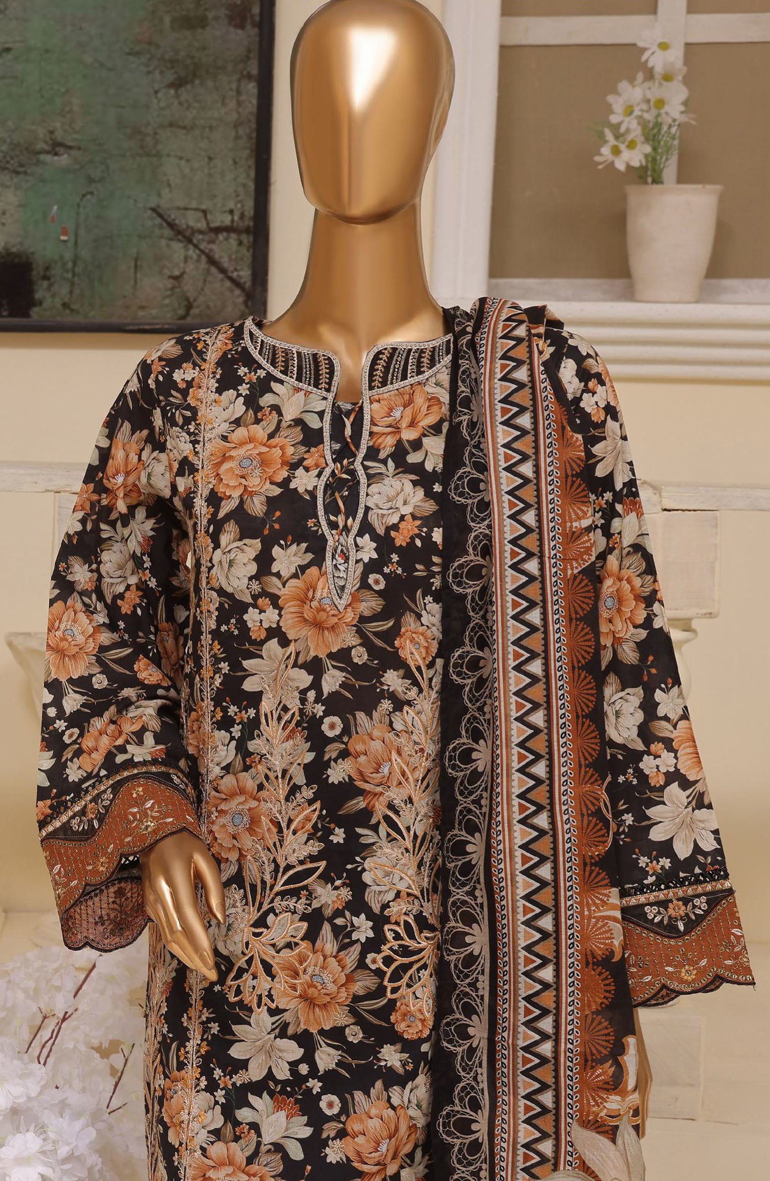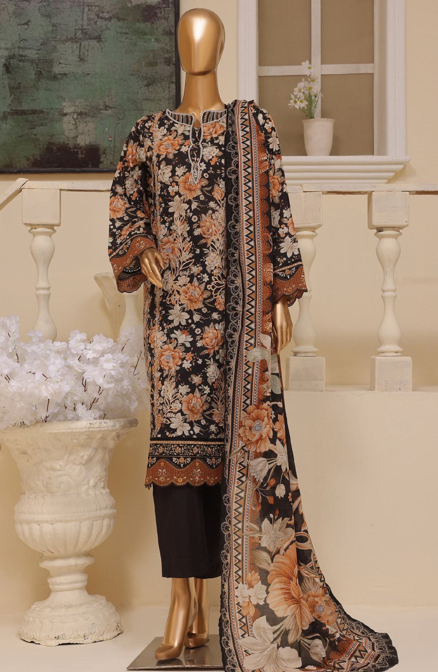 Home Bin Saeed Embroidered Lawn Stitched 3 Piece Suit - SM-743 - BS25EELV7 - Black - Summer Collection