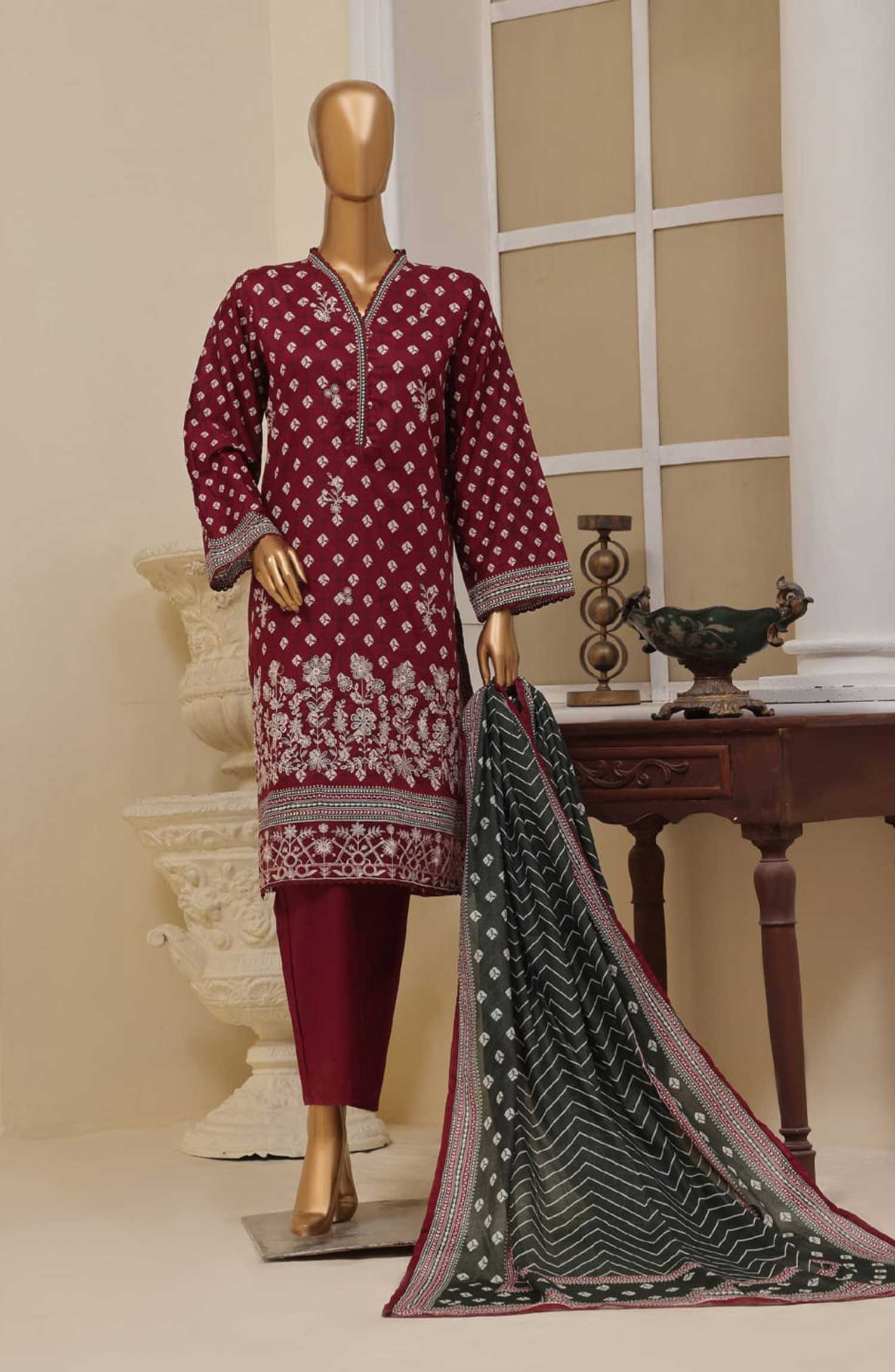 Modest Embroidered Khaddar Stitched 3 Piece Suit - 10040-Pnk - MOD25WNT - Pink - Winter Collection