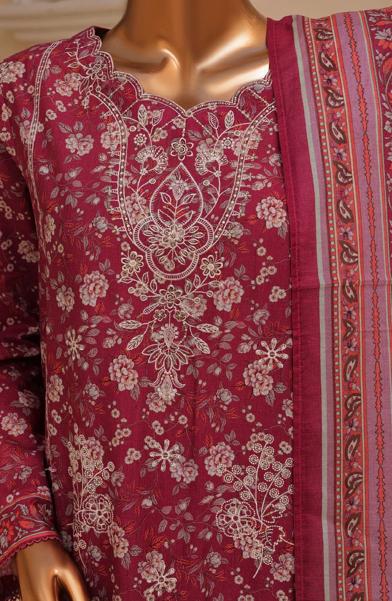 Modest Embroidered Khaddar Stitched 3 Piece Suit - 10050-Mar - MOD25WNT - Maroon - Winter Collection