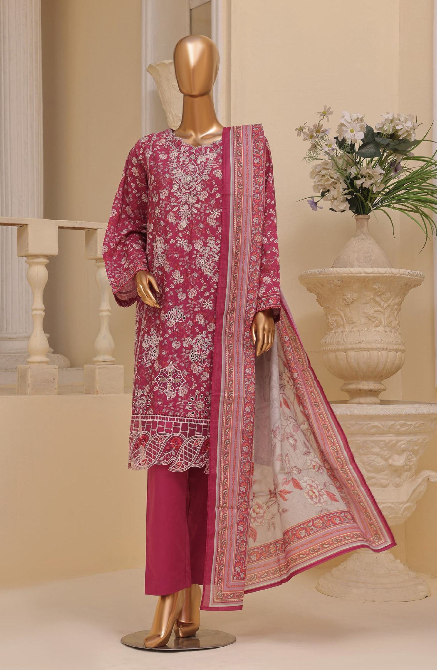 Home Bin Saeed Embroidered Lawn Stitched 3 Piece Suit - SM-769 - BS25EKR - Pink - Summer Collection
