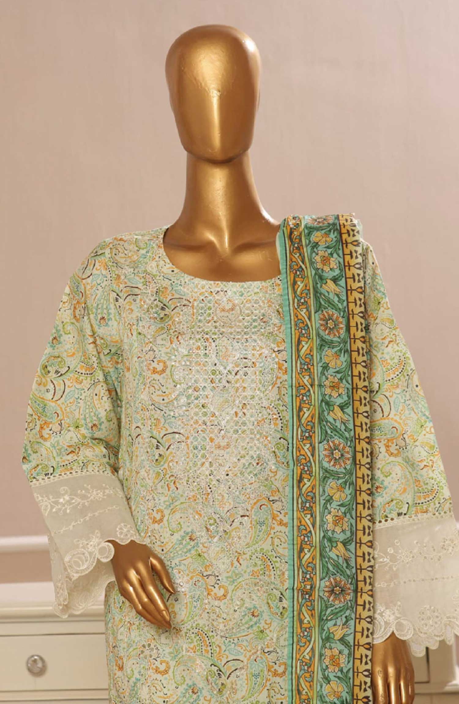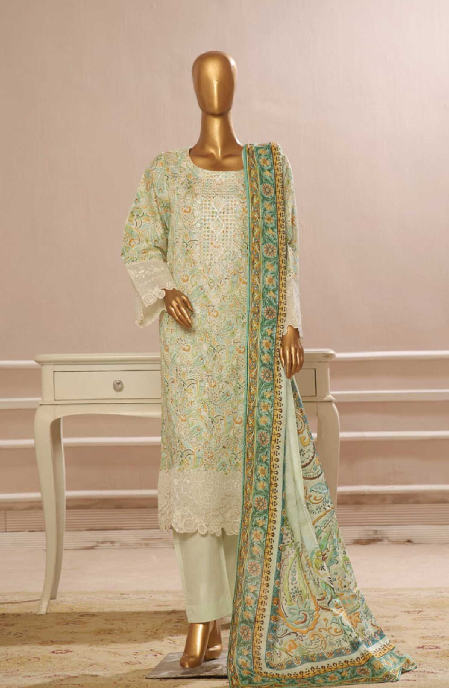 Home Bin Saeed Embroidered Lawn Stitched 3 Piece Suit - SM 771 - BS25EElV3 - Green - Summer Collection