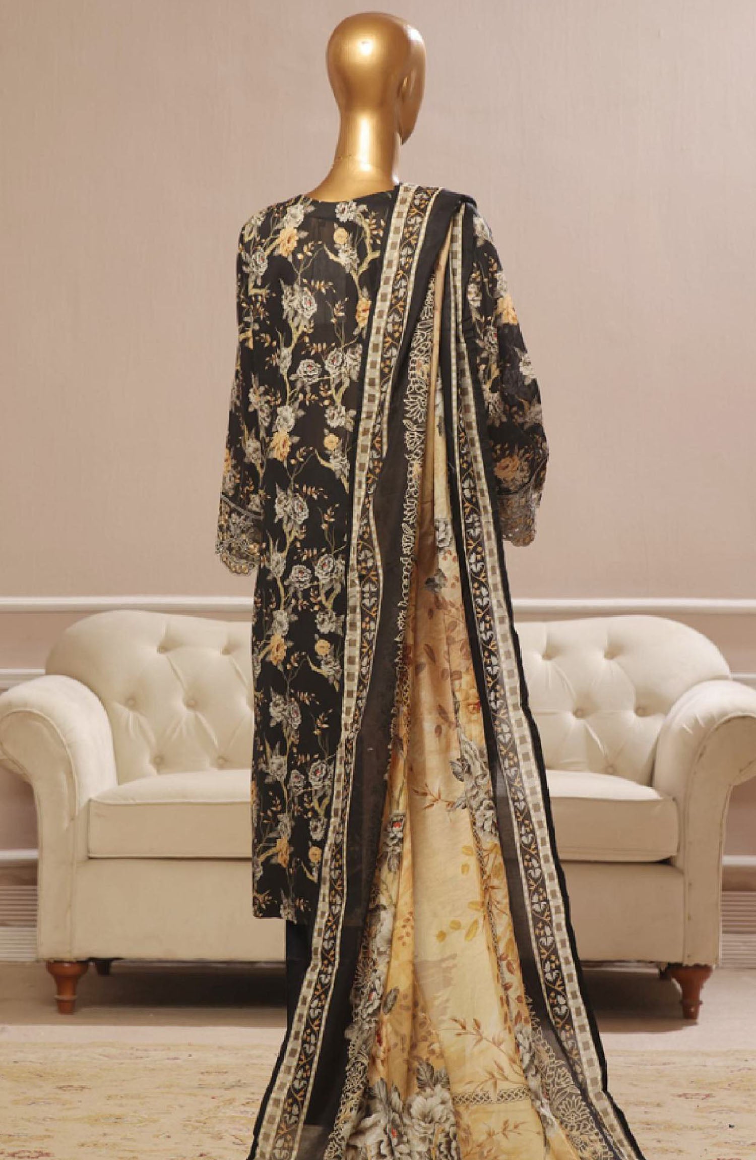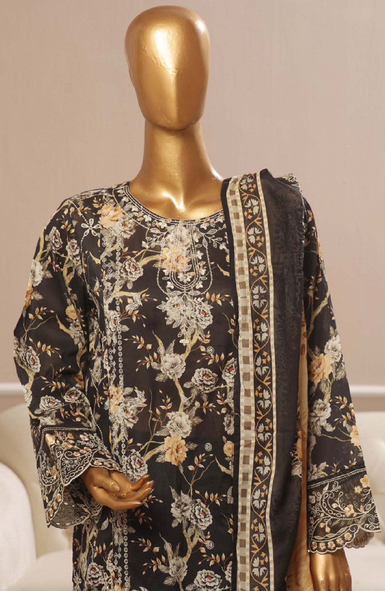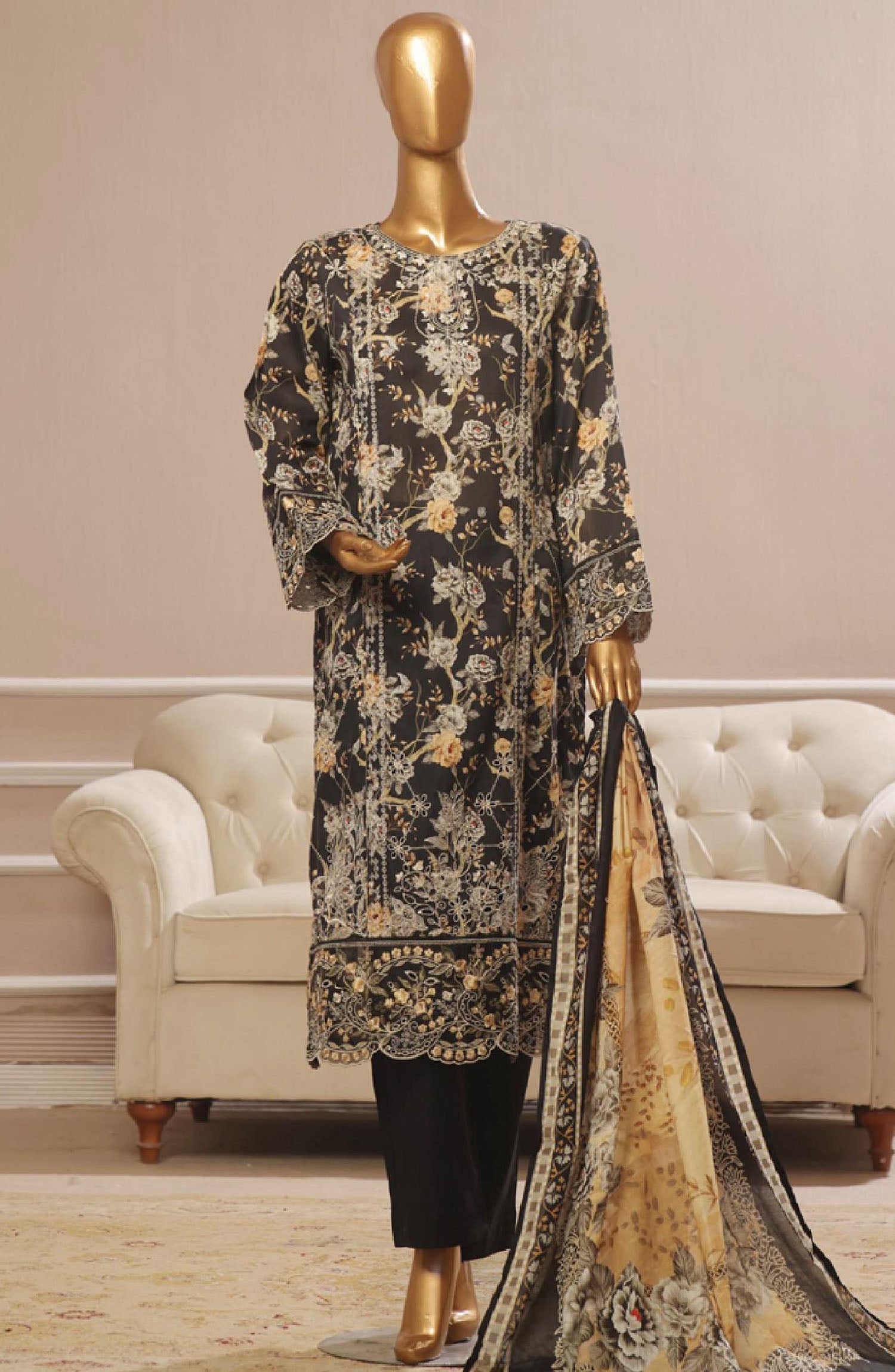 Home Bin Saeed Embroidered Lawn Stitched 3 Piece Suit - SM-772 - BS25EL3PCV5 - Black - Summer Collection