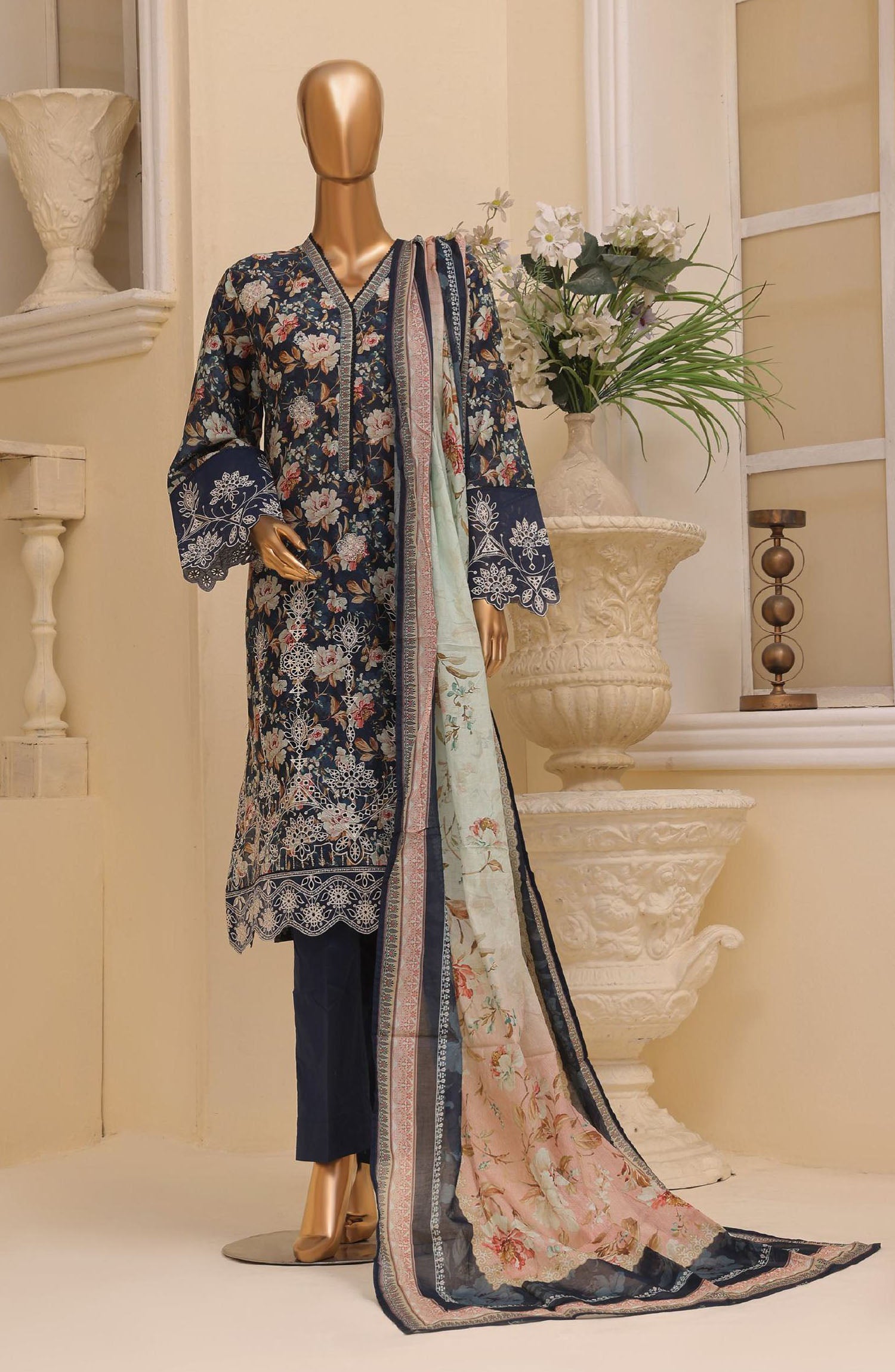 The standard style comes as a long-sleeved kameez with dupatta and trouser/shawlar.