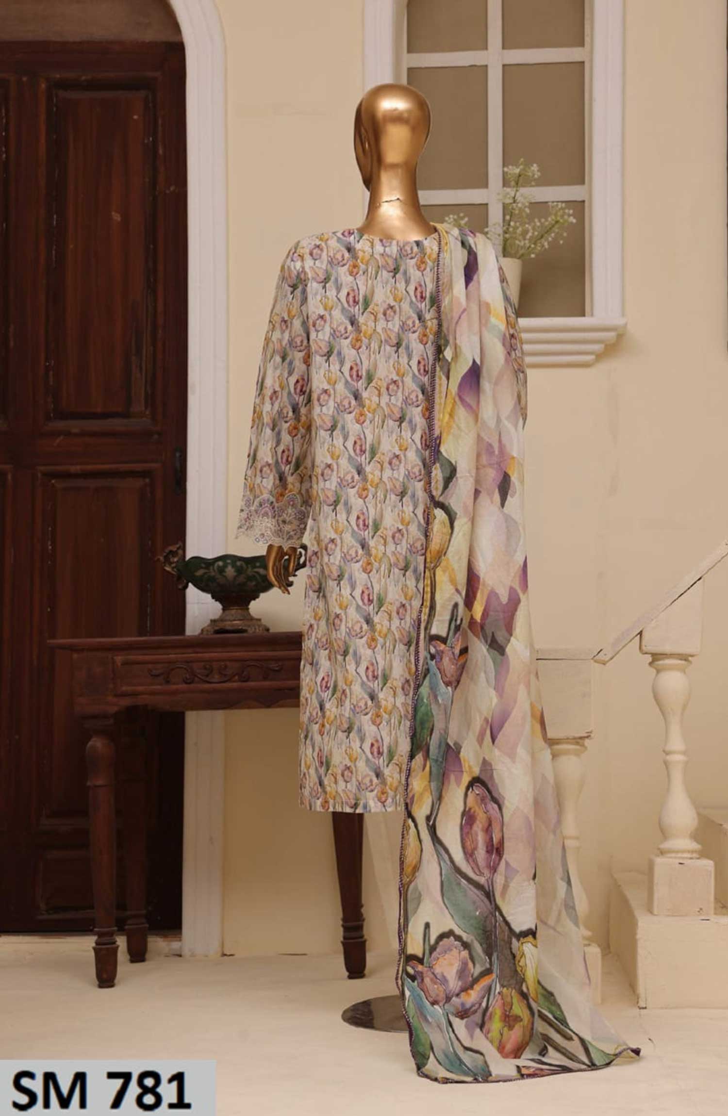 Home Bin Saeed Embroidered Lawn Stitched 3 Piece Suit - SM 781 - BS25EElV3 - White - Summer Collection