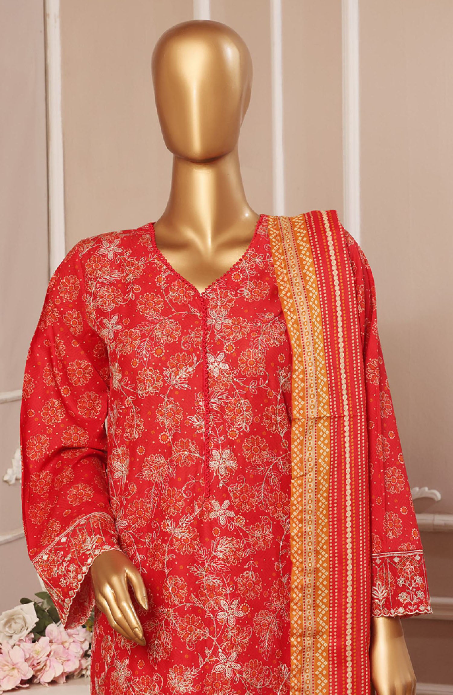 Home Bin Saeed Embroidered Lawn Stitched 3 Piece Suit - SM-789 - BS25EL3PCV5 - Red - Summer Collection