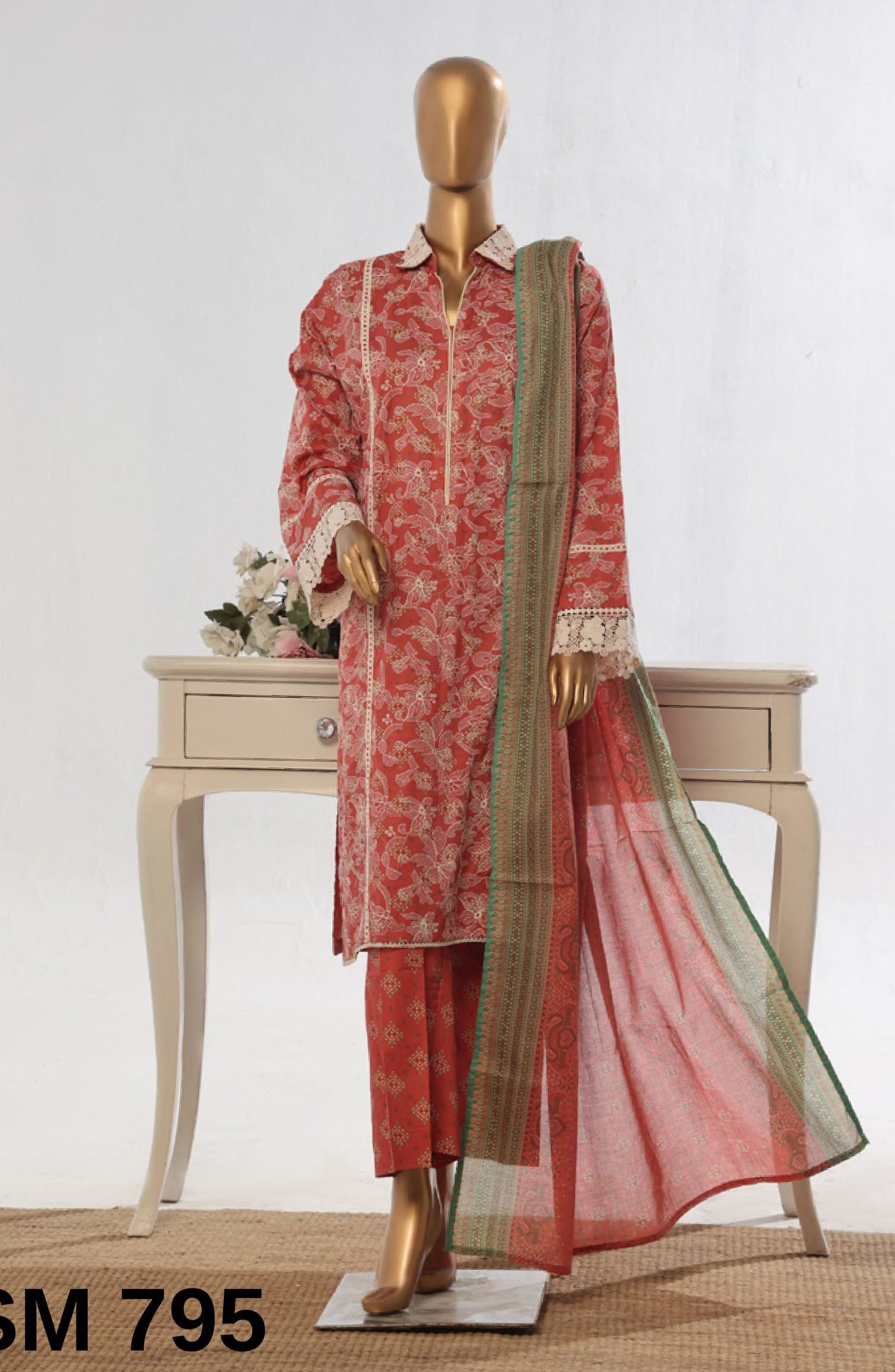 Home Bin Saeed Embroidered Lawn Stitched 3 Piece Suit - SM-795 - BS25EKR - Pink - Summer Collection