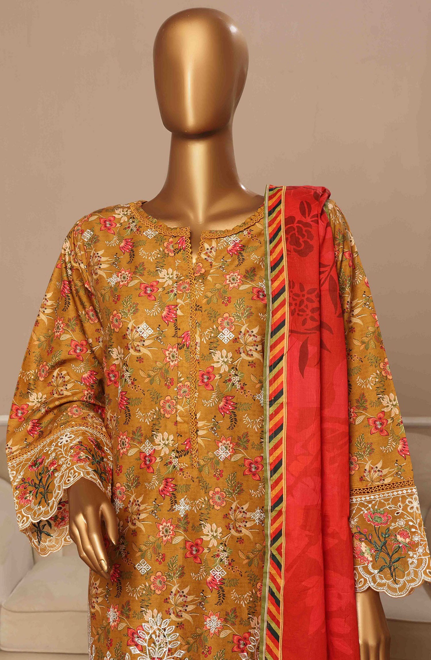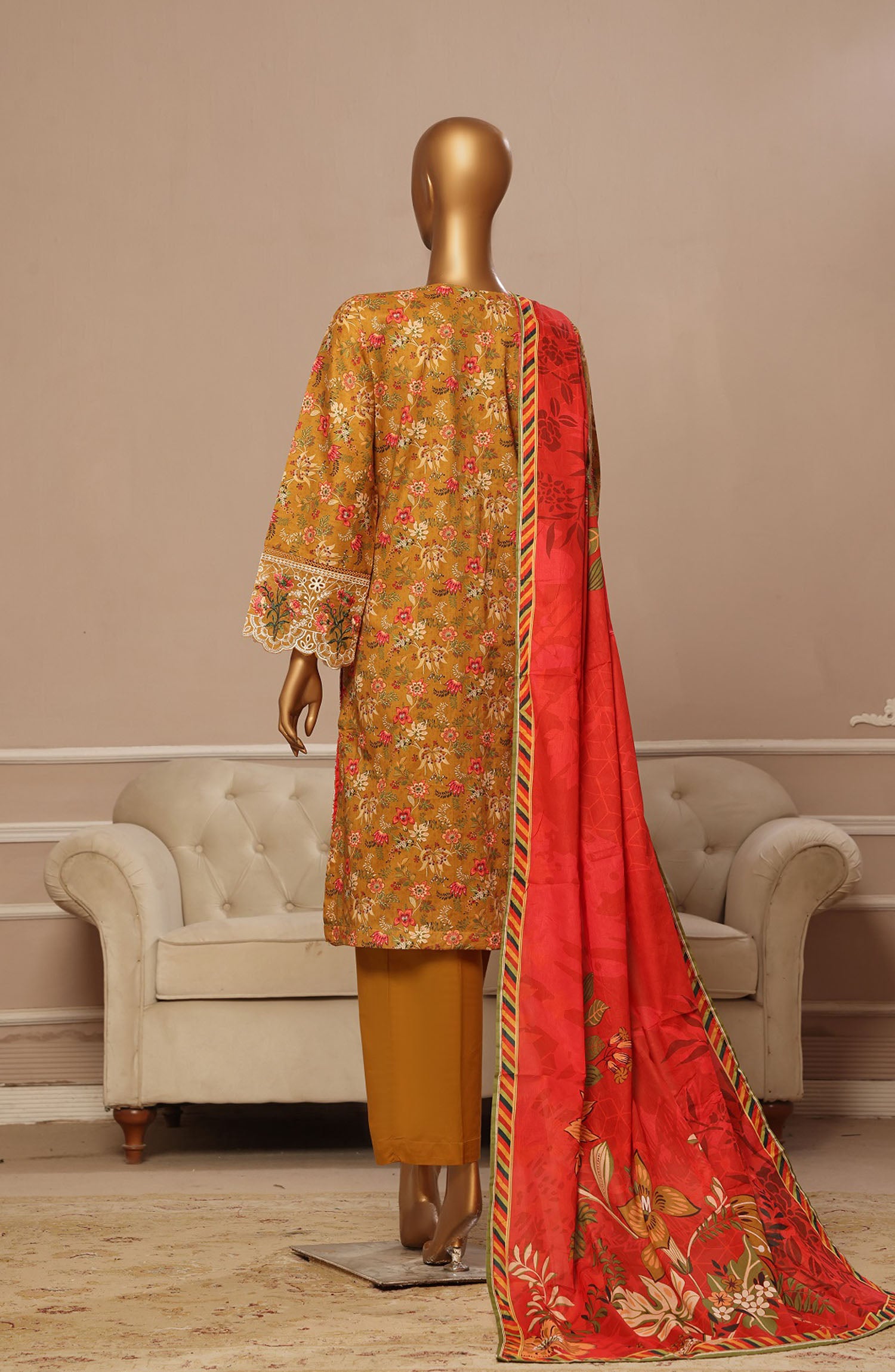 Home Bin Saeed Embroidered Lawn Stitched 3 Piece Suit - WC-001 - BS25EKR - Mustard - Summer Collection