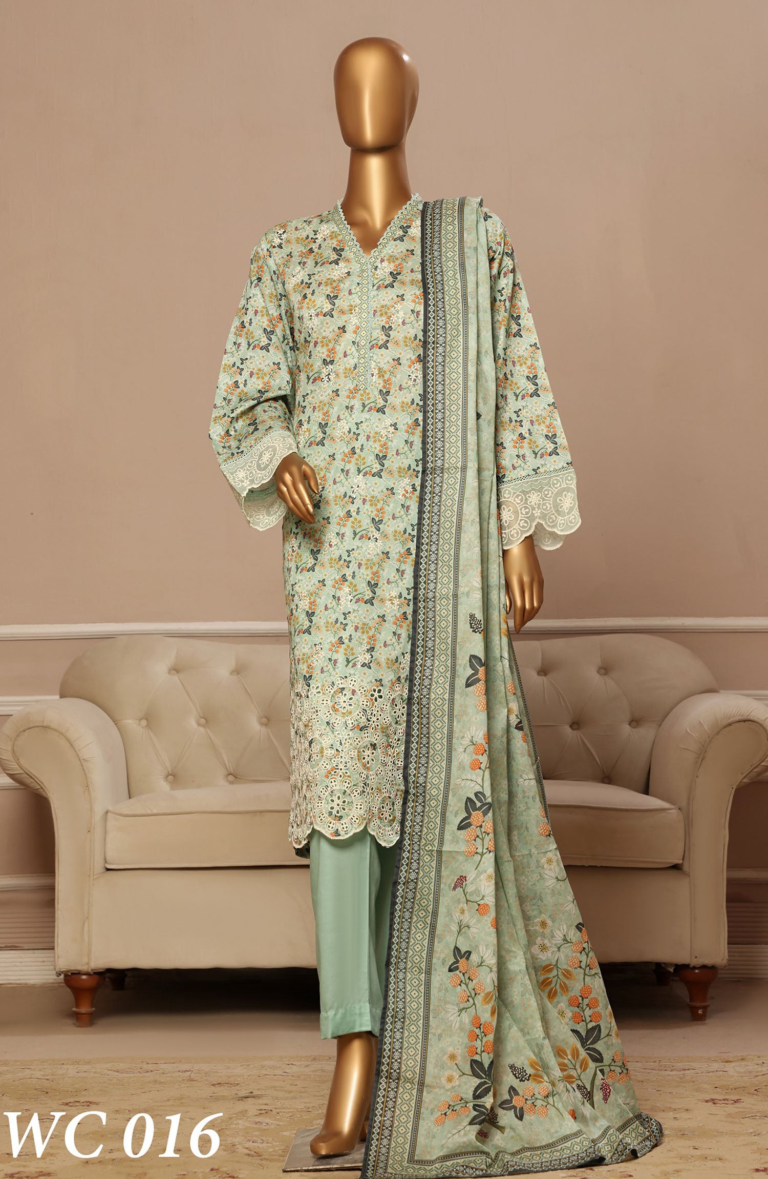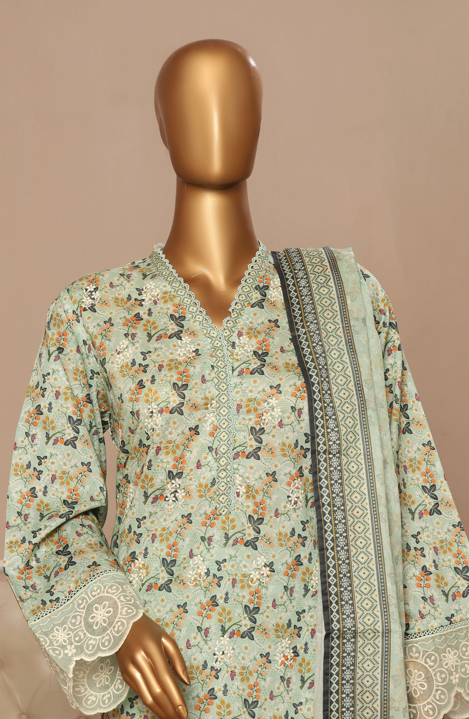 Home Bin Saeed Embroidered Lawn Stitched 3 Piece Suit - WC-016 - BS25EELV7 - Green - Summer Collection